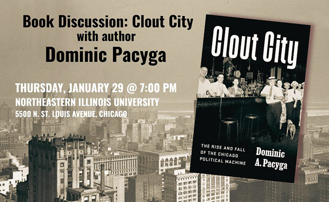 Northeastern Illinois University (Lech Walesa Hall Room 1001, 5500 N. St. Louis Ave. w Chicago) zaprasza na dyskusję o książce Dominica Pacygi „Clout City” i spotkanie z autorem w czwartek, 29 stycznia w godz. 7-8:30 pm. Wstęp wolny. Będzie możliwość zakupu książki.