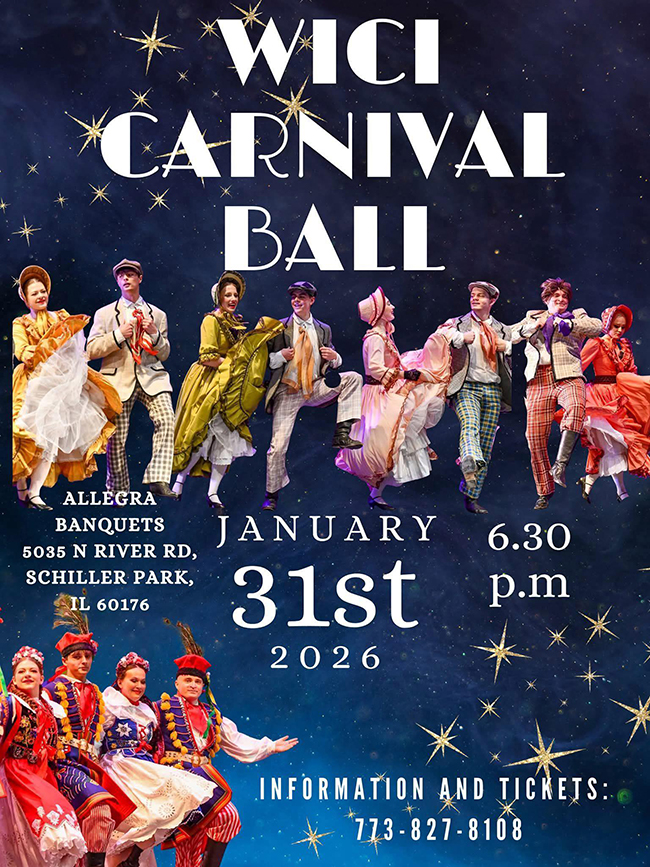 Teatr Pieśni i Tańca Wici zaprasza na bal karnawałowy w sobotę, 31 stycznia o godz. 6:30 pm do Allegra Banquets przy 5035 N. River Rd. w Schiller Park. Informacje i bilety: (773) 827-8108.