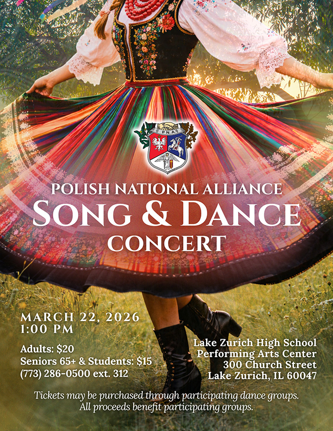 Doroczny koncert zespołów Związku Narodowego Polskiego odbędzie się w niedzielę, 22 marca o godz. 1 pm w Lake Zurich High School Performing Arts Center przy 300 Church Street w Lake Zurich. Bilety: 20 dol., seniorzy (65+) i studenci: 15 dol. Informacje: (773) 286-0500 ext. 312.