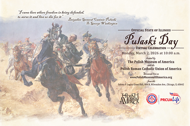 Muzeum Polskie w Ameryce (MPA) oraz Zjednoczenie Polskie Rzymsko-Katolickie (ZPRKA) zapraszają na wirtualne obchody Dnia Pułaskiego w poniedziałek, 2 marca, w godz. 10 am – 12 pm . W uroczystości wezmą udział przedstawiciele urzędów państwowych, stanowych, powiatowych, miejskich oraz liderzy organizacji i instytucji polonijnych. W programie znajdą się zaproszeni goście oraz okolicznościowe występy na żywo. Pokazane zostaną także krótkie filmy. W trakcie ceremonii zostanie złożony wieniec pod obrazem Stanisława Batowskiego „Pułaski pod Savannah”. Wstęp tylko dla zaproszonych gości. Relacja na żywo: https://www.polishmuseumofamerica.org/