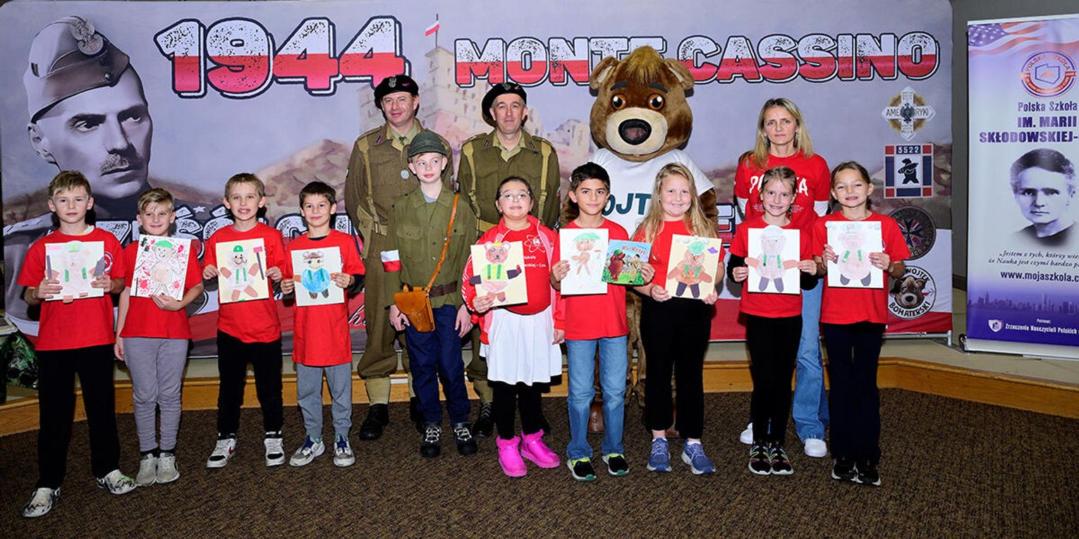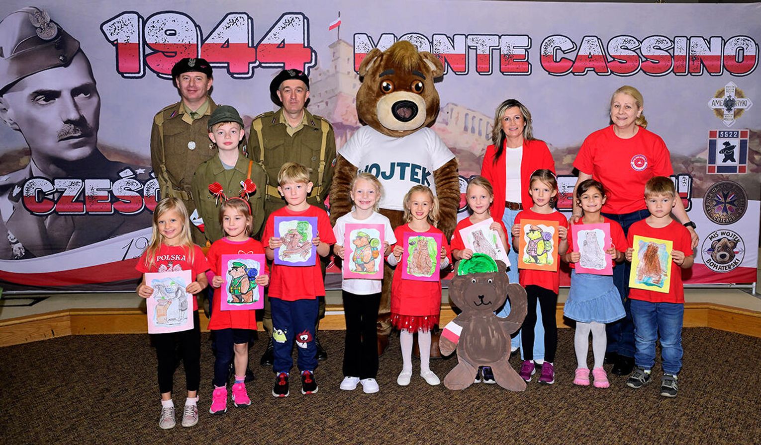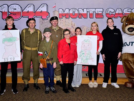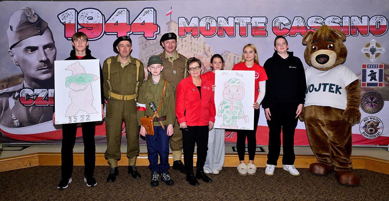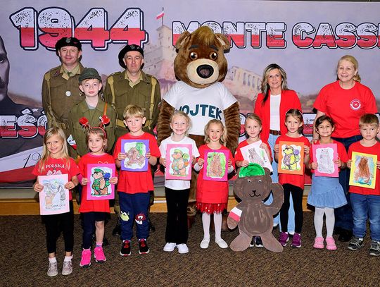 Uczniowie pod kierunkiem nauczycieli starannie przygotowali się do tej wizyty, bo przecież i goście byli wyjątkowi! Najmłodsi wychowankowie naszej szkoły wykonali portrety Misia Wojtka, które osobiście wręczyli z wypiekami na twarzach, co poniektórzy odważnie klepiąc Misia po brzuszku lub przybijając piątkę. Starsze klasy, wykonały plakaty nawiązujące swoją tematyką do wydarzeń związanych z walkami na frontach II wojny światowej lub do szeroko pojętych polskich dróg do wolności. Na pracach mogliśmy więc dostrzec sławne Wzgórze pod Monte Cassino, były sceny batalistyczne, historie zawiązane z Pestkami czyli kobietami – ochotniczkami walczącymi ramię w ramię z mężczyznami oraz hasła „Nigdy więcej wojny!”. Jakże szczególnie w dzisiejszej rzeczywistości brzmi to wołanie młodych ludzi!