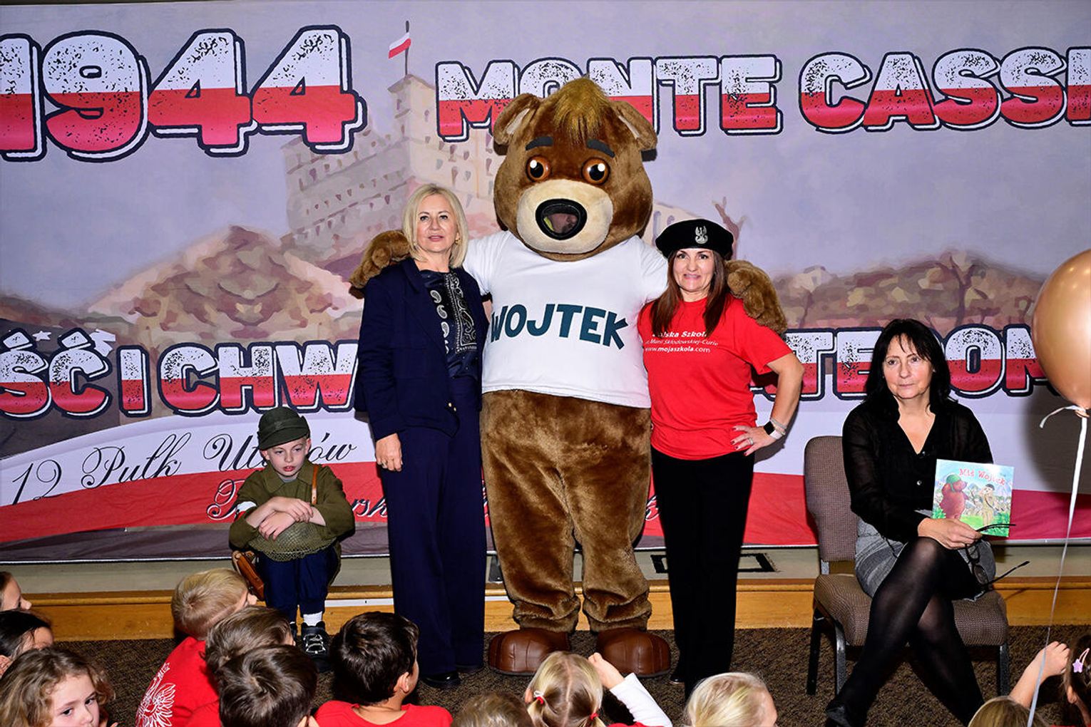 Nie był to dla szkoły zwykły dzień, również z innego powodu. Odwiedzili nas bowiem żołnierze 12 Pułku Ułanów Podolskich, w towarzystwie Misia Wojtka, najsłynniejszego polskiego ,,żołnierza” walczącego w stopniu kaprala pod Monte Cassino.