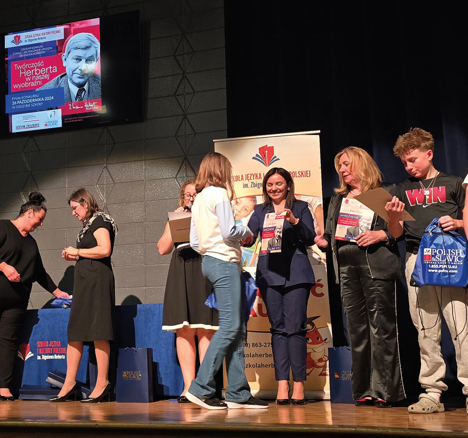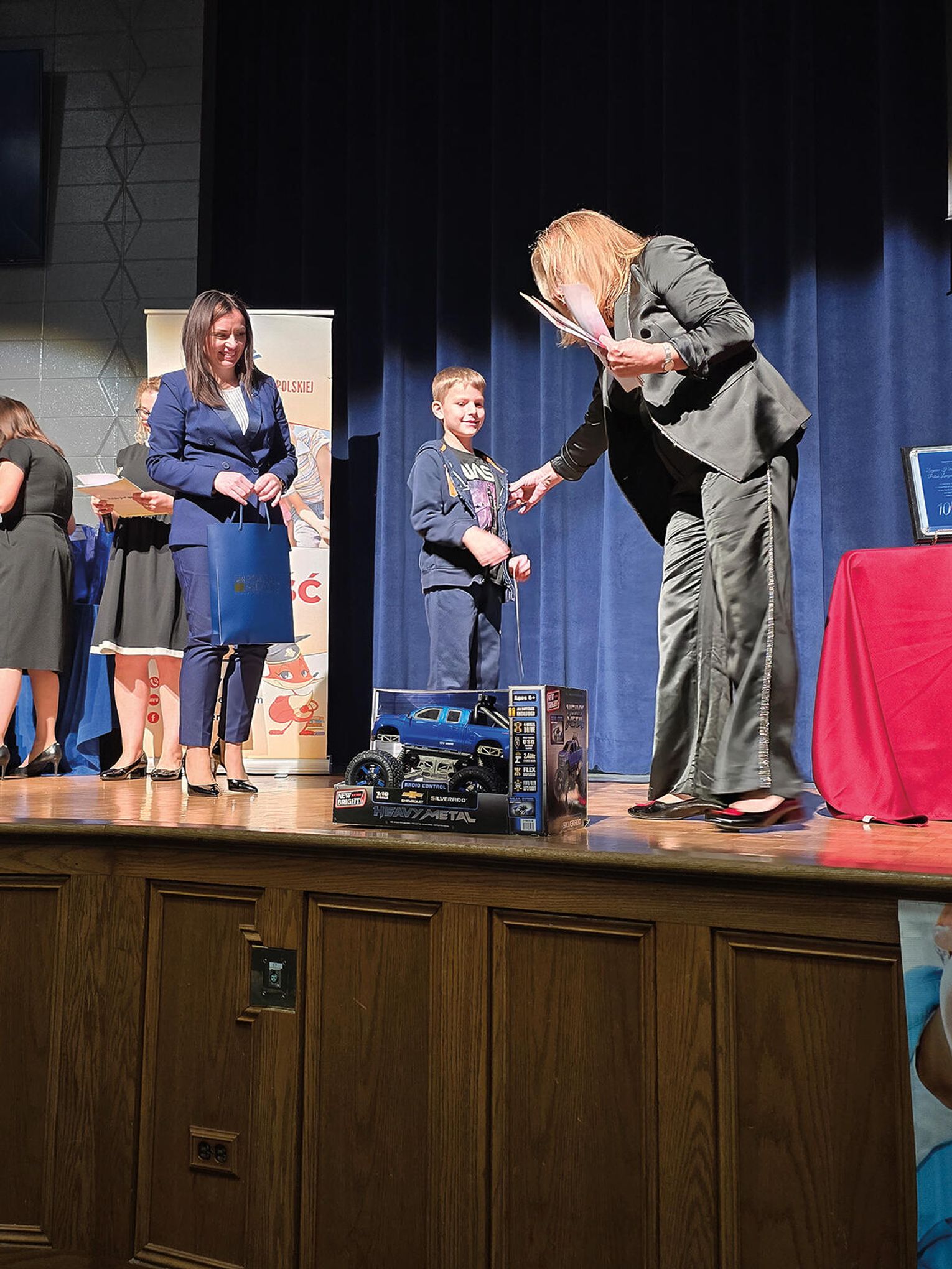 Nagrody w postaci certyfikatów PSFUC, wręczyła pani Marta Koźlicka, obecna na konkursie przedstawicielka PSFCU w lokalizacji Bridgeview.