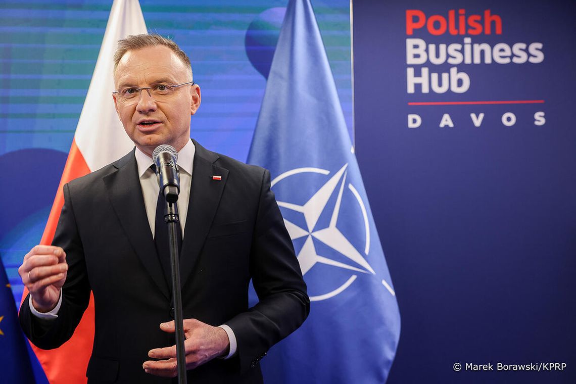 Duda przebywa na Światowym Forum Ekonomicznym w Davos od poniedziałku, w jego ramach uczestniczy w szeregu spotkań wielostronnych i dwustronnych, a w czwartek brał udział w "śniadaniu ukraińskim" z udziałem m.in. sekretarza generalnego NATO Marka Ruttego i prezydentów Finlandii oraz Łotwy, Alexandra Stubba i Edgarsa Rinkeviczsa, a także wicepremier Ukrainy Julii Swyrydenko.