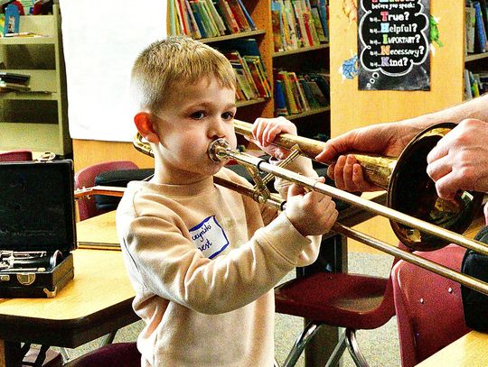 Zajęcia muzyczne były domeną Konrada Pawełka – dyrektora artystycznego i dyrygenta Polonijnej Orkiestry w Chicago. Prowadzący z pasją i humorem opowiadał o budowie m.in. gitary, skrzypiec, klarnetu, puzonu, rogu francuskiego i perkusji, demonstrując ich najważniejsze elementy i wyjaśniając ich funkcję. Dzieci miały również możliwość samodzielnego wydobywania dźwięków szarpiąc struny, przesuwając smyczkiem, uderzając pałeczkami czy też dmuchając w ustnik. Dla wielu z nich było to niezwykle ekscytujące doświadczenie i odkrycie, że różne techniki gry wpływają na brzmienie instrumentu.
