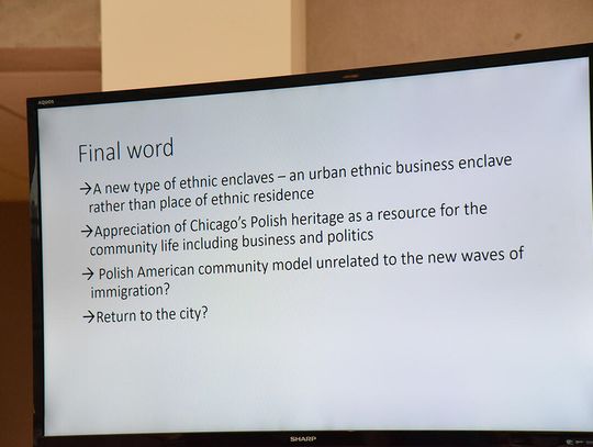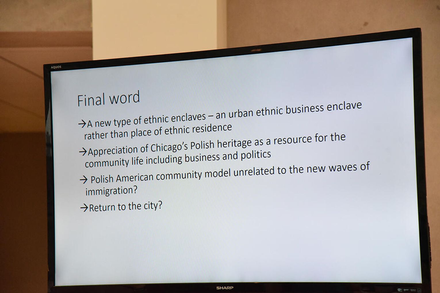 – Próbowałam zrozumieć, a później przekazać słuchaczom dlaczego Amerykanie polskiego pochodzenia, Polacy, tak często nie lubią miasta Chicago, opuścili je i wciąż opuszczają. Bardzo często mieszkają tuż przy granicy miasta oraz na przedmieściach. Na podstawie moich badań odkryłam pięć takich powtarzających się ciągle powodów, które w polskiej grupie etnicznej są wymieniane – powiedziała prelegentka.