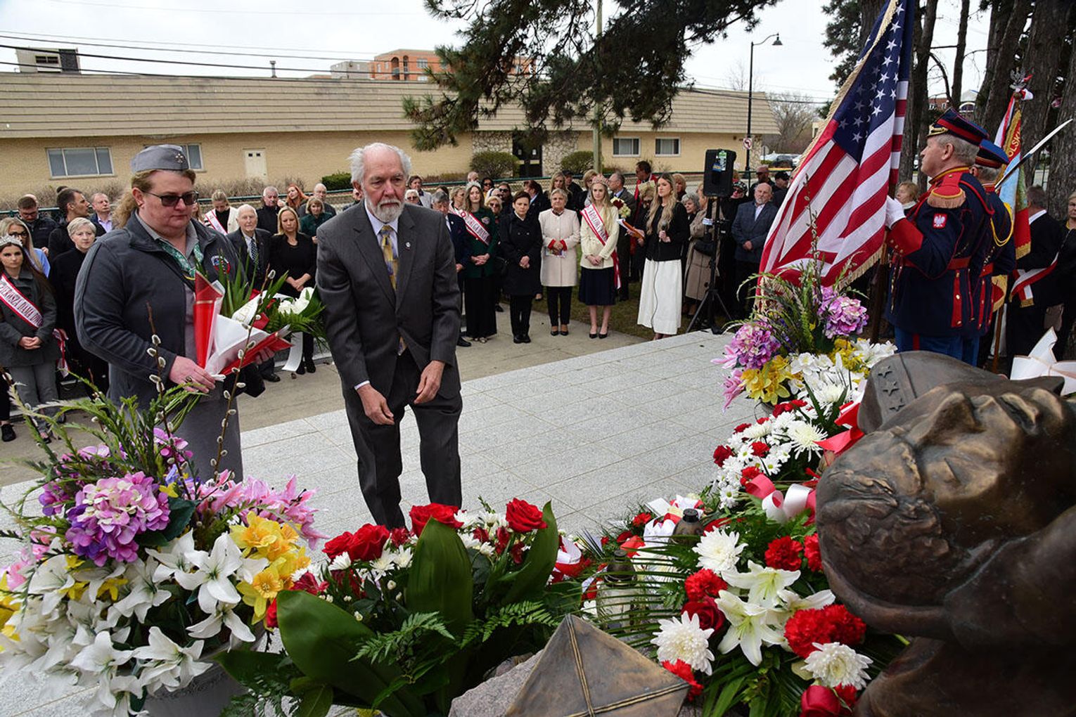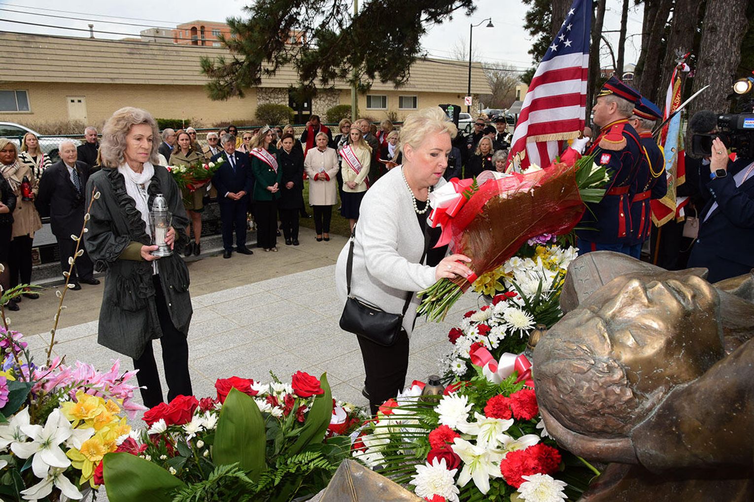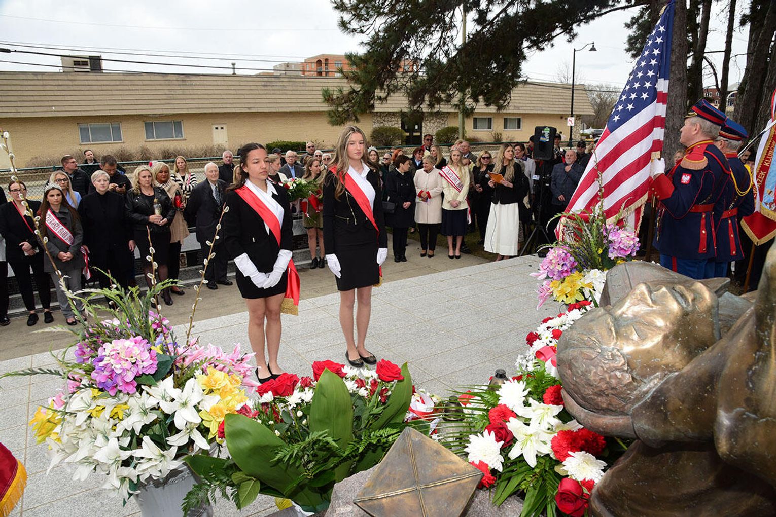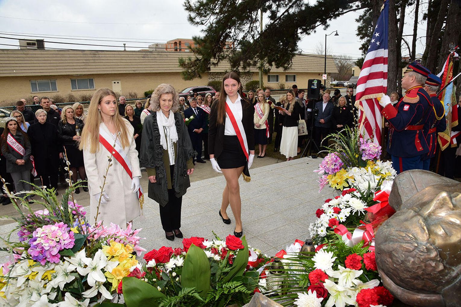 Po wspólnej modlitwie historię tragicznych wydarzeń w okolicznościowym programie przypomnieli Alina Szymczyk i Jan Żółtek ze Zrzeszenia Literatów Polskich im. św. Jana Pawła II. Następnie członkowie delegacji złożyli wieńce i zapalili znicze. W imieniu władz Rzeczypospolitej Polskiej kwiaty złożyła konsul generalna Regina Jurkowska. W kolejnych odsłonach tej ceremonii kwiaty składały delegacje reprezentujące: Związek Klubów Polskich, Polsko-Słowiańską Federalną Unię Kredytową, Zrzeszenie Literatów Polskich im. św. Jana Pawła II, Klub Pojawie, Zrzeszenie Nauczycieli Polskich w Ameryce, Przystanek Historia Instytutu Pamięci Narodowej w Chicago, Klub Przybysławice, Stowarzyszenie Rajd Katyński „Pamięć i Tożsamość”, Polska Szkoła im. Gen. Władysława Andersa, Klub Motocyklowy „Wataha Rider”, Polska Szkoła im. Św. Brata Alberta Chmielowskiego, Legion Młodych Polek, Klub Przyjaciół Miasta Stalowa Wola w Chicago, Chicago Society, Związek Harcerstwa Polskiego, Ruch Obywatelski „Patria Polonia” oraz Anna Wójtowicz, córka śp. Wojciecha Seweryna, twórcy Pomnika Katyńskiego, który zginął w katastrofie smoleńskiej w drodze do Katynia na obchody 70. rocznicy mordu katyńskiego.