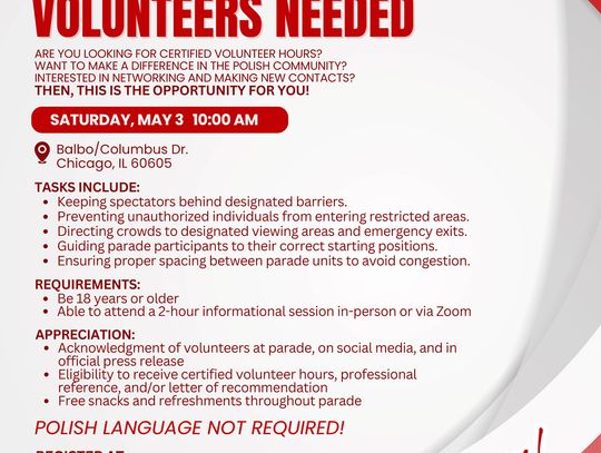 – Bardzo. W tym roku parada znowu będzie duża. Mamy zgłoszonych ponad 120 jednostek marszowych. Bardzo nas to cieszy. To największe światowe wydarzenie polonijne, gdzie możemy jako grupa etniczna pokazać swoją kulturę. Największą zazdrość innych parad budzi fakt, że w polskiej paradzie uczestniczy tak dużo dzieci i młodzieży. Jednak żeby parada przebiegła bezpiecznie i sprawnie, potrzebujemy ludzi do pomocy. Tradycyjnie mamy kilkanaście osób, które od lat z nami współpracują. Zachęcamy także nowe osoby od 18 roku życia. Zapraszamy wszystkich tych, którzy mają zdrowe, silne nogi i chęć pomocy przy tym wydarzeniu. Wszystkie informacje znajdują się na naszej stronie internetowej polishparade.org, ale także na naszym Facebooku.