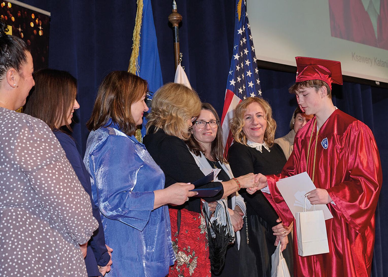 Swoją obecnością zaszczyczili nas także przedstawiciele i wieloletni partnerzy naszej szkoły, a mianowicie: pani Micheline Jaminski, wiceprezes PRCUA – Polish Roman Catholic Union of America (Zjednoczenia Polskiego Rzymsko-Katolickiego w Ameryce), pani Jolanta Wiśnicki, menedżer Polish and Slavic Federal Credit Union (Polsko-Słowiańskiej Unii Kredytowej) oddział w Bridgeview i pani Marta Kaoźlicka. Uczniowie otrzymali upominki i certyfikaty finansowe, co było miłym akcentem.