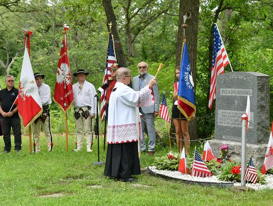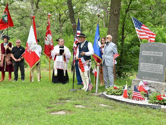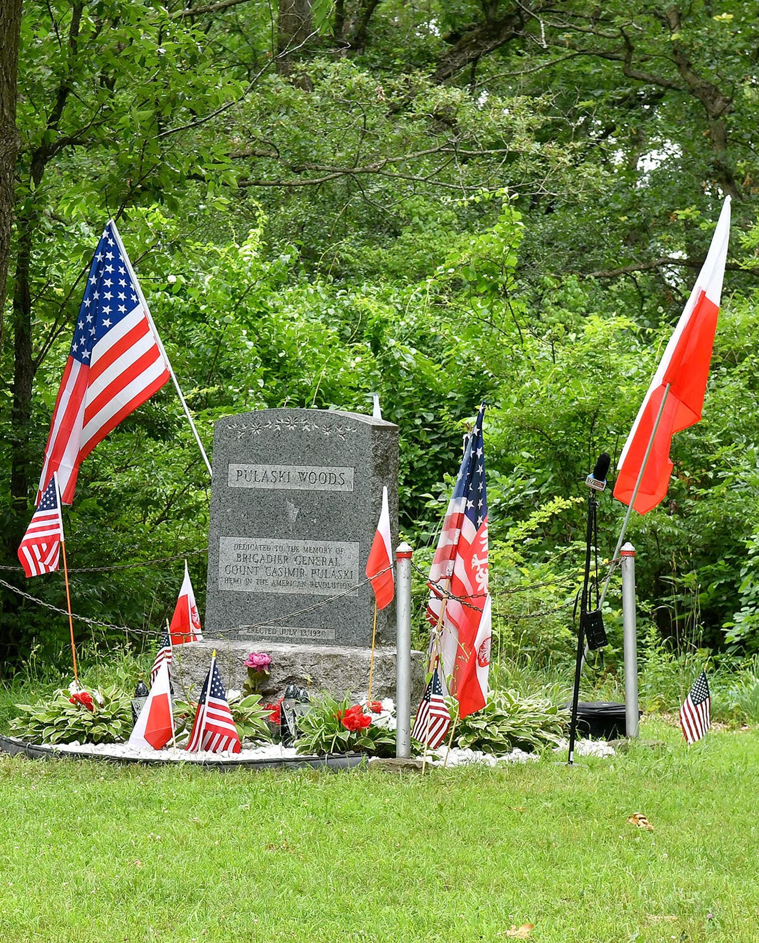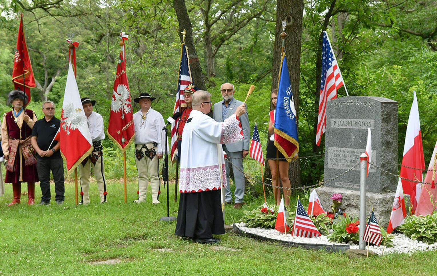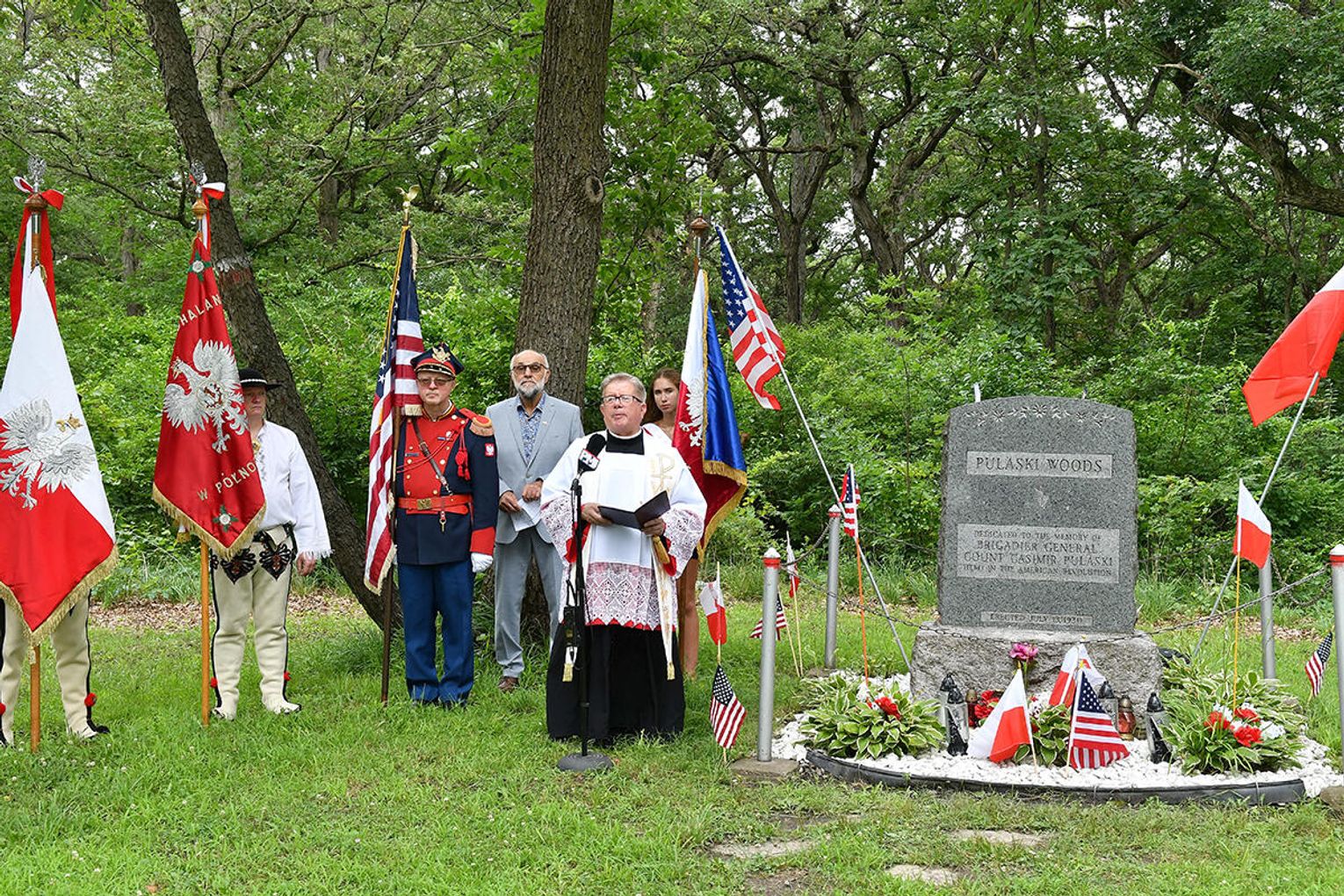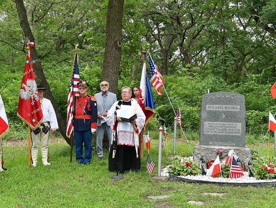 W tym kontekście ksiądz Józef Radłowski z dumą wspomniał o polskich ochotnikach, którzy wzięli udział w odzyskaniu przez Amerykę niepodległości: Tadeuszu Kościuszce i Kazimierzu Pułaskim. Nakreślił bohaterską postać generała Kazimierza Pułaskiego i modlił się z Polonią słowami Modlitwy za Ojczyznę księdza Piotra Skargi, wspomniał tych, którzy przez lata dbali o to miejsce pamięci, poświęcił monument Pułaskiego i pobłogosławił uczestników uroczystości.