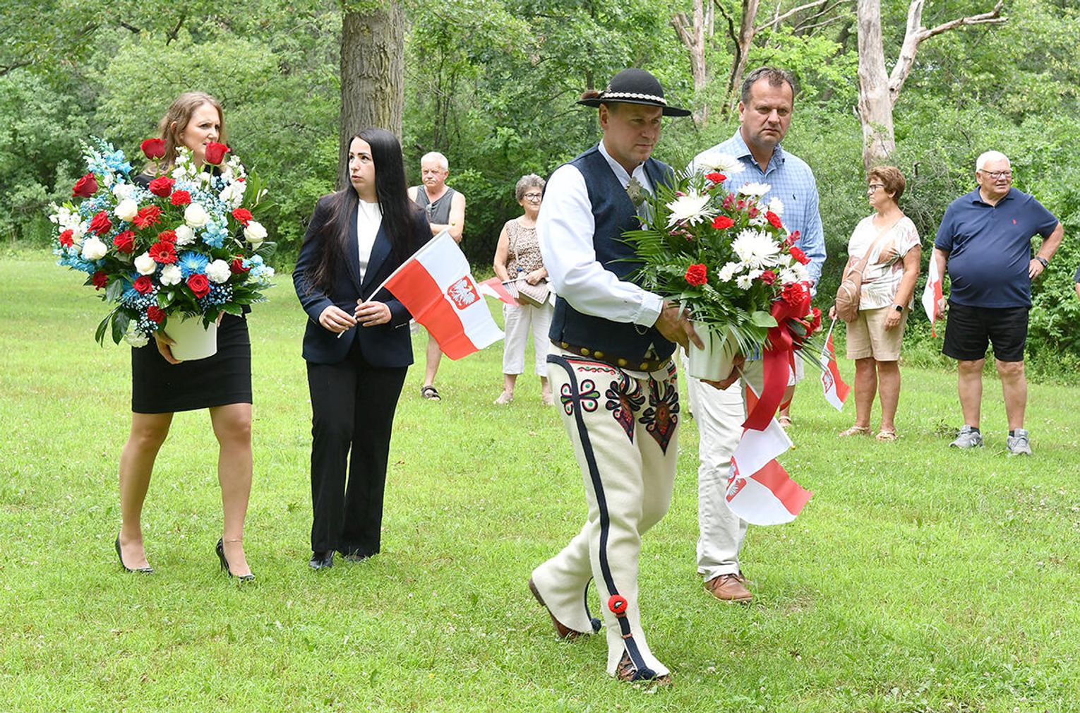 Honorową wartę przy pomniku zaciągnęli ułani ze Stowarzyszenia Przyjaciół Ułanów Polskich im. generała Tadeusza Kościuszki. Po odśpiewaniu a cappella hymnu Polski miłych gości najserdeczniej powitał Bogdan Strumiński – prezes Stowarzyszenia Historycznego Koła Solidarności w Chicago. Strumiński mówił o bolesnych doświadczeniach z historii Polski, których rocznice przypadają w tym samym czasie podkreślając, że odbudowa silnych więzi państwowych, jak i międzynarodowych jest możliwa, jeśli zostanie oparta na prawdzie historycznej. Jego zdaniem, przekazywanie faktów historycznych młodemu pokoleniu jest obowiązkiem osób żyjących współcześnie.