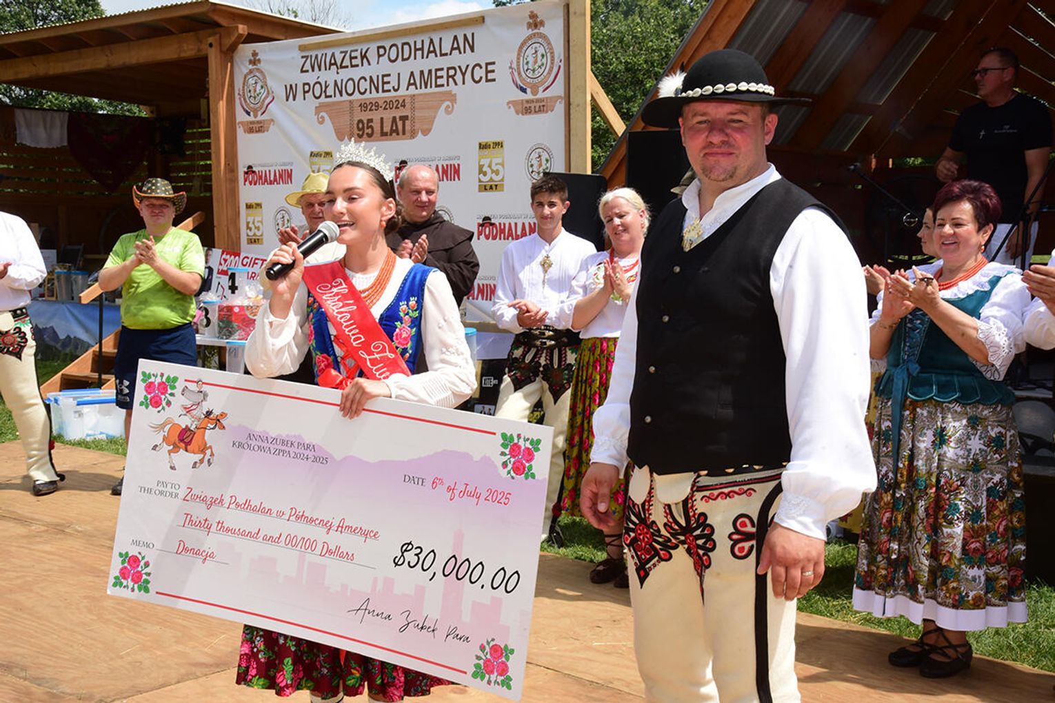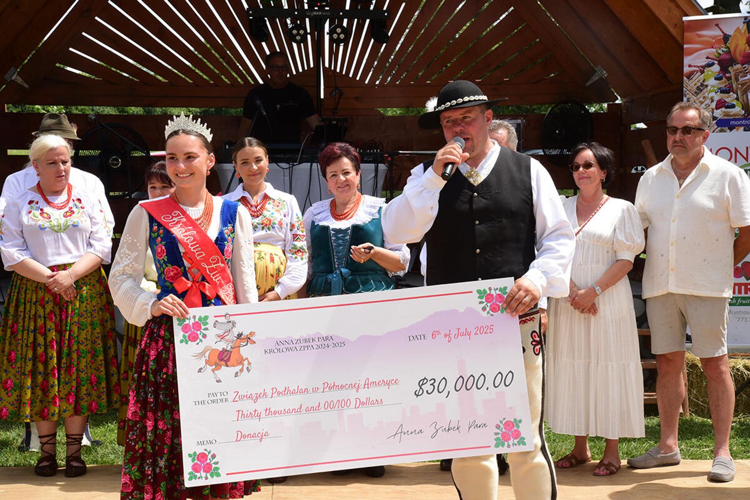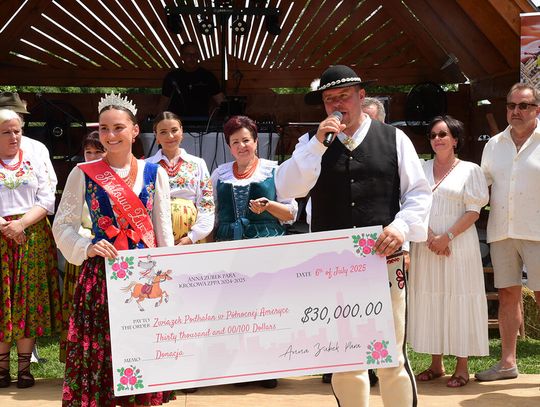Anna Zubek-Para, tancerka zespołu Siumni dzierżąca koronę królowej ZPPA, przekazała na ręce prezesa Jana Króla czek na 30 tysięcy dolarów z dochodu, który w kwocie 100 tys. dolarów zgromadziła na swoim charytatywnym majowym balu.