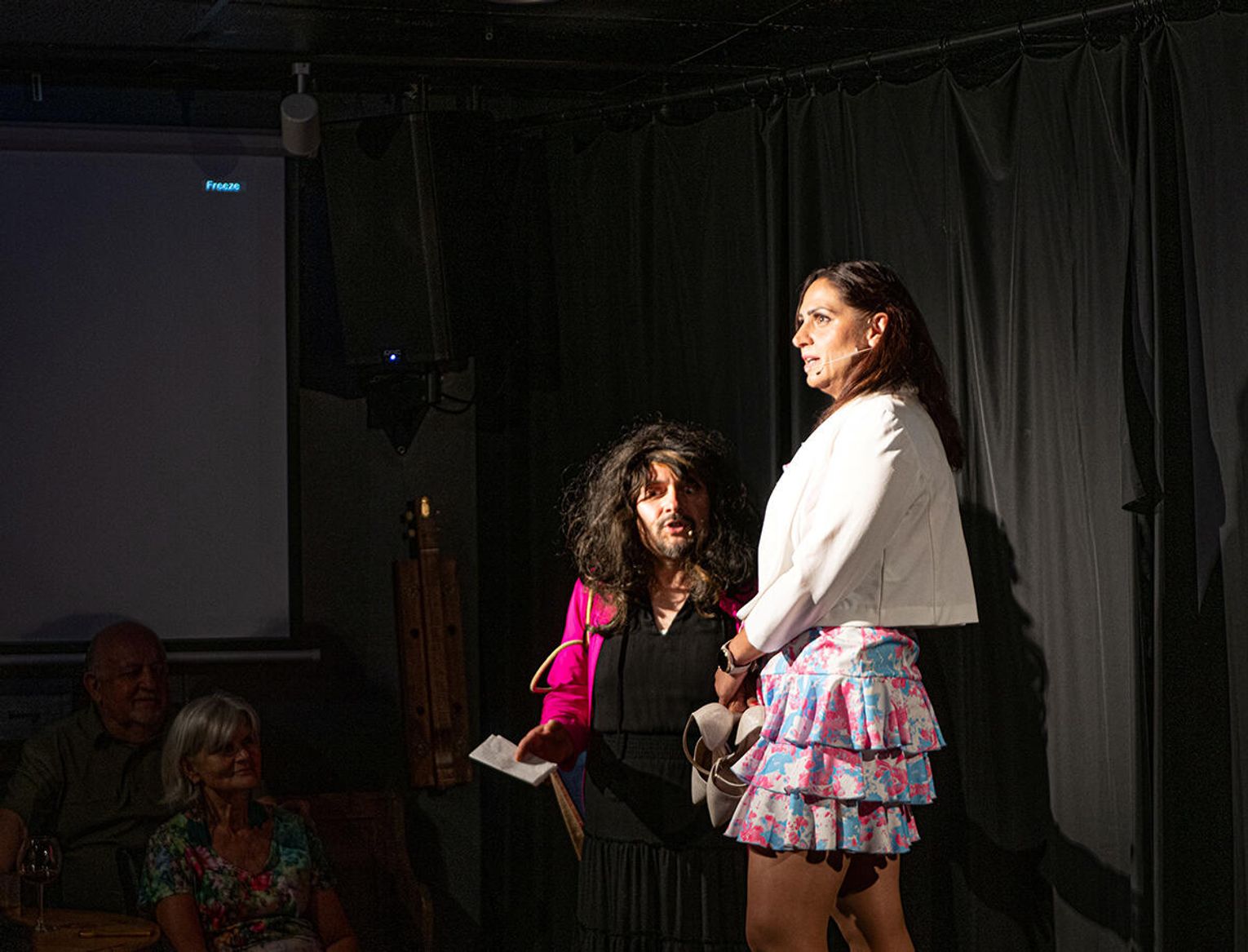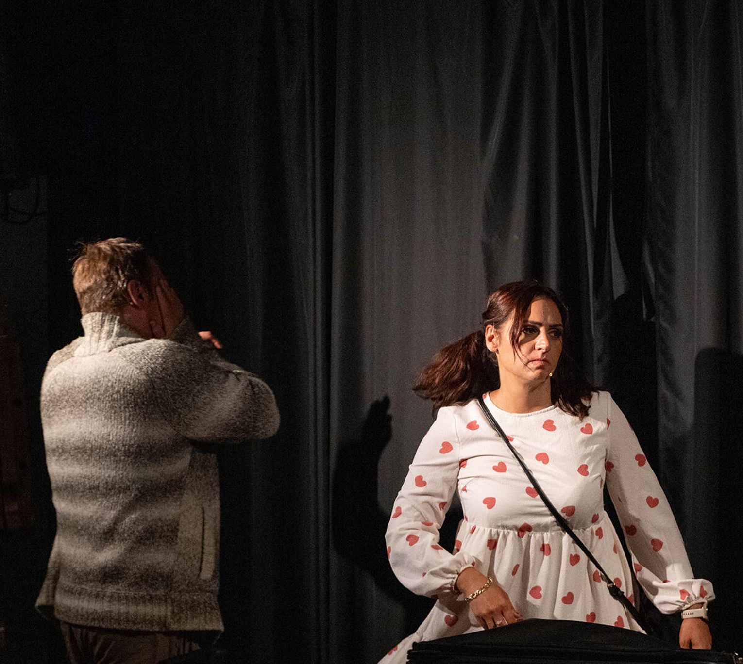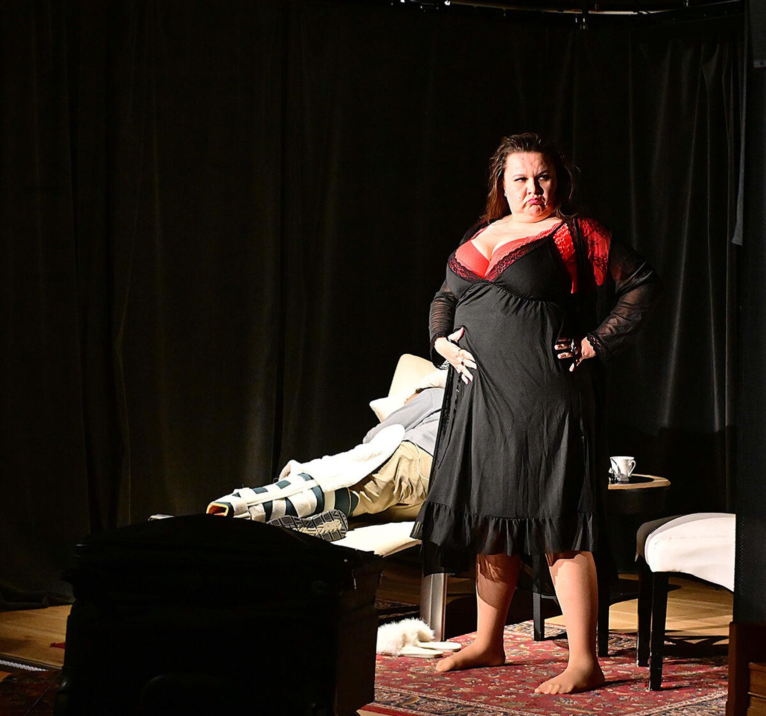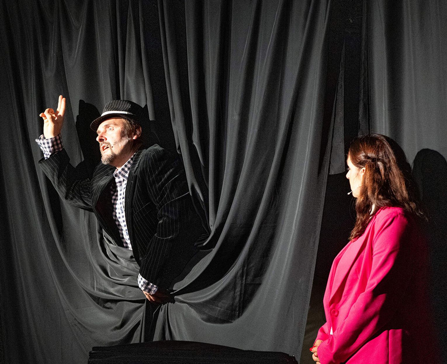 Już od pierwszych minut spektaklu widzowie zostają wciągnięci w wir zdarzeń, które rozgrywają się nie tylko na scenie, ale także wśród widowni. W rezultacie przedstawienie staje się eksperymentem scenicznym, który mobilizując widza do aktywnego w nim udziału i skłania do zastanowienia się nad rolą, jaką w nich odgrywa. W ten sposób, komedia Teatru Naszego przeradza się w opowieść o naszym teatrze, w którym to my odgrywamy główne, a czasami najgłówniejsze role.