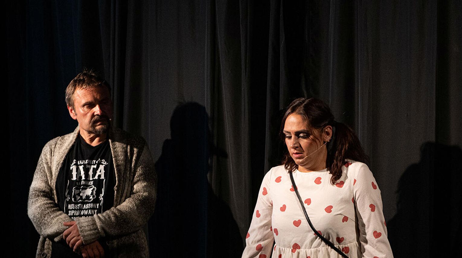 Siłą napędową spektaklu są aktorzy, dzięki którym nabrał on życia i autentyczności. Artyści z dużym wyczuciem poruszają się między tragizmem a farsą, umiejętnie wcielając się w swoje role. Ich osobowości doskonale wydobywają charakterystyczne cechy odgrywanych postaci, tworząc wiarygodne i spójne kreacje sceniczne. Alfons – Tomasz Maternowski – to mężczyzna, który wie, czego chce, ale jego ambicje nie są wygórowane. Marzy o kochance i o tym, by kiedyś przeżyć z nią intymne chwile w samochodzie – tak, jak opowiadali mu o tym koledzy. Wprawdzie zdobycie auta zajęło mu siedem lat, ale to wcale nie zmieniło jego marzeń, a wręcz przeciwnie zaostrzyło apetyt na automobilowe amory. W trakcie przedstawienia nasz bohater przysiada się do stolika widzów i opowiada im o swoich planach, o żonie, która go nie rozumie i kochance, która zamierza go porzucić. A przecież on na to nie zasługuje, bo oddaje się rodzinie, bawi się na polonijnych piknikach, zalicza koncerty w Copernicus Center, a kochankę regularnie zabiera na wycieczki, między innymi do Moniek i Rzeszowa.