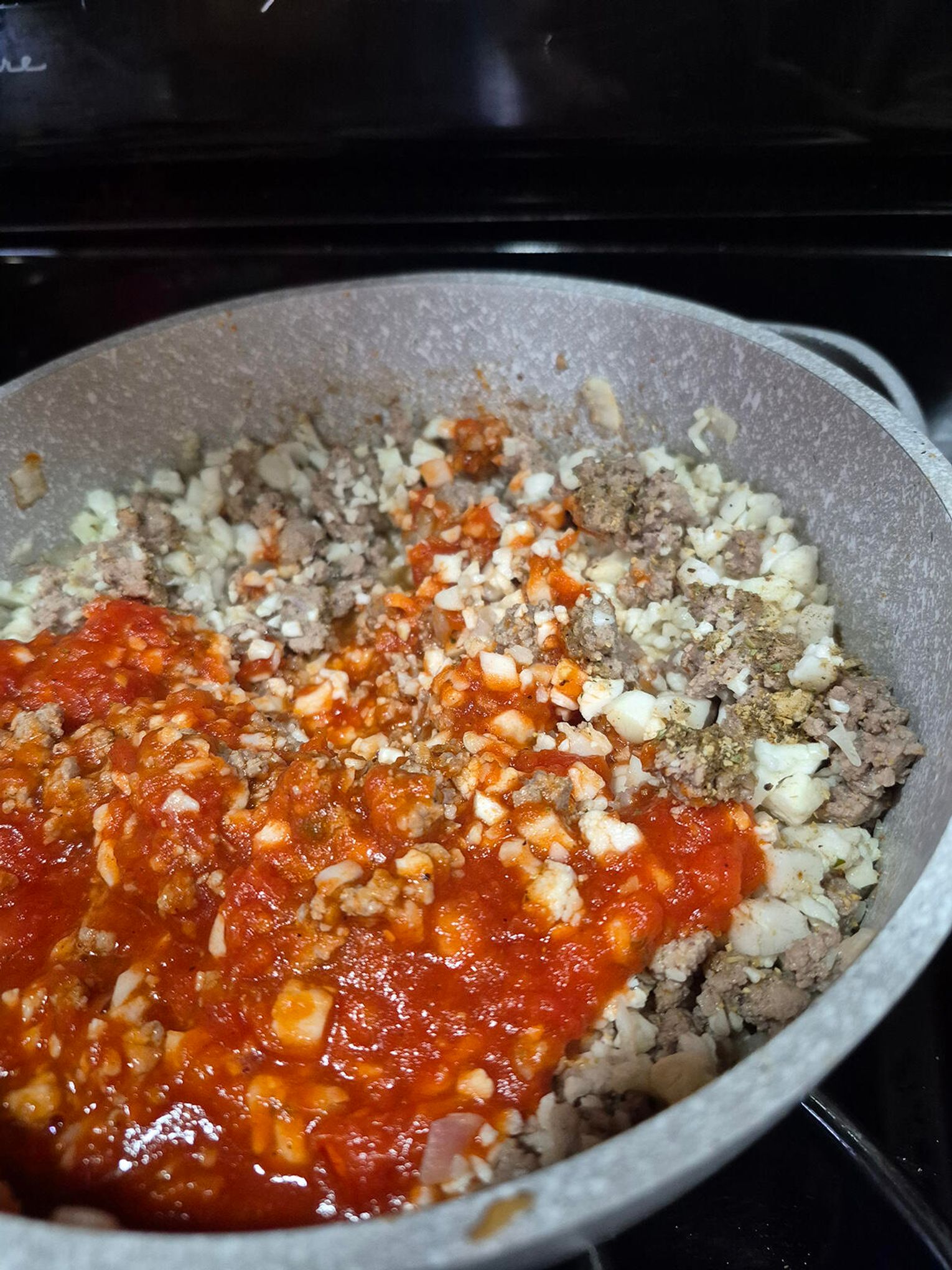 Na dużej patelni rozgrzej oliwę. Podsmaż cebulę przez ok. 4 minuty, aż zmięknie. Dodaj czosnek, a następnie mielone mięso z indyka. Smaż, aż się zarumieni. Dodaj koncentrat pomidorowy, pomidory z puszki, zioła, sól i pieprz. Gotuj na małym ogniu przez 15-20 minut, aż sos zgęstnieje.