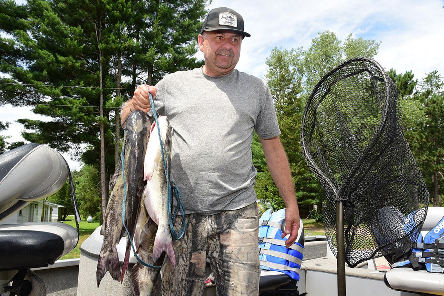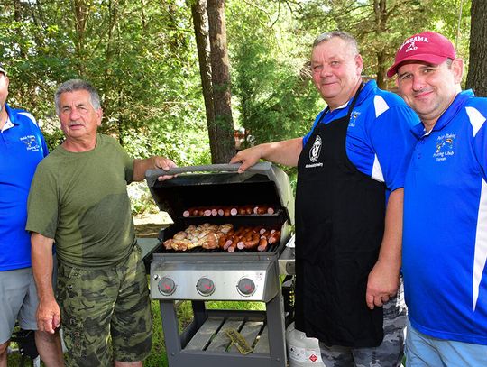 – Większość klubowych koleżanek i kolegów bywa na „dziesiątce” (miejsce wodowania łódek w pobliżu skrzyżowania drogi „G” z drogą numer 10 – przyp. autora) i wszyscy znają ten teren i mają swoje, jak my to mówimy, sprawdzone miejsca. To duży akwen i każdy znajdzie rewir dla siebie. Ryba jest smaczna i czysta. Często bywa tak, że w ciągu paru godzin można wypełnić dopuszczalną normę, czyli 10 sumów. Jako przynęty najczęściej używam krewetek, mięsa z kurczaka i drobiowej wątroby oraz „żywca” – zdradził sekrety wędkarskiej kuchni gospodarz klubu Sławomir Bryk, który wraz z dwójką kolegów 19 lipca powyższą normę wypełnił w pełnej rozciągłości. Dzięki tej trójce panów, którzy obdarowali mnie czterema pięknymi okazami suma, miałem okazję sprawdzić smak łowionych na tych wodach ryb. Pyszne!