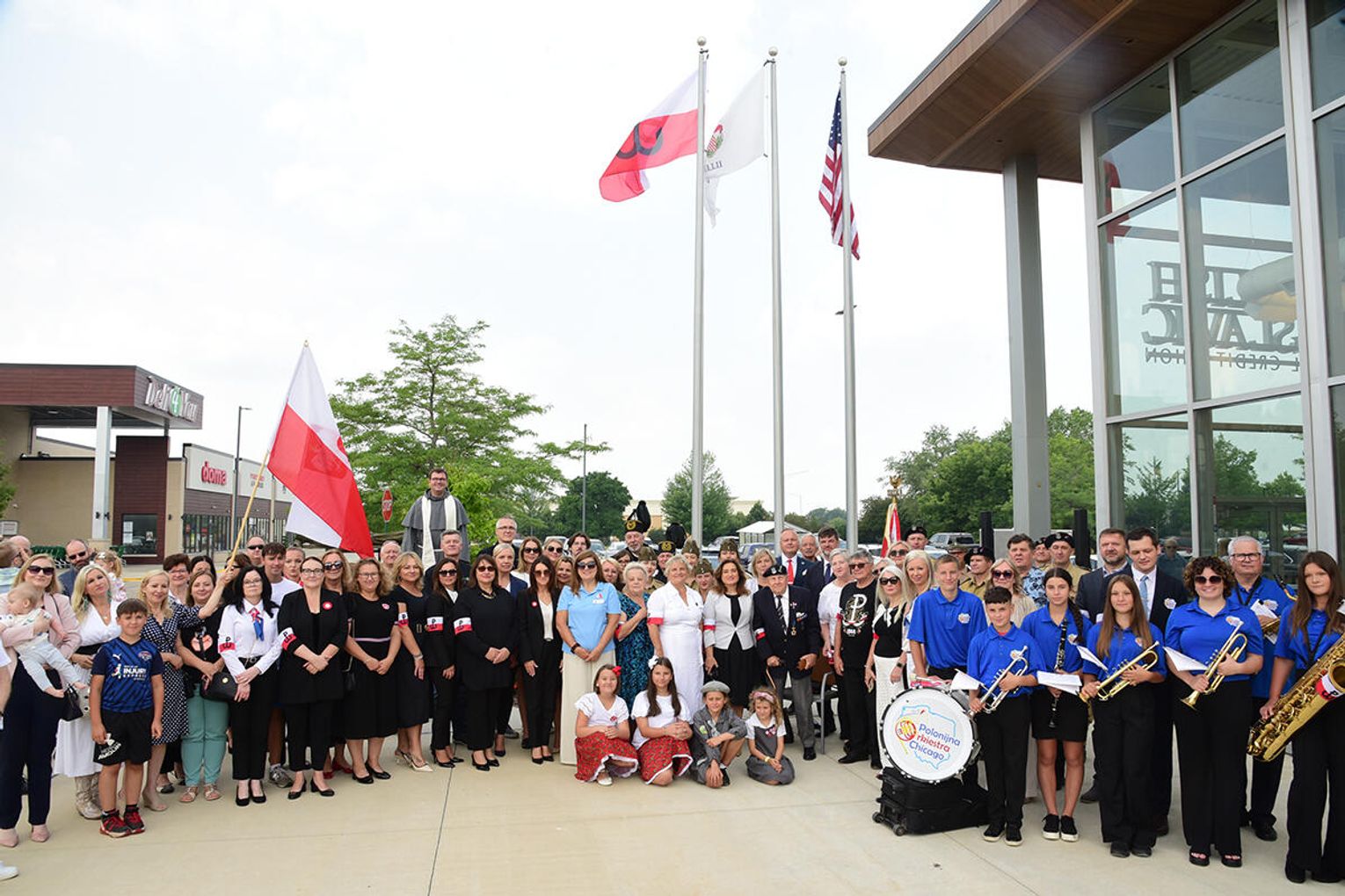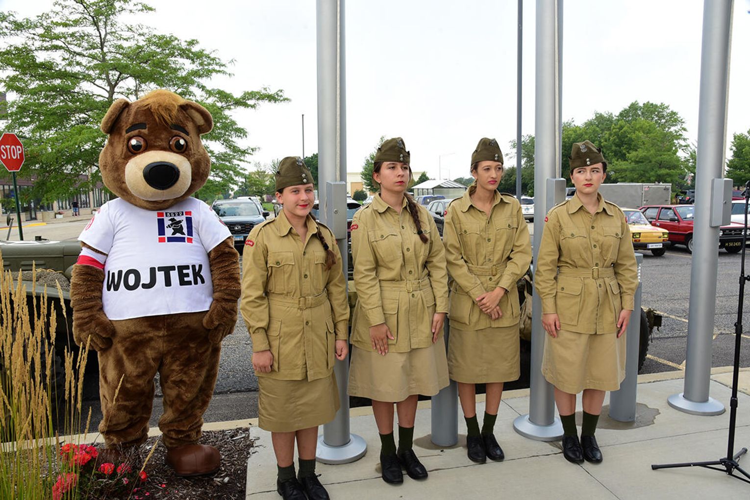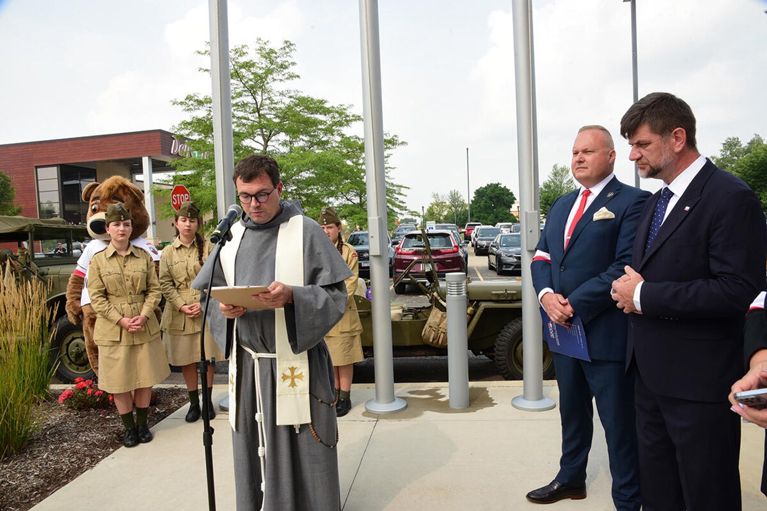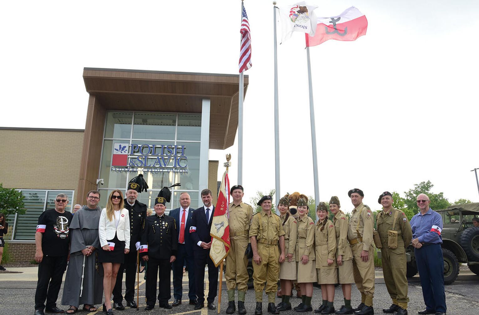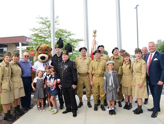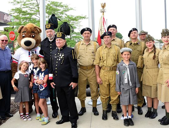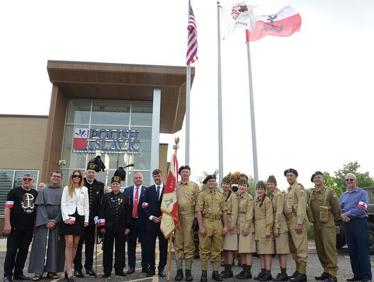Po powitaniu przybyłych gości przez menedżera Polsko-Słowiańskiej Federalnej Unii Kredytowej na terenie aglomeracji Chicagowskiej Roberta Radkowskiego i członka Rady Dyrektorów Naszej Unii Bogdana Ogórka, rocznicową uroczystość rozpoczęło podniesienie na maszt flagi z kotwicą. Tego zaszczytu dostąpiły członkinie Pomocniczej Służby Kobiet z grupy rekonstrukcyjnej 12 Pułku Ułanów Podolskich: Hania Baraniak, Natalia Żółtowska i siostry Rachwalskie, Izabela i Natalia.