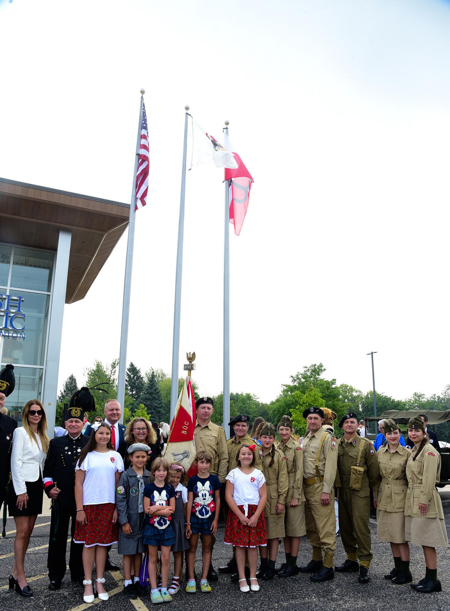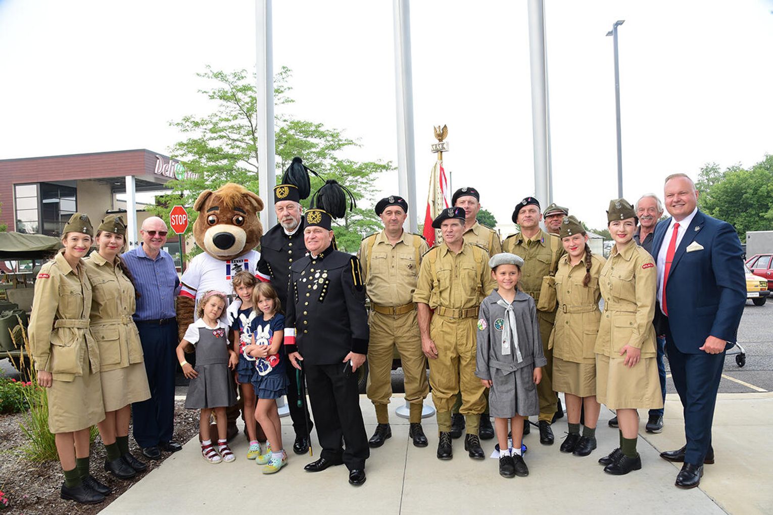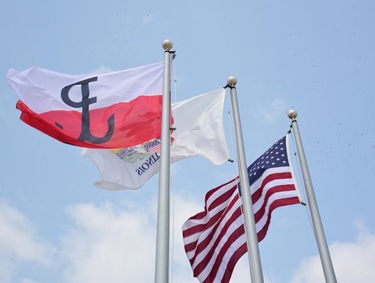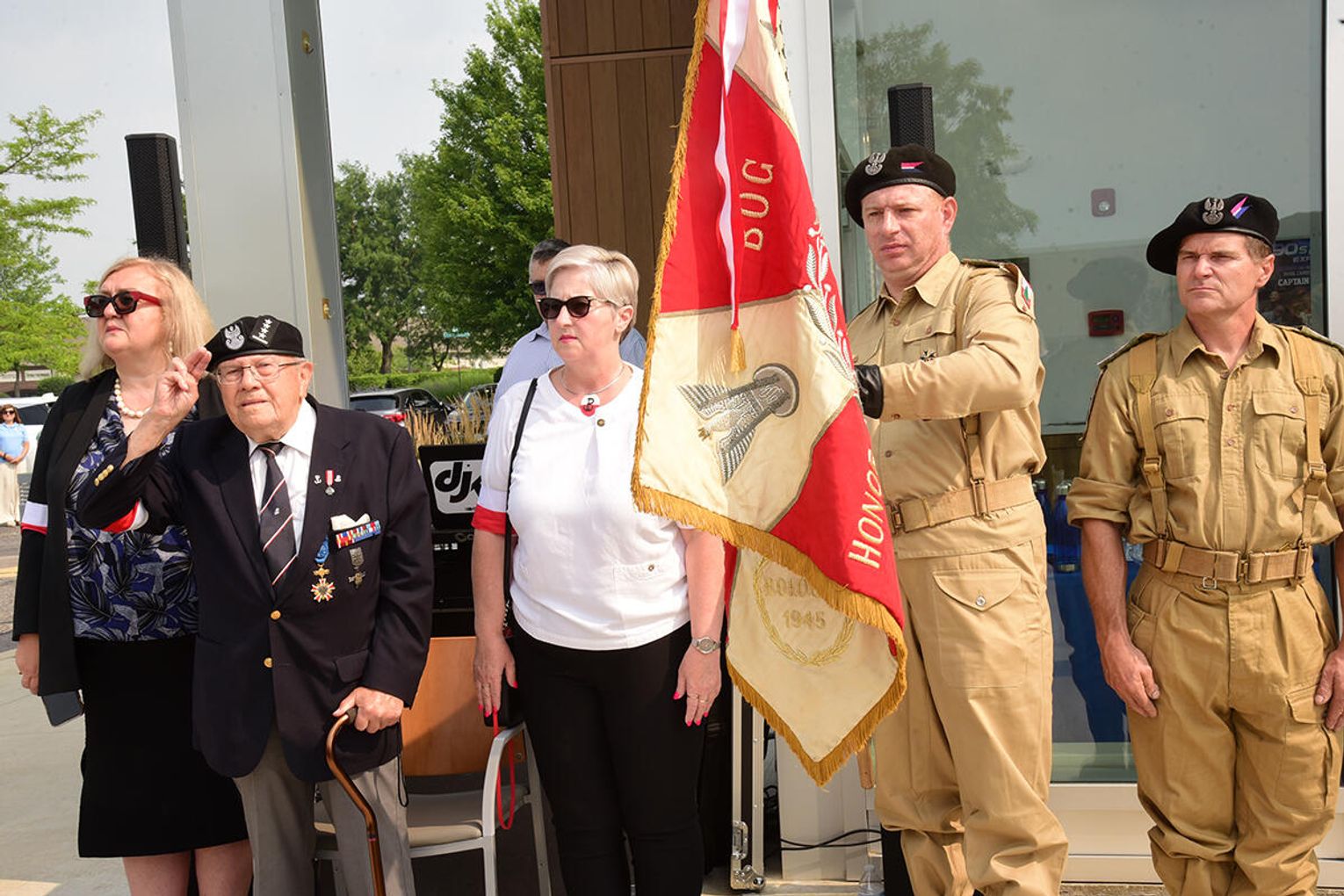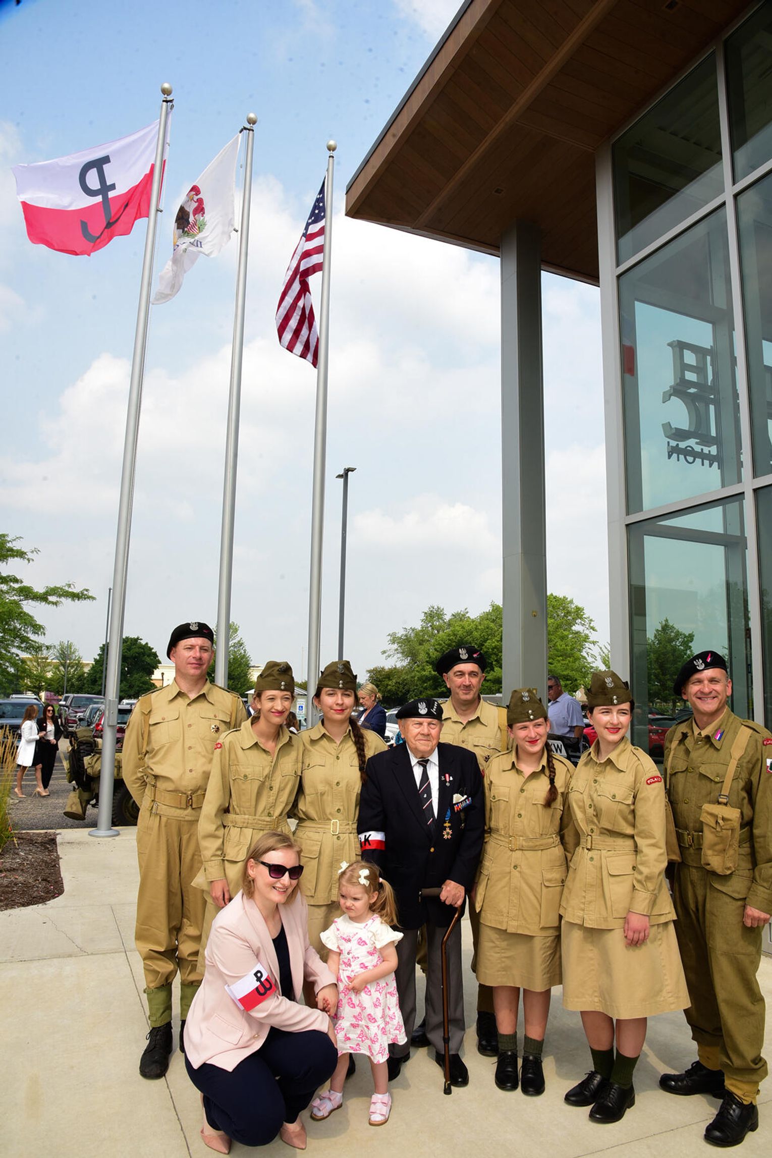 Po powitaniu przybyłych gości przez menedżera Polsko-Słowiańskiej Federalnej Unii Kredytowej na terenie aglomeracji Chicagowskiej Roberta Radkowskiego i członka Rady Dyrektorów Naszej Unii Bogdana Ogórka, rocznicową uroczystość rozpoczęło podniesienie na maszt flagi z kotwicą. Tego zaszczytu dostąpiły członkinie Pomocniczej Służby Kobiet z grupy rekonstrukcyjnej 12 Pułku Ułanów Podolskich: Hania Baraniak, Natalia Żółtowska i siostry Rachwalskie, Izabela i Natalia.