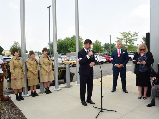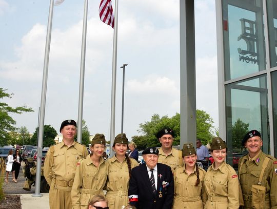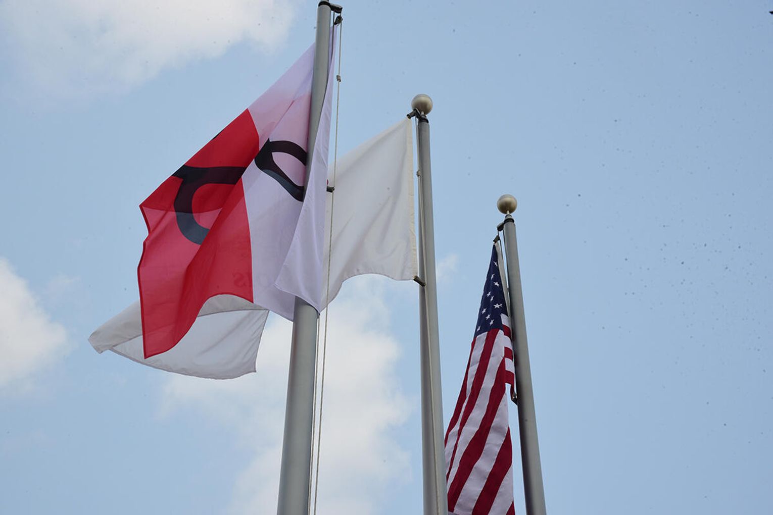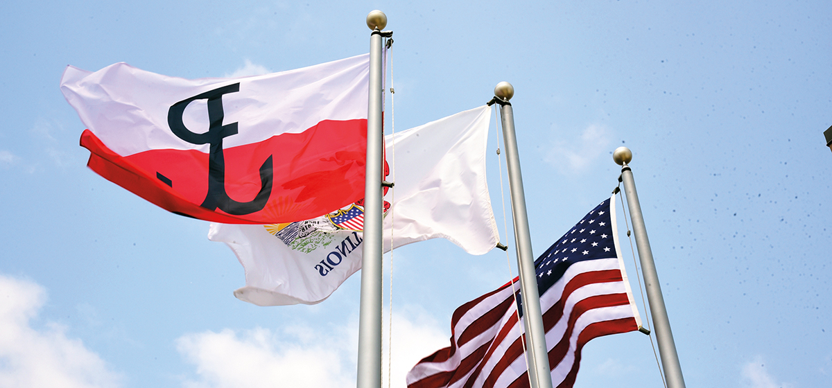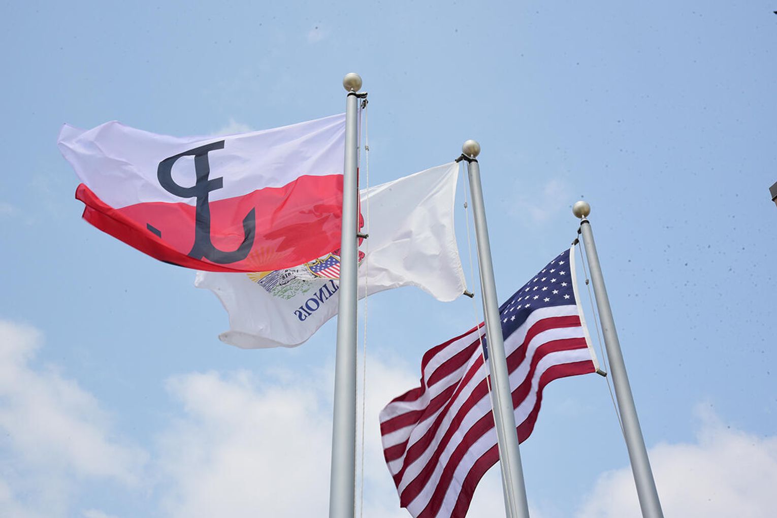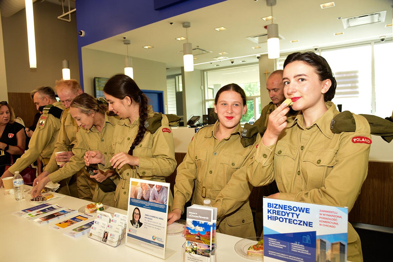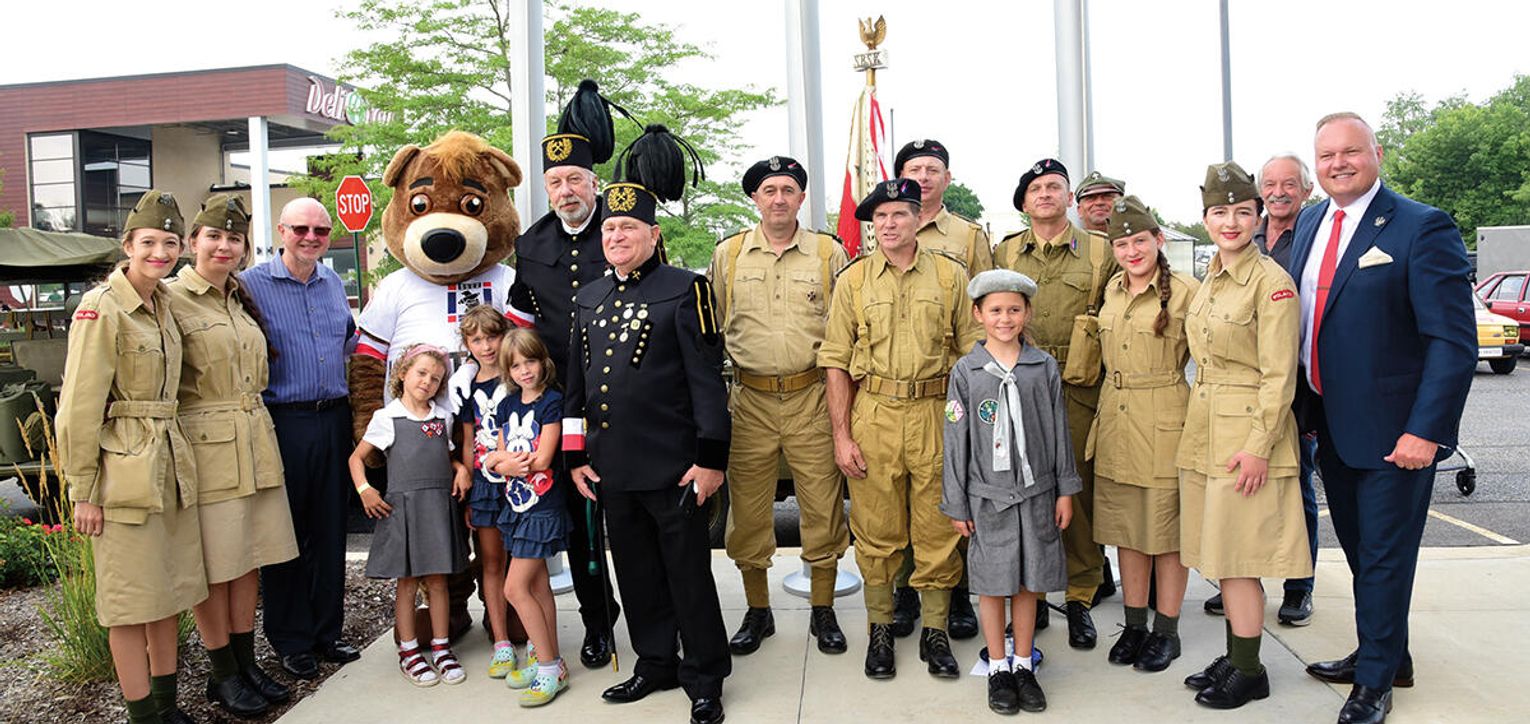 Po powitaniu przybyłych gości przez menedżera Polsko-Słowiańskiej Federalnej Unii Kredytowej na terenie aglomeracji Chicagowskiej Roberta Radkowskiego i członka Rady Dyrektorów Naszej Unii Bogdana Ogórka, rocznicową uroczystość rozpoczęło podniesienie na maszt flagi z kotwicą. Tego zaszczytu dostąpiły członkinie Pomocniczej Służby Kobiet z grupy rekonstrukcyjnej 12 Pułku Ułanów Podolskich: Hania Baraniak, Natalia Żółtowska i siostry Rachwalskie, Izabela i Natalia.