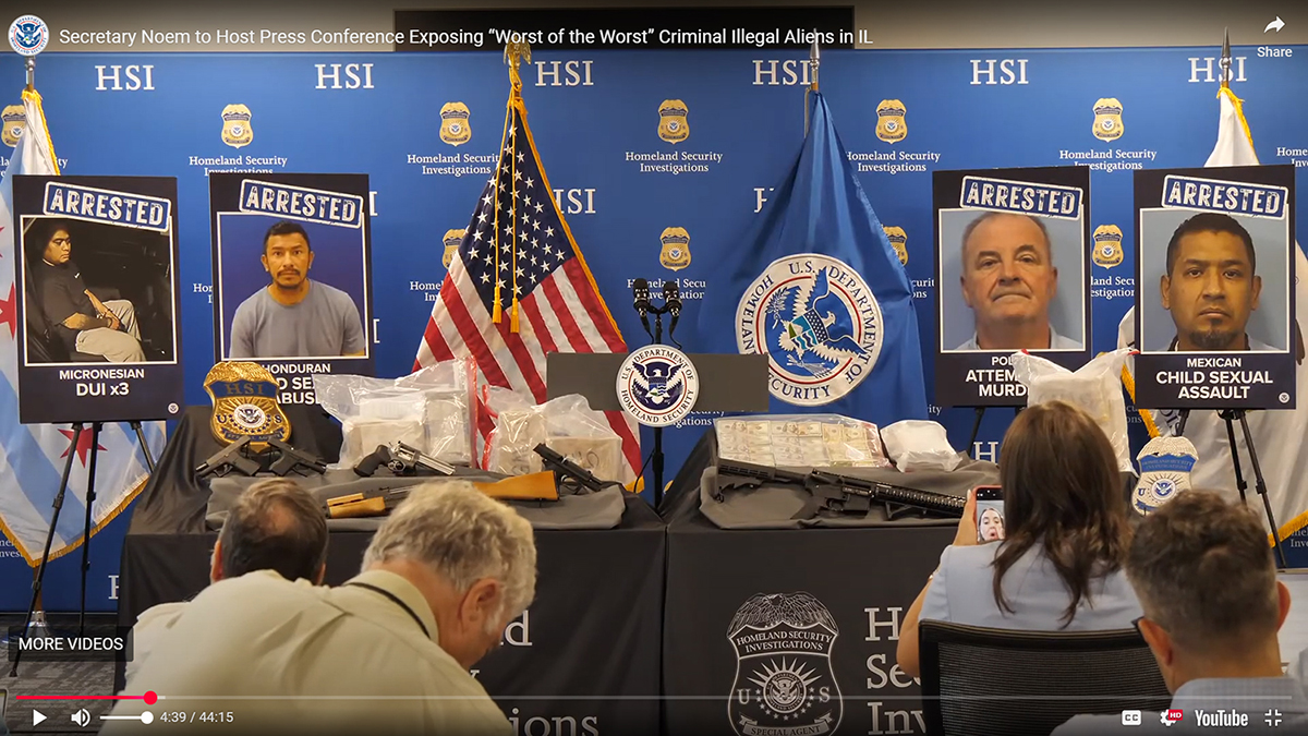 Sekretarz DHS ostro skrytykowała władze Illinois i Chicago za politykę tzw. stanów i miast sanktuariów, które odmawiają współpracy z federalnymi służbami imigracyjnymi. Według danych, które przedstawiła, w ciągu ostatnich siedmiu miesięcy ICE wystawiło w Chicago 1664 nakazy zatrzymania wobec przestępców, co oznacza wzrost o 106 proc. w porównaniu z administracją Bidena. Jednak lokalne władze uwzględniły jedynie 8 proc. z nich.
