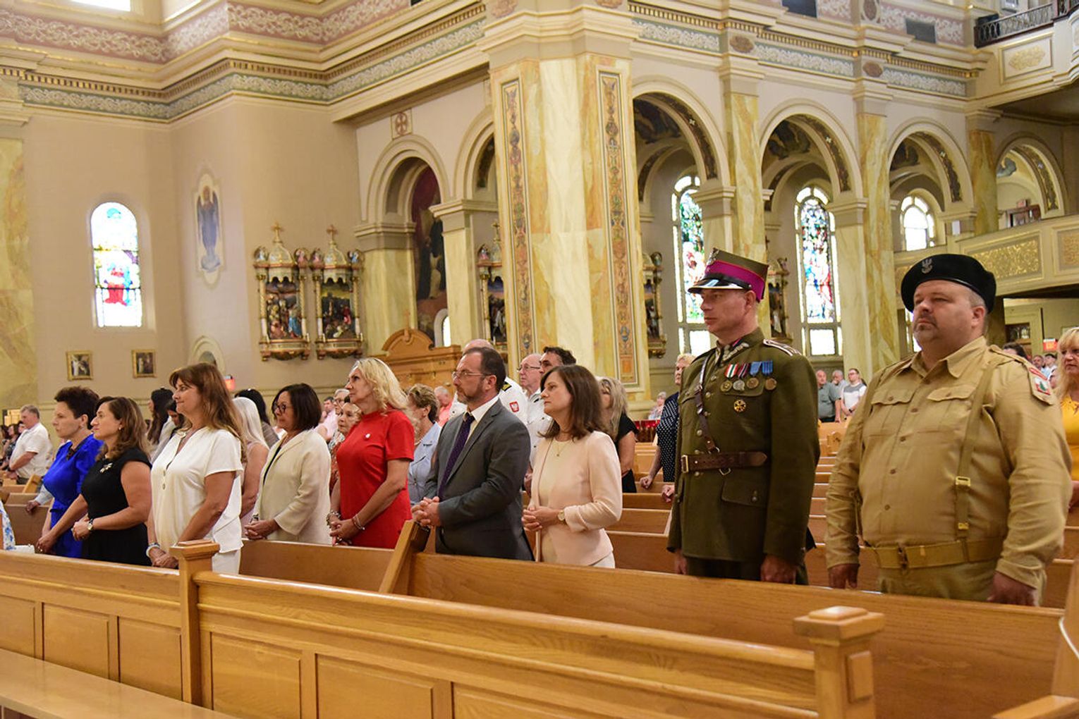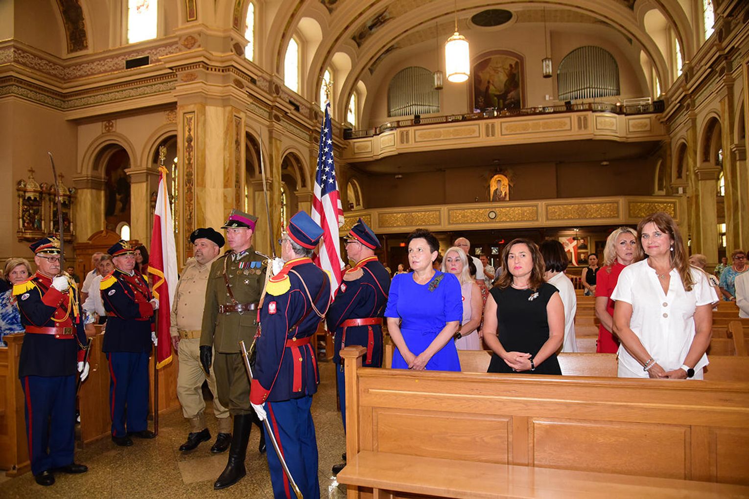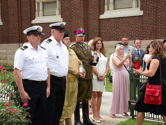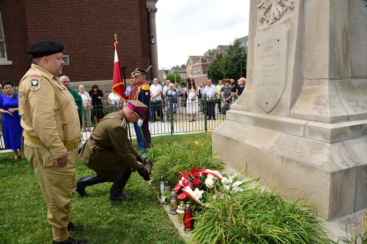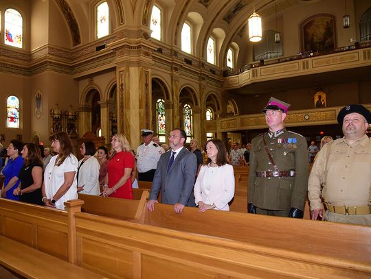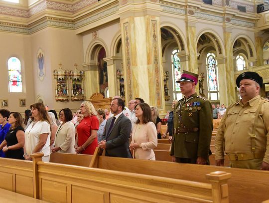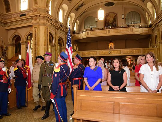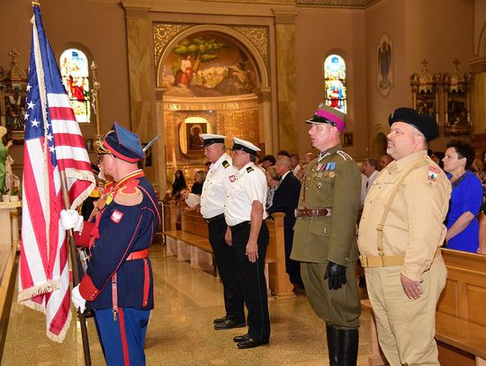 W intencji poległych i zmarłych obrońców ojczyzny w Bazylice pw. św. Jacka ks. proboszcz Stanisław Jankowski odprawił mszę świętą. Kazanie wygłosił ks. Antoni Dziorek. Wartę honorową przy ołtarzu zaciągnęły poczty sztandarowe organizacji polonijnych. W kościelnych ławach wraz z przedstawicielkami polskiej misji dyplomatycznej zasiadły wiceprezeski oraz reprezentantki wydziału stanowego Kongresu Polonii Amerykańskiej, organizacji paramilitarnych, a także polonijni Kawalerowie i Damy Orderu Świętego Stanisława Biskupa i Męczennika – Mariola Urbanek, Jan Jaworski oraz Bronisława i Daniel Gibałowie, którzy w otoczeniu najbliższej rodziny celebrowali również 50. rocznicę zawarcia małżeństwa.