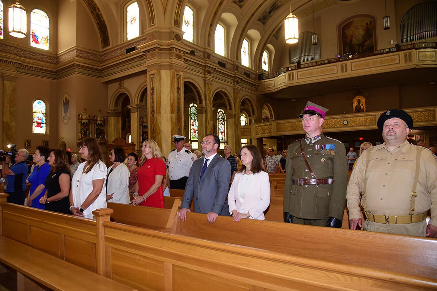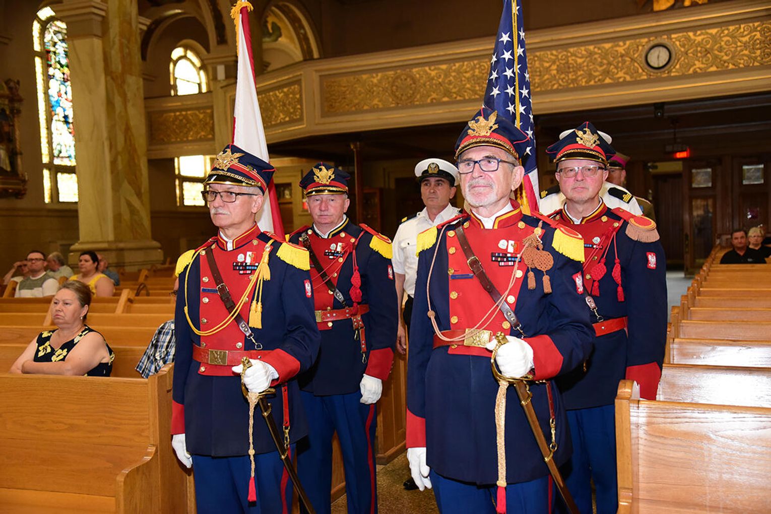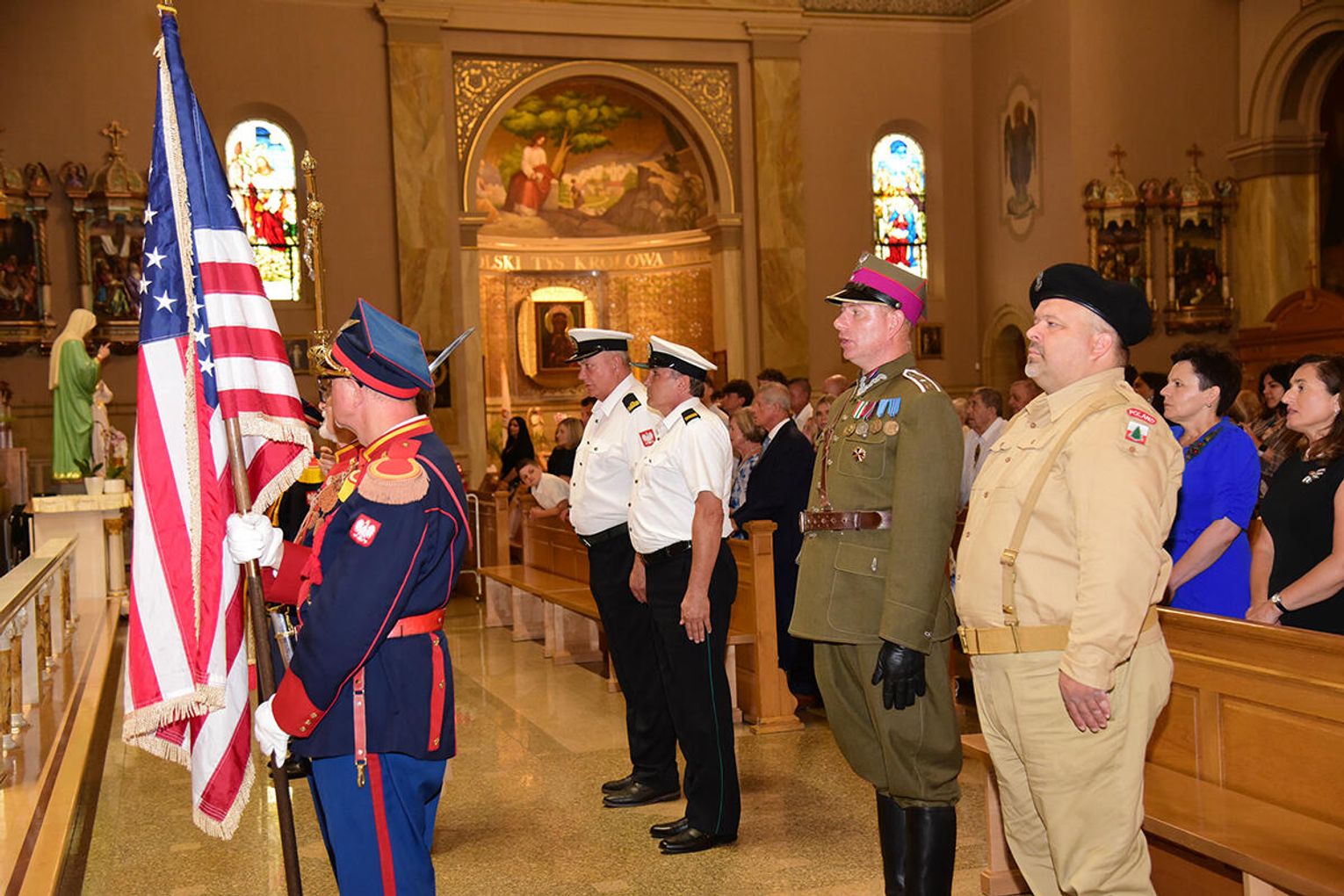 W intencji poległych i zmarłych obrońców ojczyzny w Bazylice pw. św. Jacka ks. proboszcz Stanisław Jankowski odprawił mszę świętą. Kazanie wygłosił ks. Antoni Dziorek. Wartę honorową przy ołtarzu zaciągnęły poczty sztandarowe organizacji polonijnych. W kościelnych ławach wraz z przedstawicielkami polskiej misji dyplomatycznej zasiadły wiceprezeski oraz reprezentantki wydziału stanowego Kongresu Polonii Amerykańskiej, organizacji paramilitarnych, a także polonijni Kawalerowie i Damy Orderu Świętego Stanisława Biskupa i Męczennika – Mariola Urbanek, Jan Jaworski oraz Bronisława i Daniel Gibałowie, którzy w otoczeniu najbliższej rodziny celebrowali również 50. rocznicę zawarcia małżeństwa.
