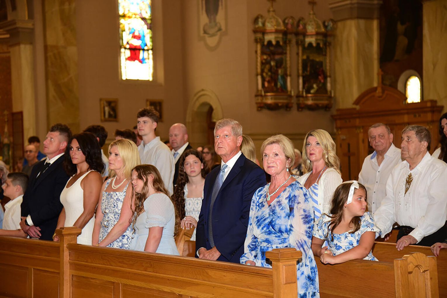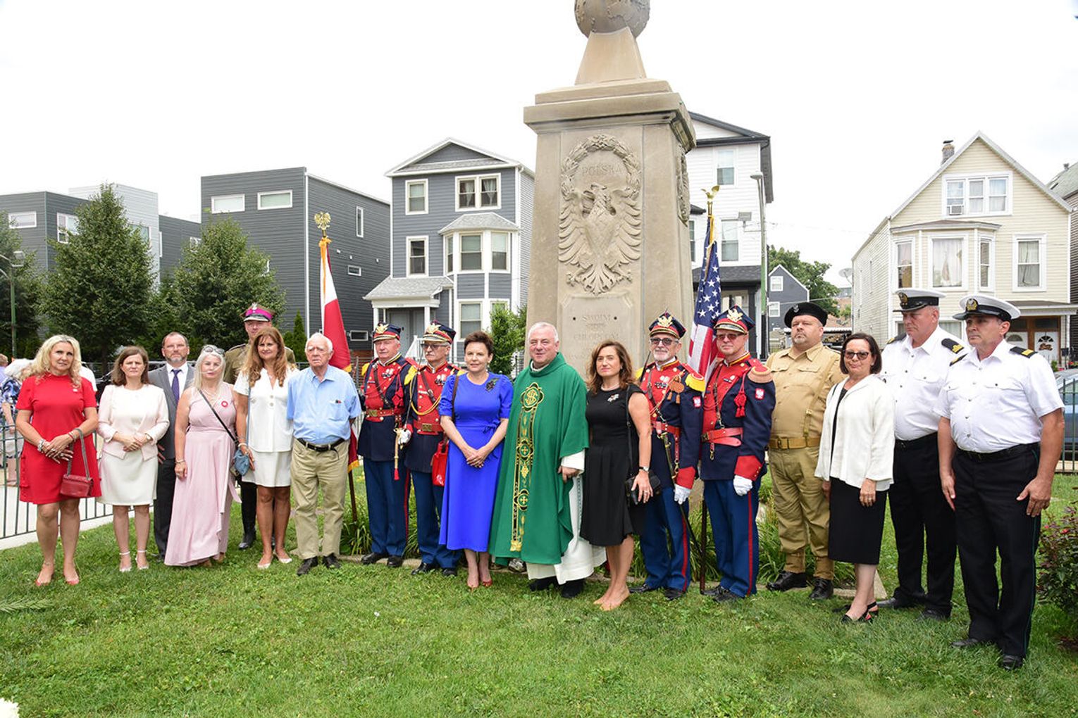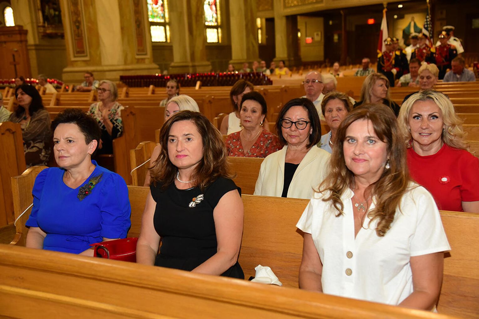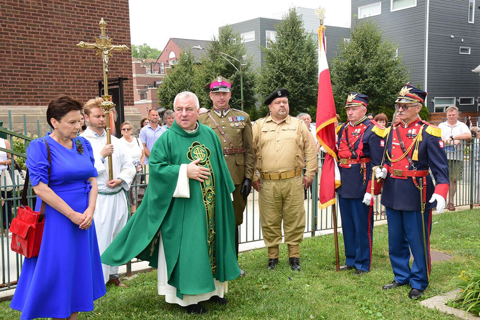 W intencji poległych i zmarłych obrońców ojczyzny w Bazylice pw. św. Jacka ks. proboszcz Stanisław Jankowski odprawił mszę świętą. Kazanie wygłosił ks. Antoni Dziorek. Wartę honorową przy ołtarzu zaciągnęły poczty sztandarowe organizacji polonijnych. W kościelnych ławach wraz z przedstawicielkami polskiej misji dyplomatycznej zasiadły wiceprezeski oraz reprezentantki wydziału stanowego Kongresu Polonii Amerykańskiej, organizacji paramilitarnych, a także polonijni Kawalerowie i Damy Orderu Świętego Stanisława Biskupa i Męczennika – Mariola Urbanek, Jan Jaworski oraz Bronisława i Daniel Gibałowie, którzy w otoczeniu najbliższej rodziny celebrowali również 50. rocznicę zawarcia małżeństwa.