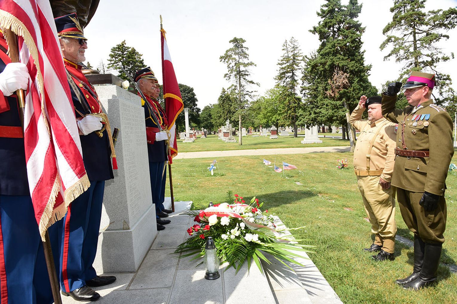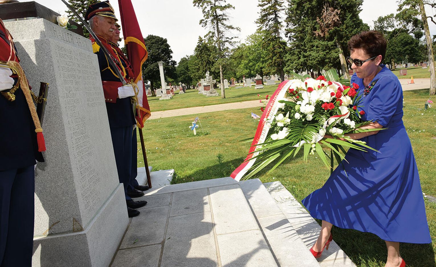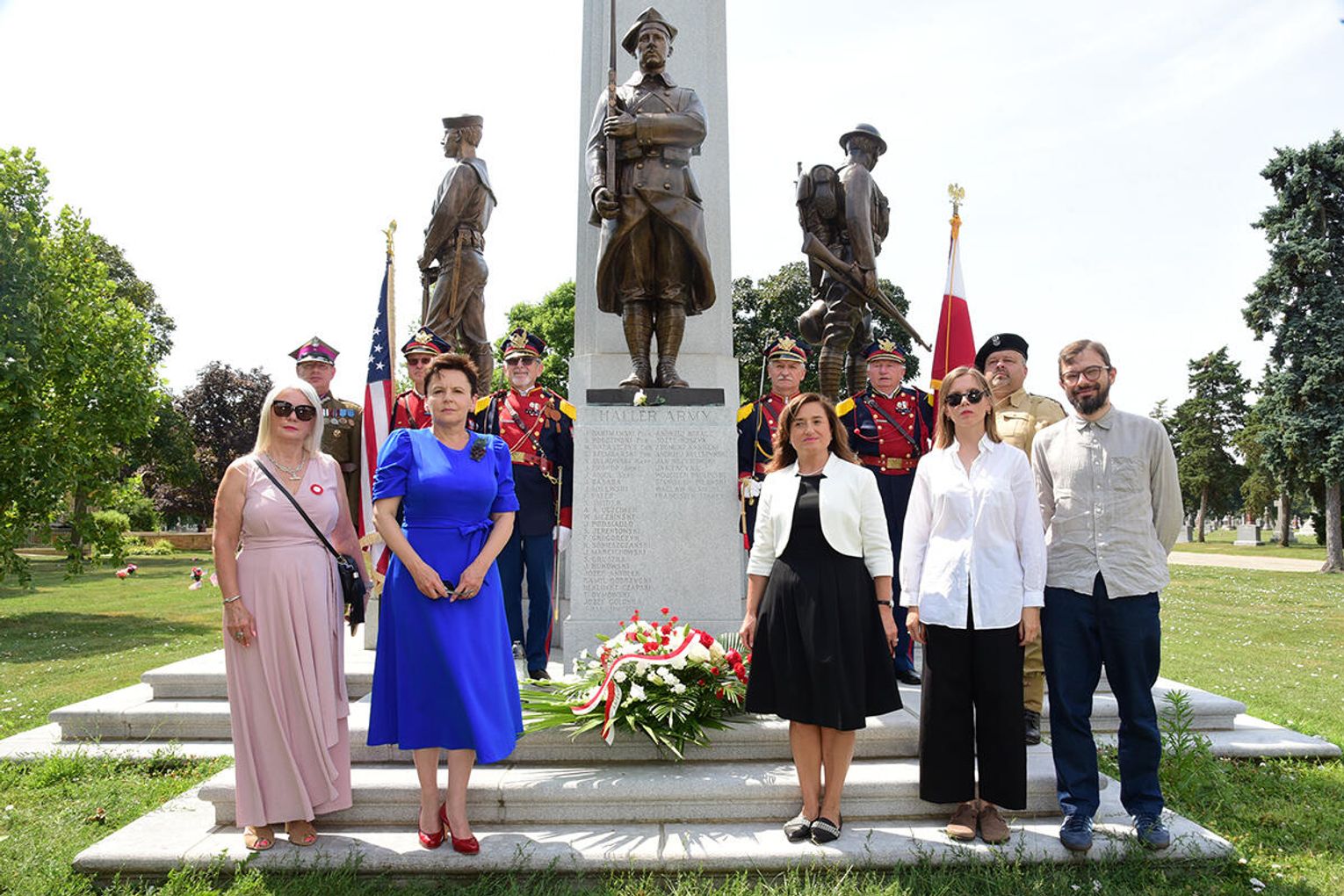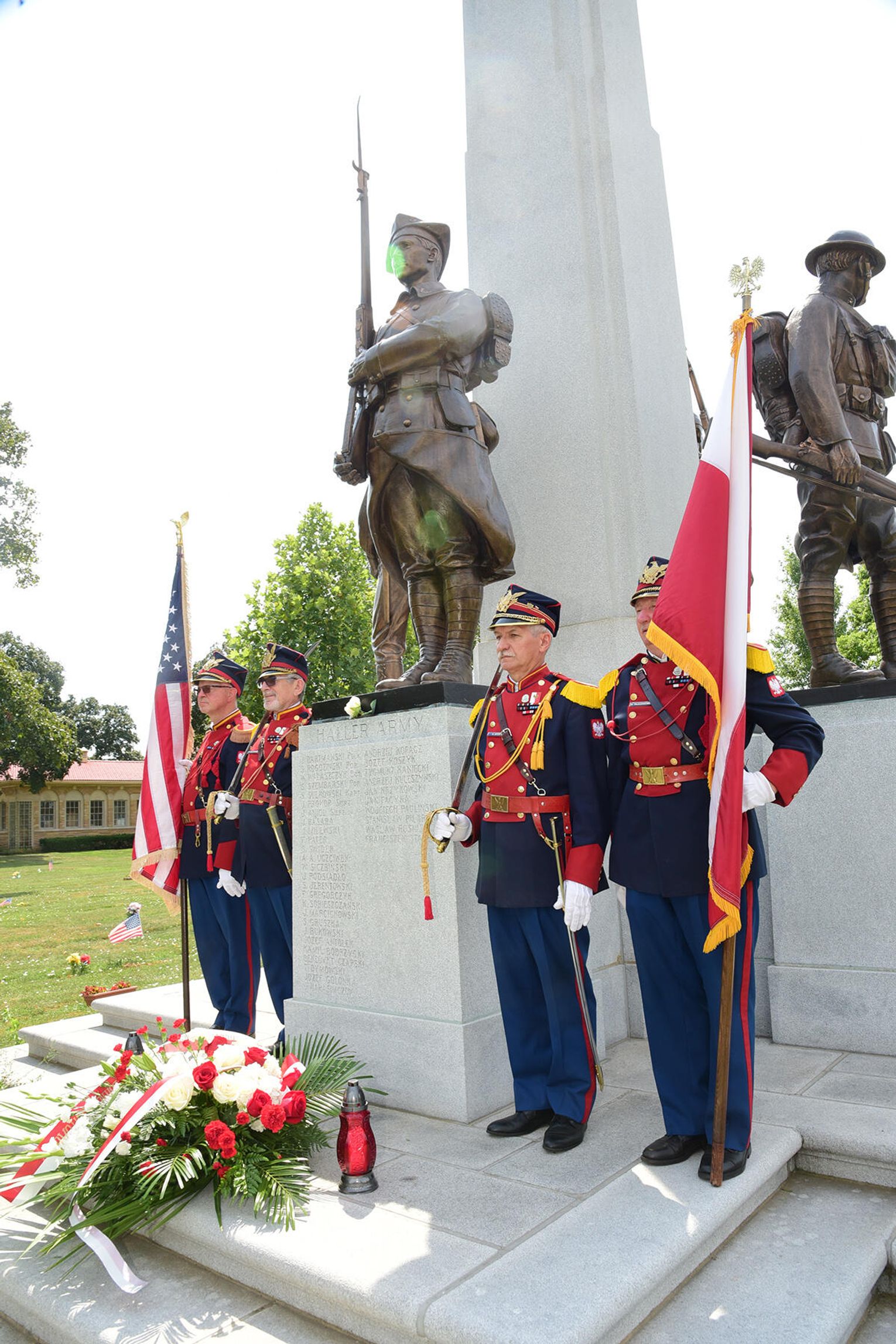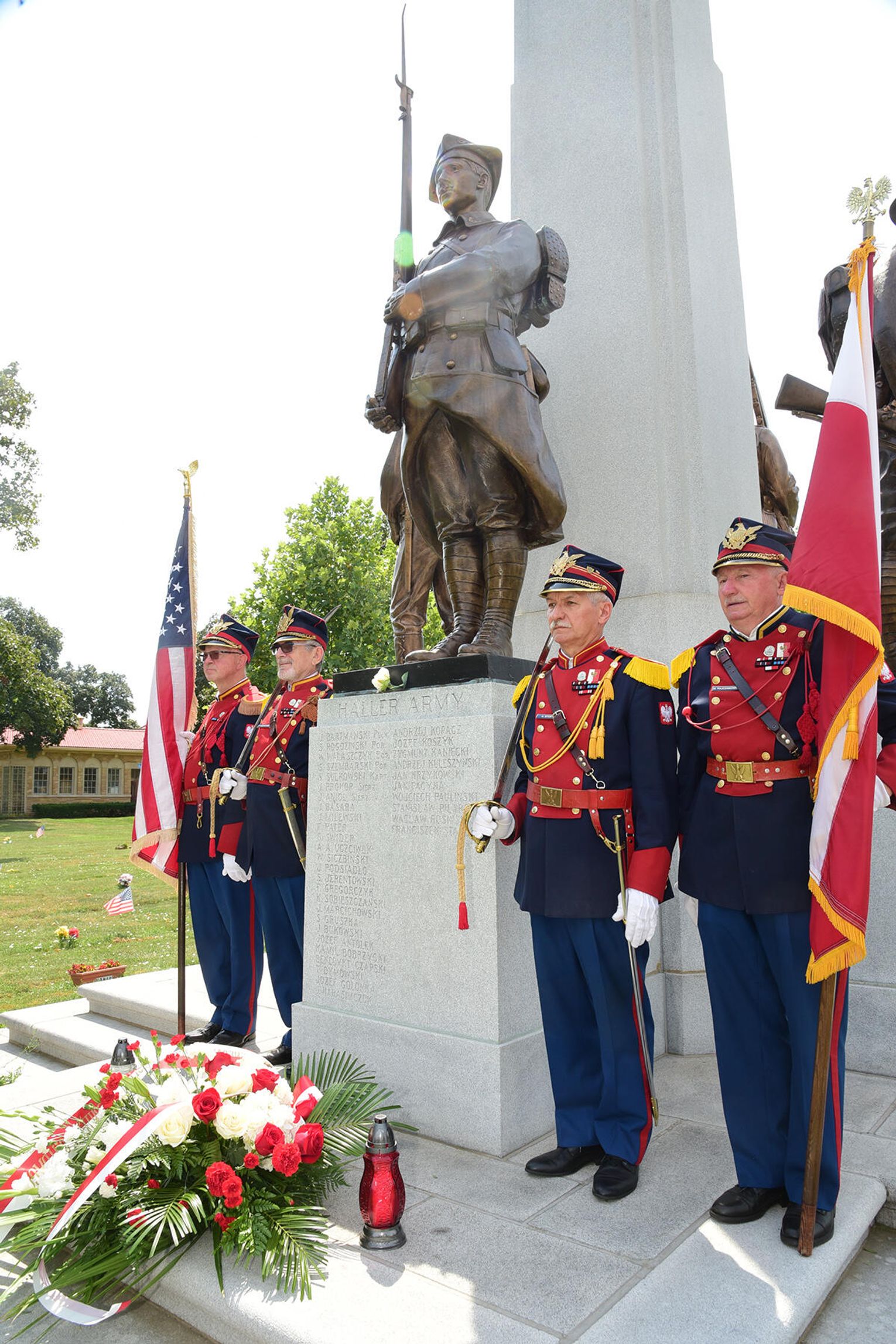 Po nabożeństwie jego uczestnicy wzięli udział w złożeniu kwiatów pod monumentem upamiętniającym żołnierzy Błękitnej Armii i Ochotników I Wojny Światowej stającym w ogrodzie parafialnym przy Pomniku św. Jana Pawła II. Niedzielną peregrynację po miejscach pamięci zakończyło spotkanie przy tablicy pamiątkowej z nazwiskami Hallerczyków oraz żołnierzy z polskim rodowodem uczestniczących w walkach I wojny światowej, mieszczącej się na wschodniej ścianie najstarszego polonijnego kościoła pod wezwaniem św. Stanisława Kostki na „Trójcowie”.