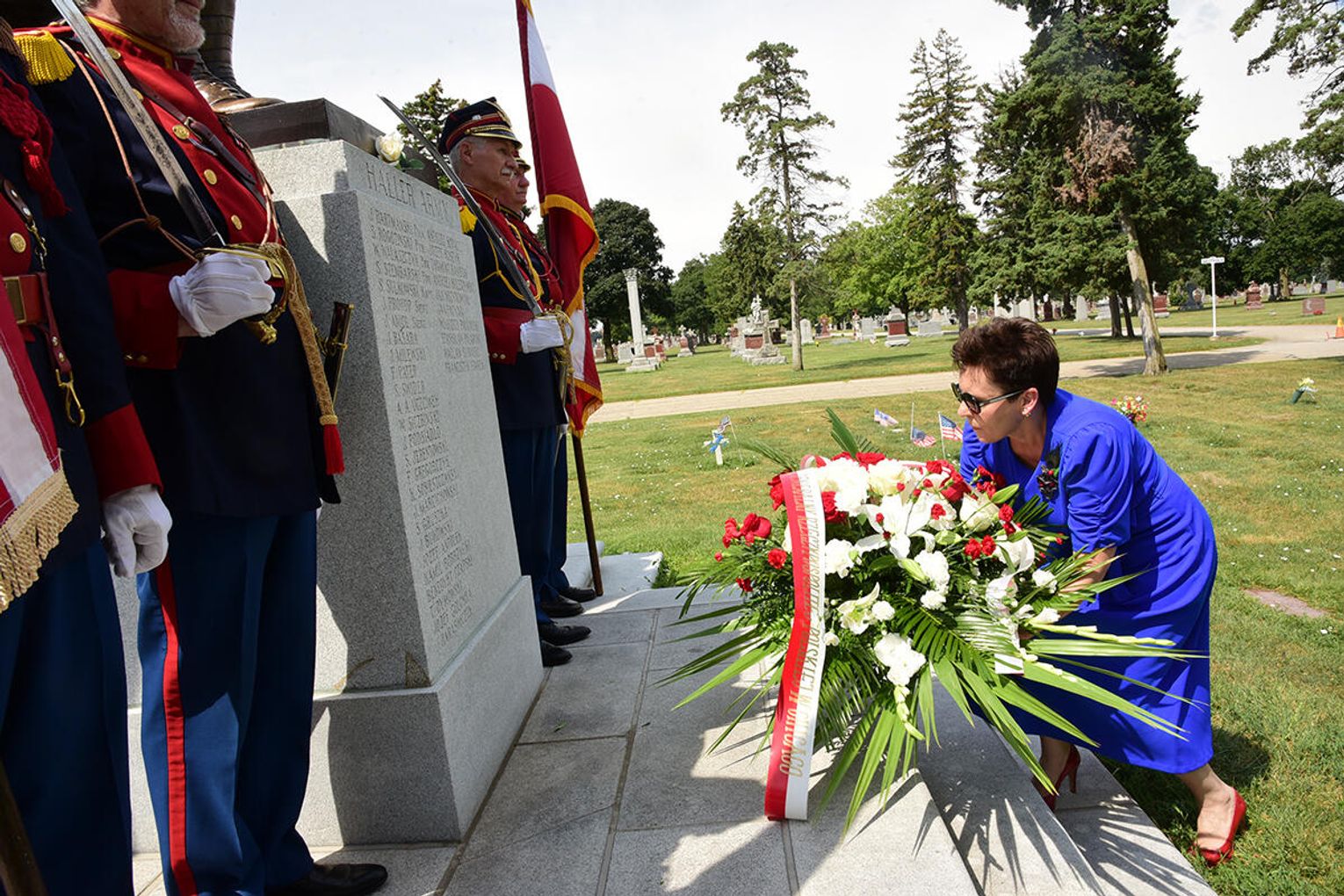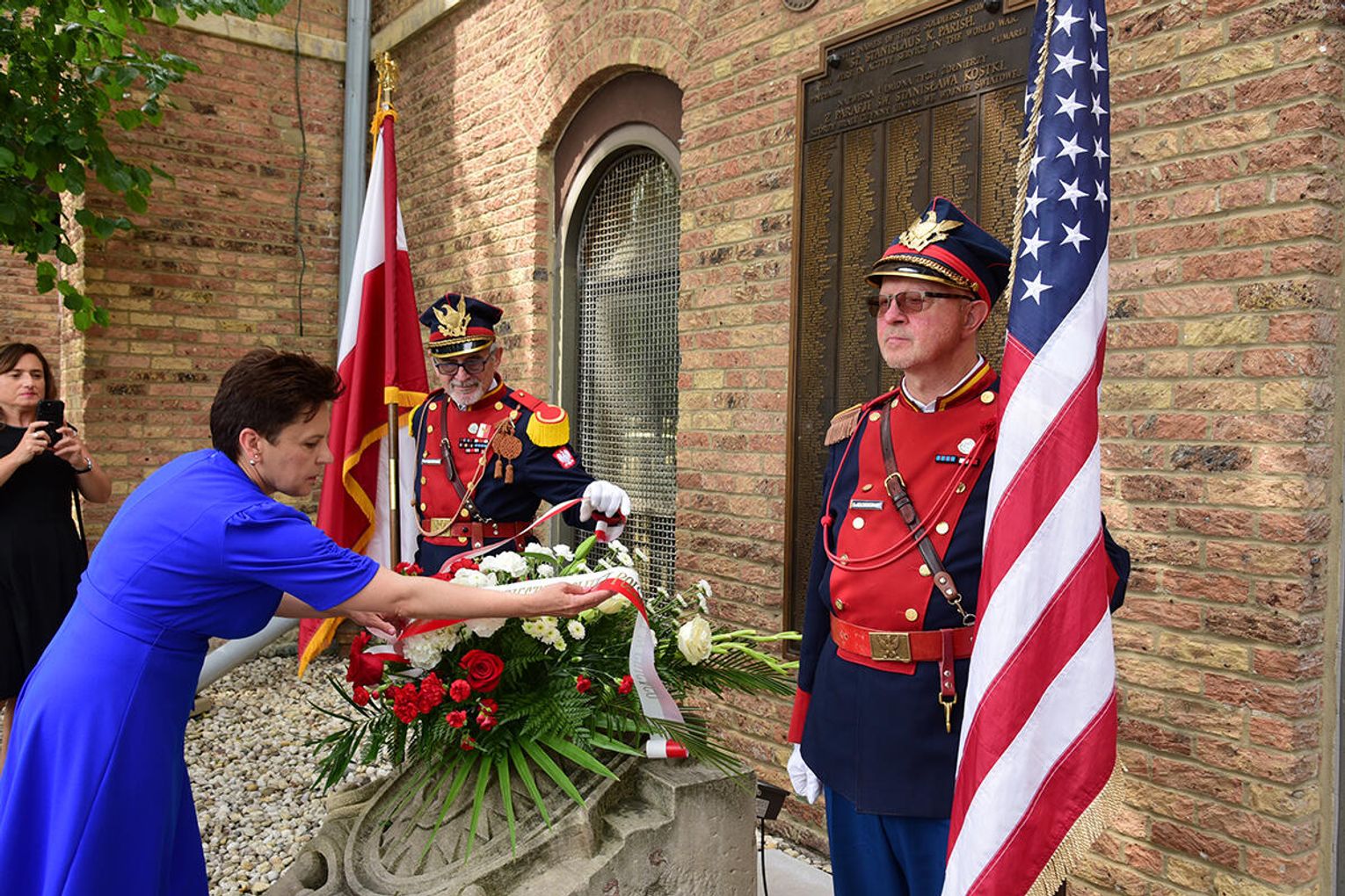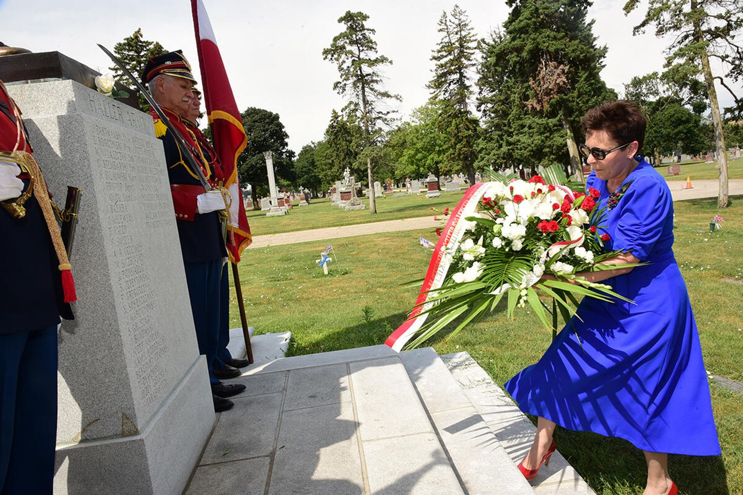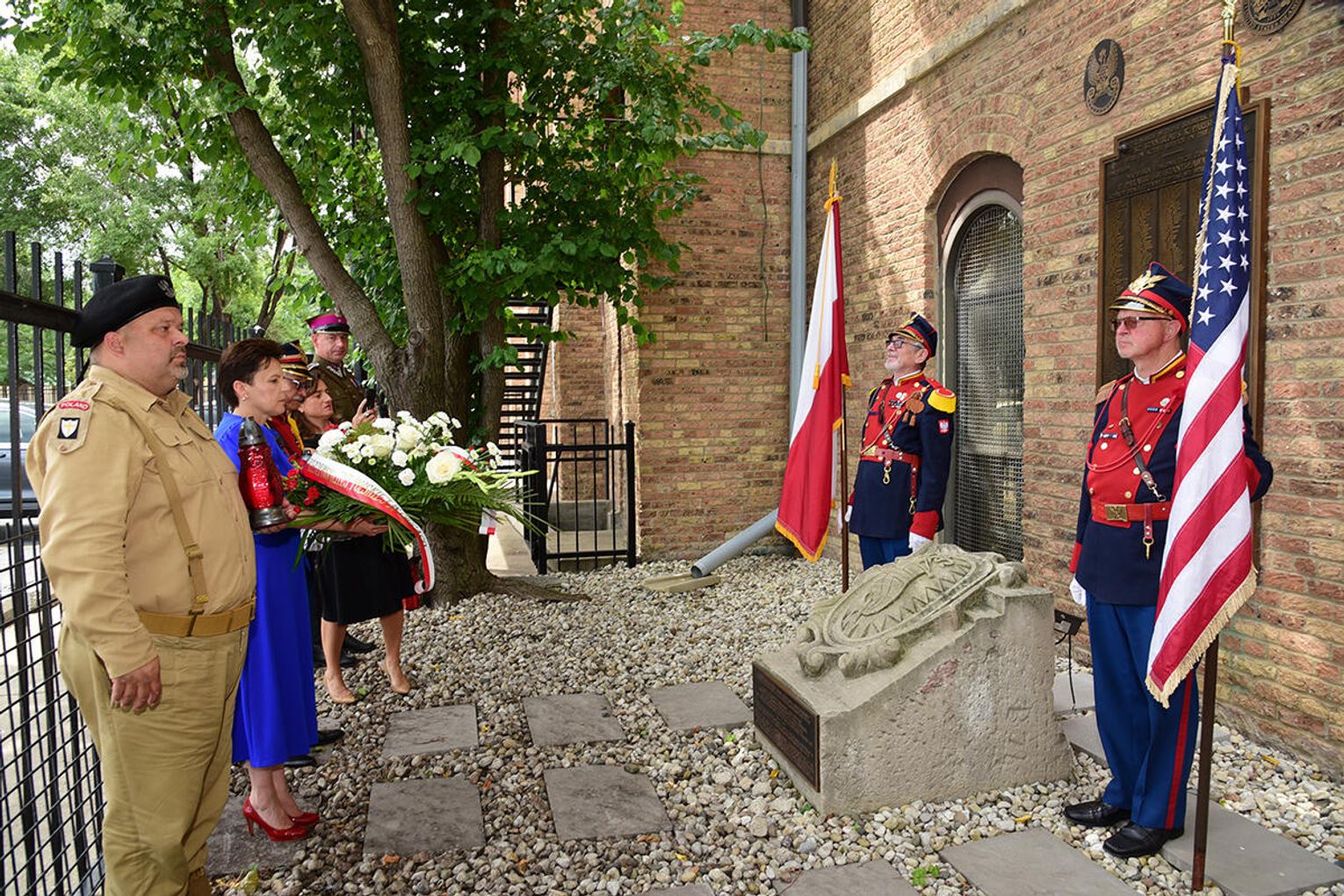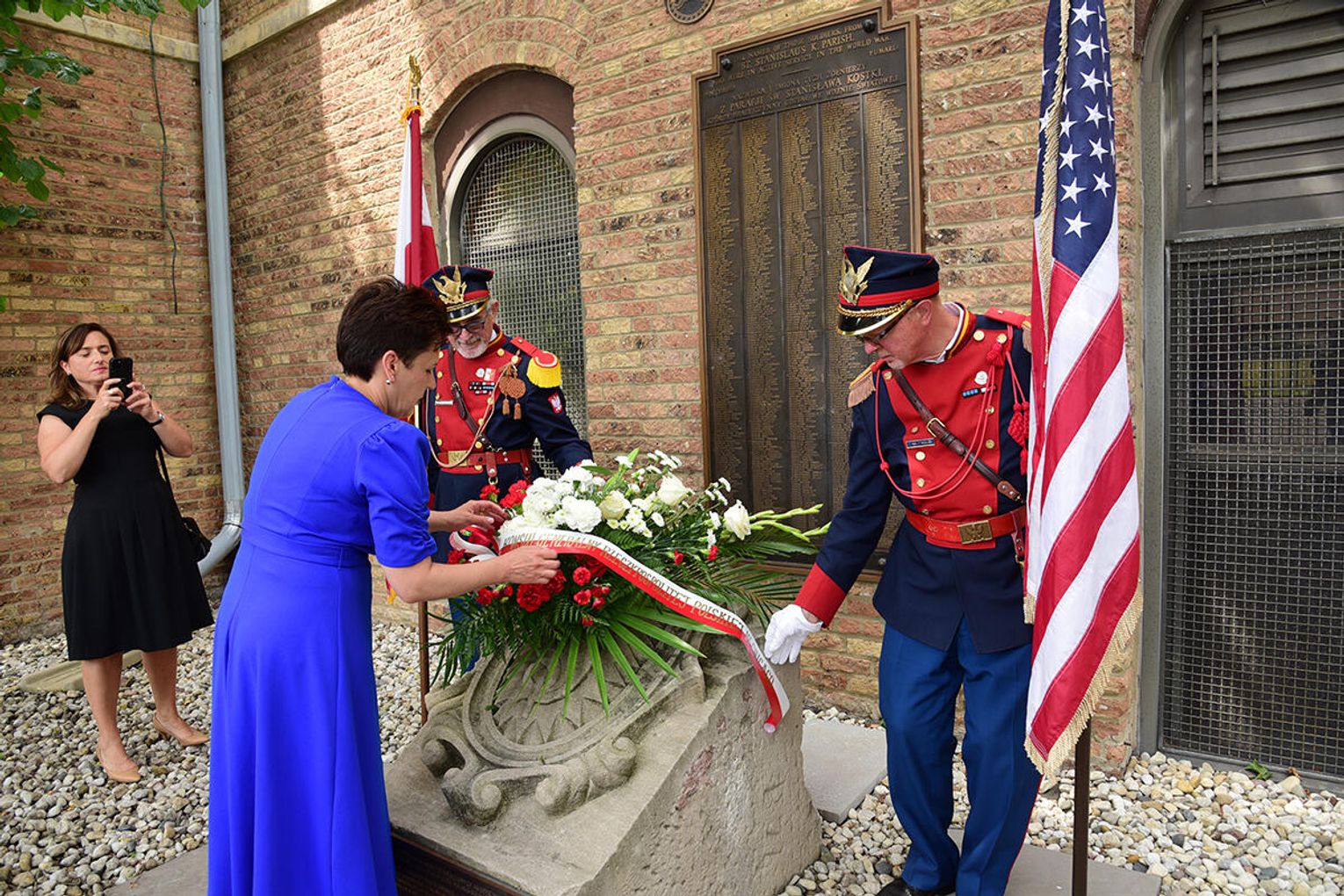 Po nabożeństwie jego uczestnicy wzięli udział w złożeniu kwiatów pod monumentem upamiętniającym żołnierzy Błękitnej Armii i Ochotników I Wojny Światowej stającym w ogrodzie parafialnym przy Pomniku św. Jana Pawła II. Niedzielną peregrynację po miejscach pamięci zakończyło spotkanie przy tablicy pamiątkowej z nazwiskami Hallerczyków oraz żołnierzy z polskim rodowodem uczestniczących w walkach I wojny światowej, mieszczącej się na wschodniej ścianie najstarszego polonijnego kościoła pod wezwaniem św. Stanisława Kostki na „Trójcowie”.