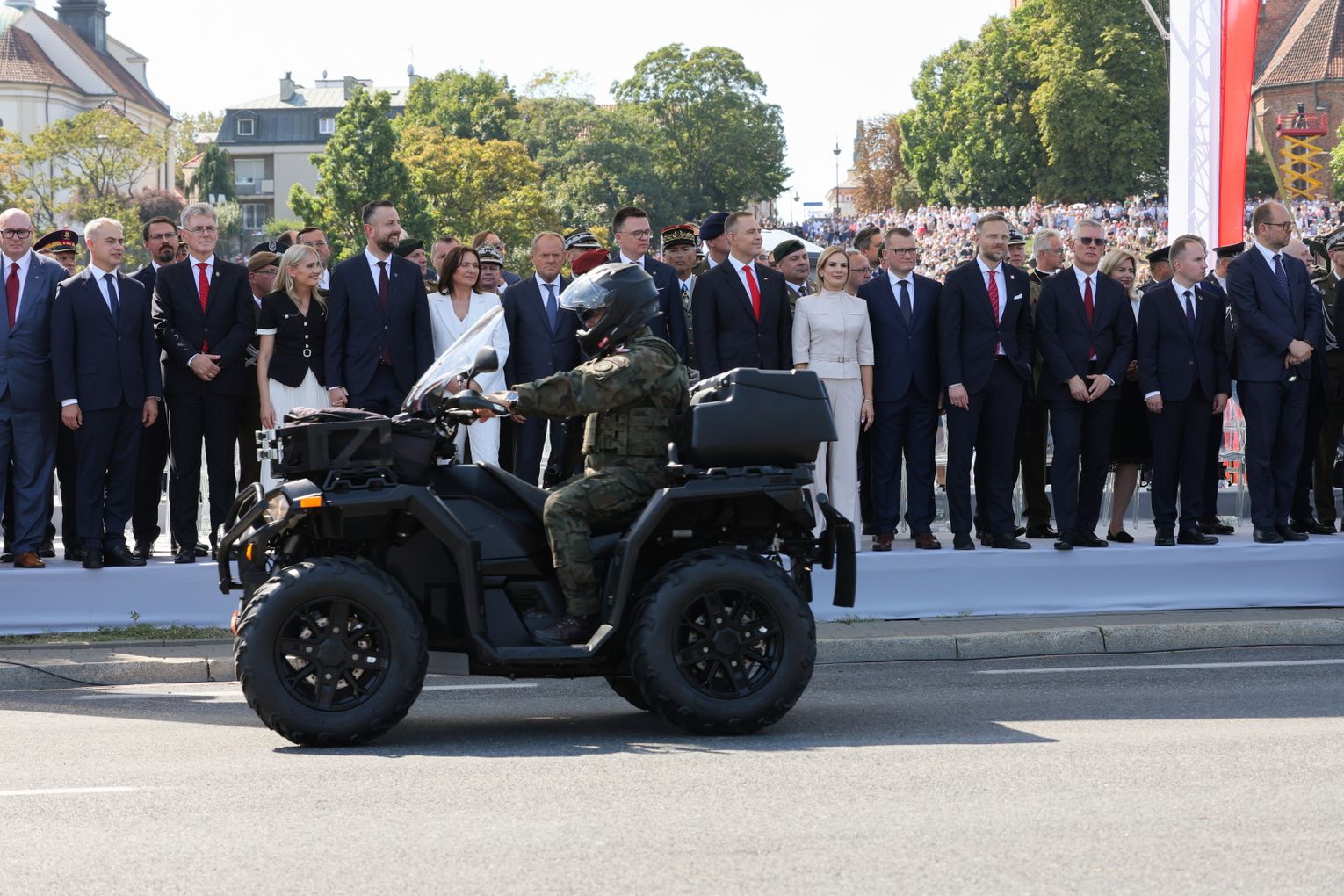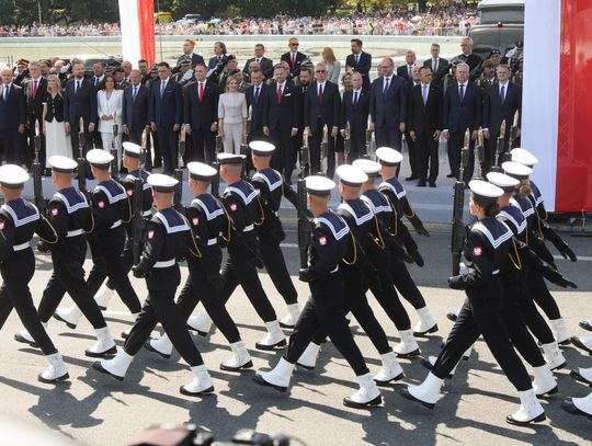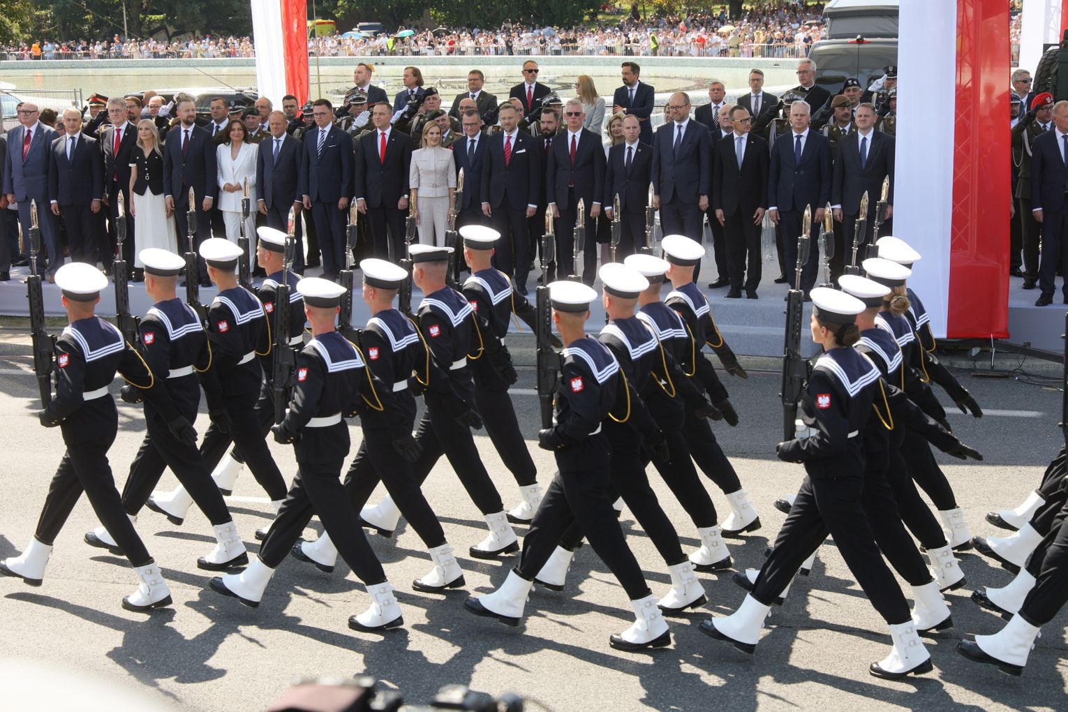 Defilada ruszyła po pokazie desantu wojskowych spadochroniarzy, którzy podczas opadania na spadochronach rozwinęli wielką flagę państwową, salucie armatnim oraz wystąpieniach prezydenta Karola Nawrockiego i wicepremiera, szefa MON Władysława Kosiniaka-Kamysza. Po raz pierwszy defiladzie na lądzie i w powietrzu towarzyszyła parada morska - na wodach Bałtyku przy Helu wzięło w niej udział ok. 20 okrętów Marynarki Wojennej RP.