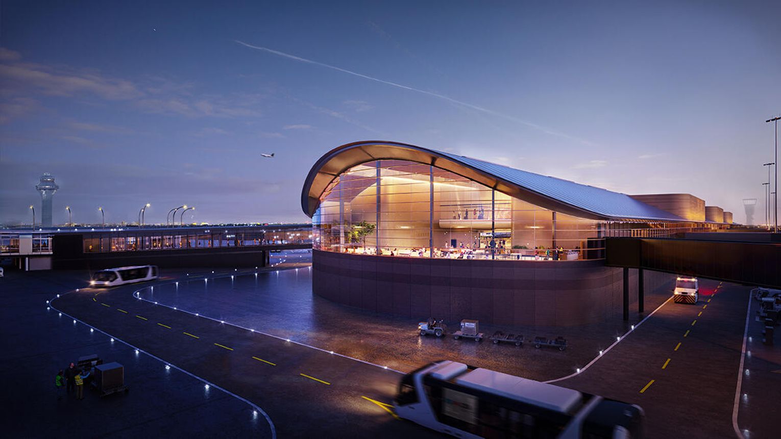 Projekt, zaprojektowany przez biuro architektoniczne Skidmore, Owings and Merrill, łączy nowoczesność z ekologią. Budynek został zaplanowany tak, by zmniejszyć koszty ogrzewania i chłodzenia o połowę, a we wnętrzu znajdą się rośliny i krzewy nawiązujące do dawnej nazwy lotniska – „Orchard Field”. Największe wrażenie ma jednak robić kopulasta przestrzeń z oculusem – okrągłym świetlikiem wpuszczającym naturalne światło.