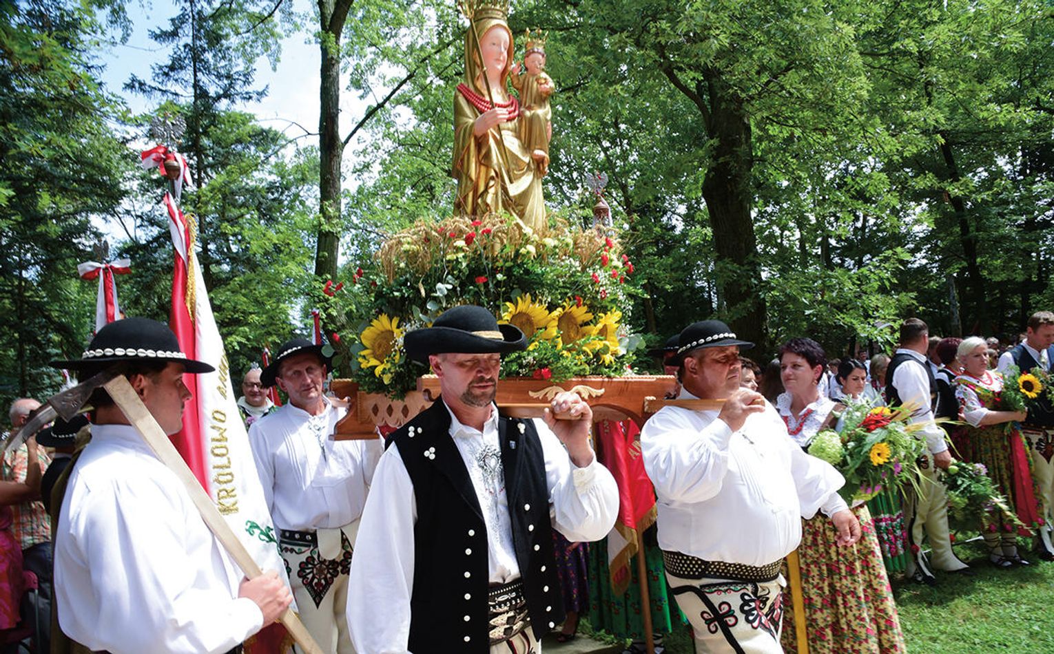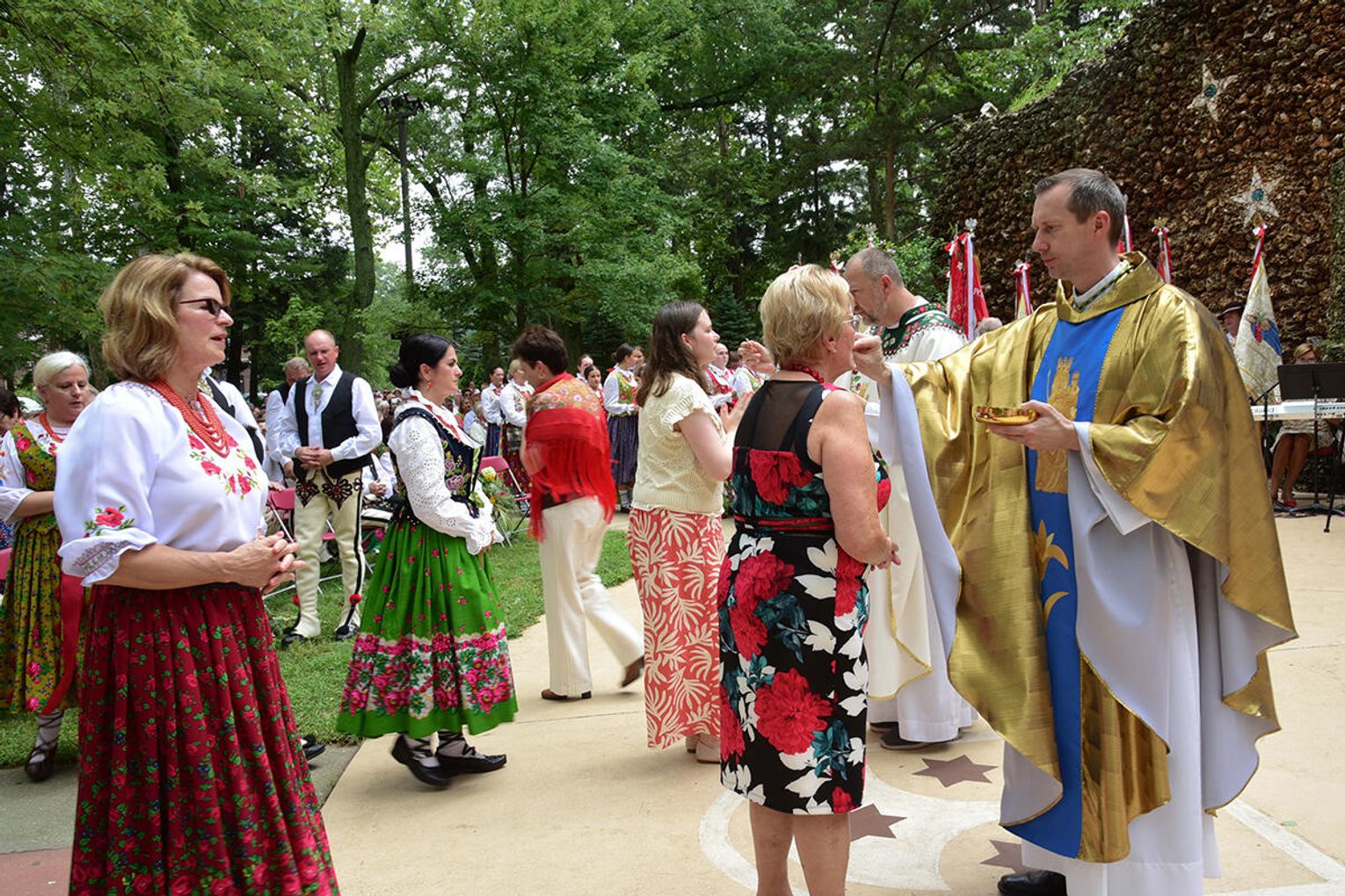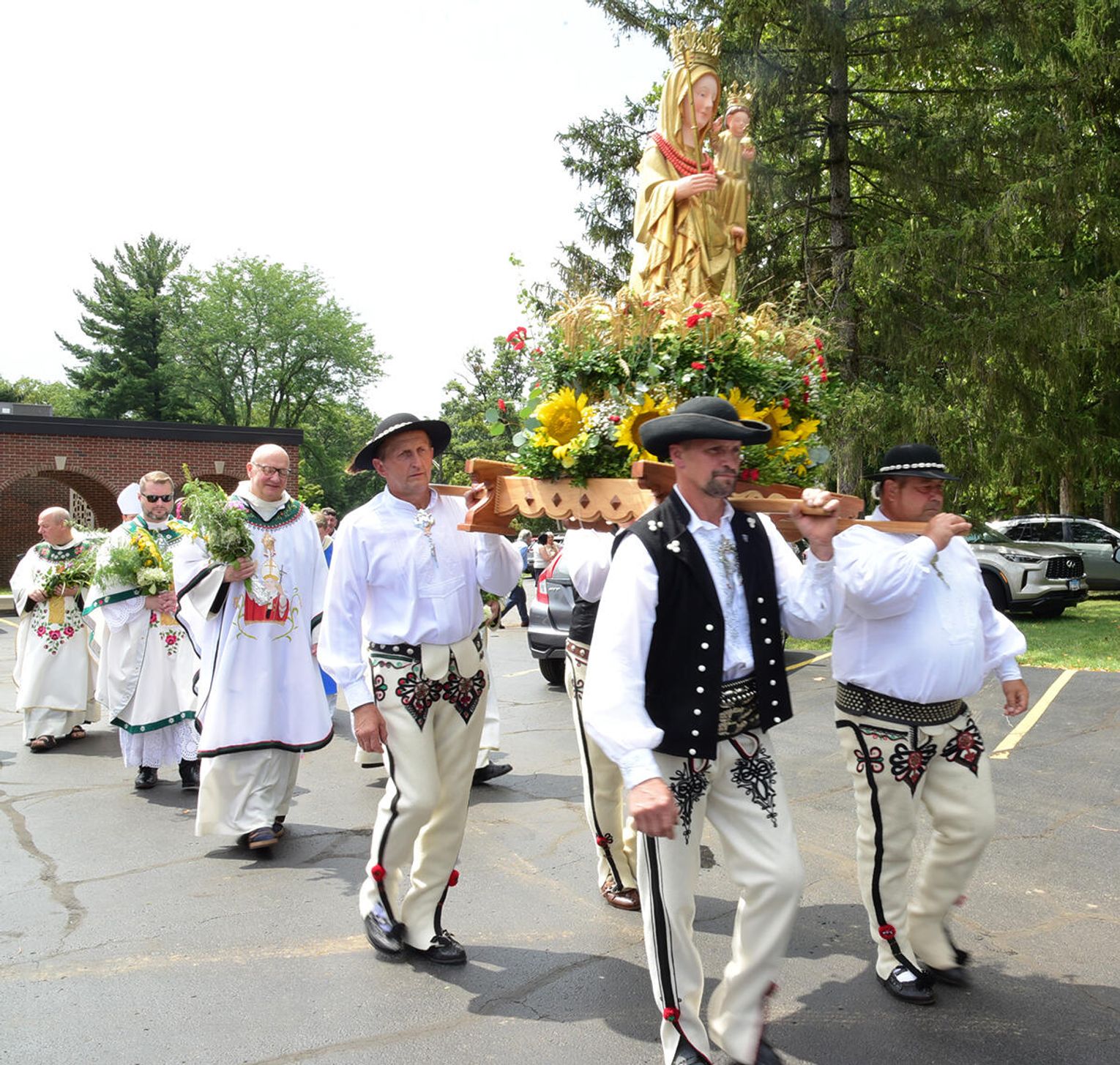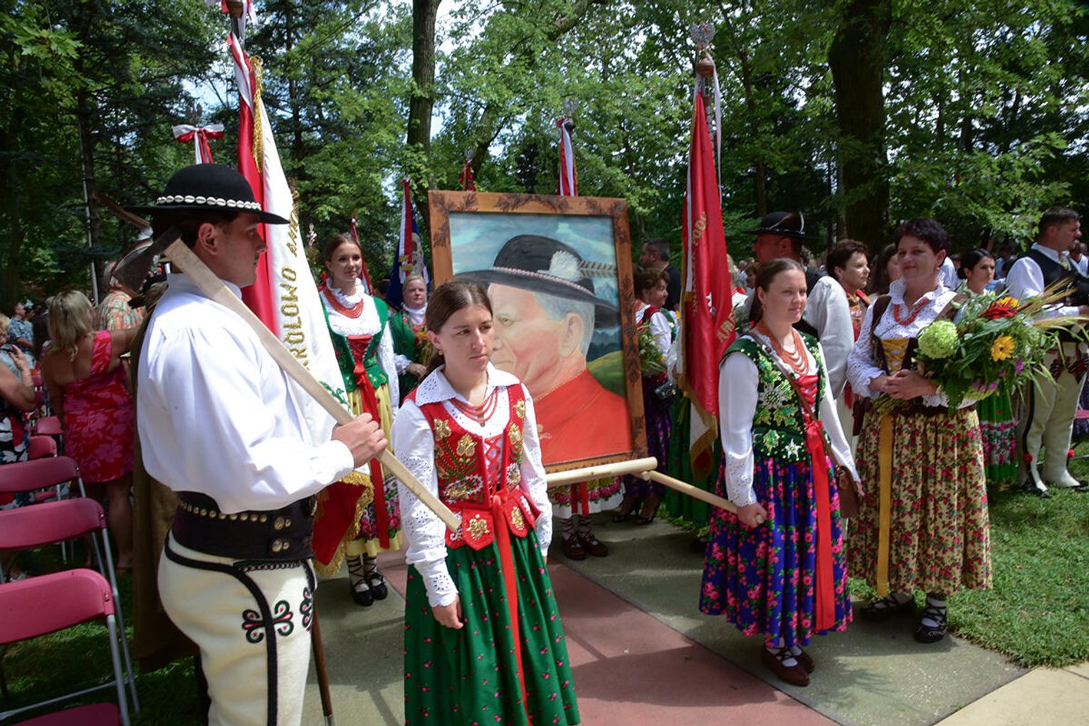 W procesji do ołtarza w Grocie Matki Bożej Szkaplerznej, gdzie zgromadzili się wierni wraz z duchownymi szła konsul generalna RP z Chicago Regina Jurkowska, dzieci z grup folklorystycznych działających przy Zarządzie Głównym ZPPA, członkowie 33 pocztów sztandarowych góralskich kół, kapela góralska, orszak z Figurą Gaździny Podhala oraz członkowie ZG ZPPA z prezesem Janem Królem na czele.