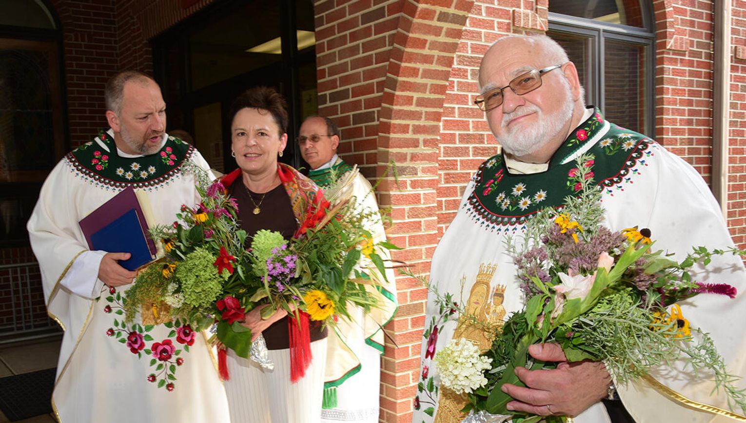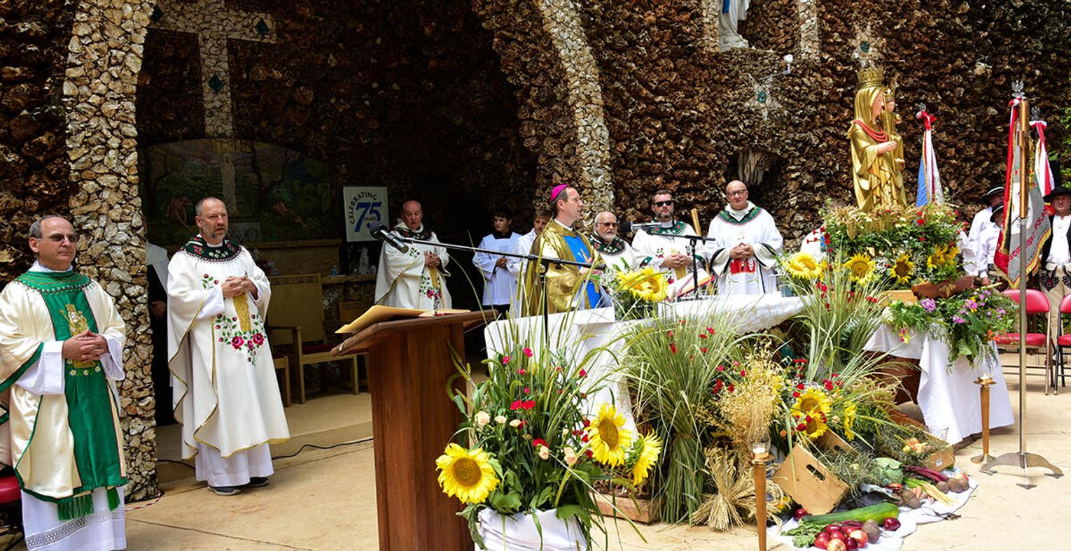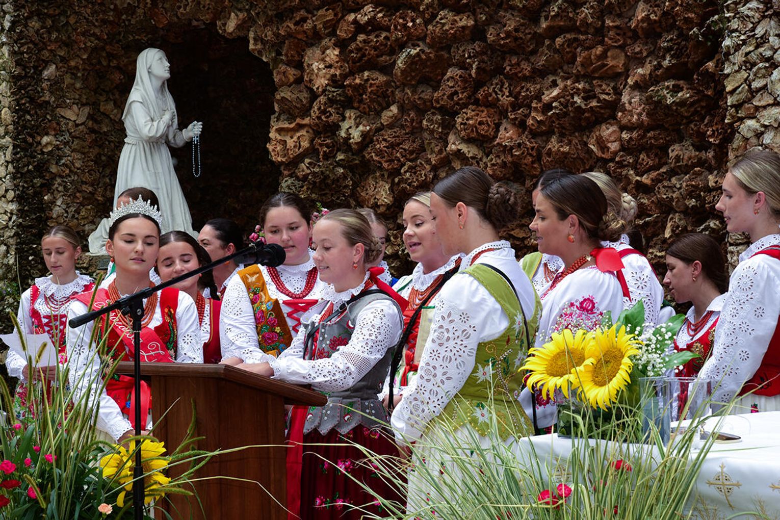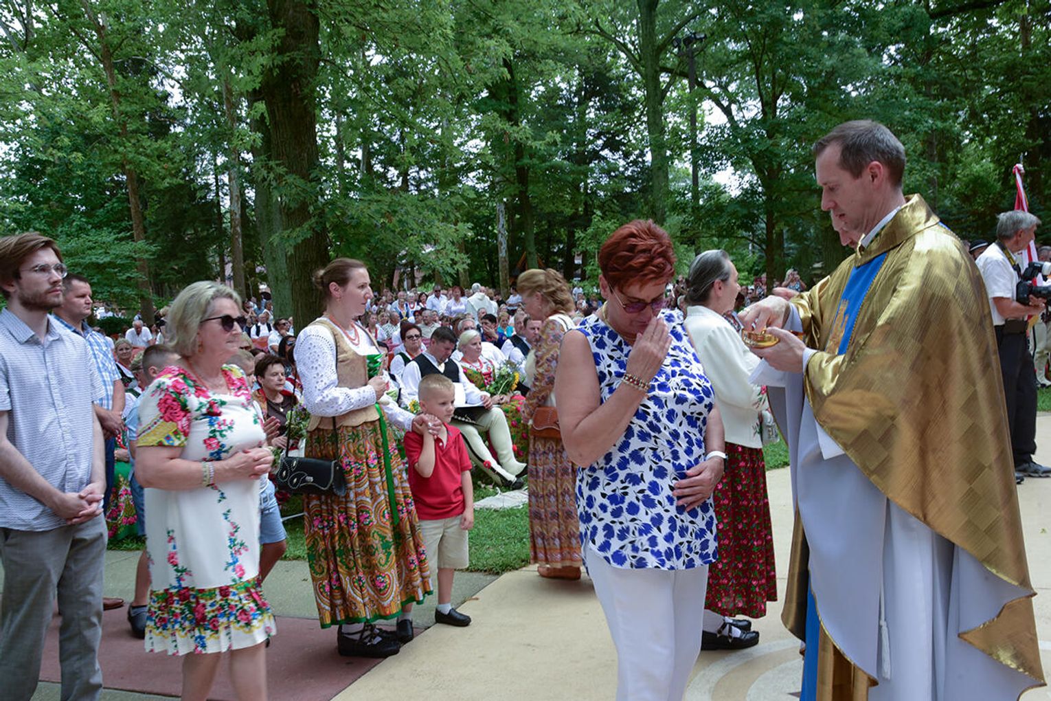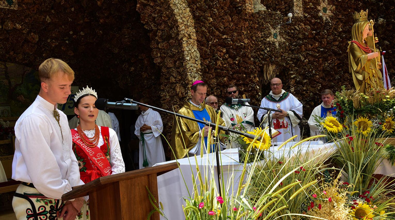 W procesji do ołtarza w Grocie Matki Bożej Szkaplerznej, gdzie zgromadzili się wierni wraz z duchownymi szła konsul generalna RP z Chicago Regina Jurkowska, dzieci z grup folklorystycznych działających przy Zarządzie Głównym ZPPA, członkowie 33 pocztów sztandarowych góralskich kół, kapela góralska, orszak z Figurą Gaździny Podhala oraz członkowie ZG ZPPA z prezesem Janem Królem na czele.