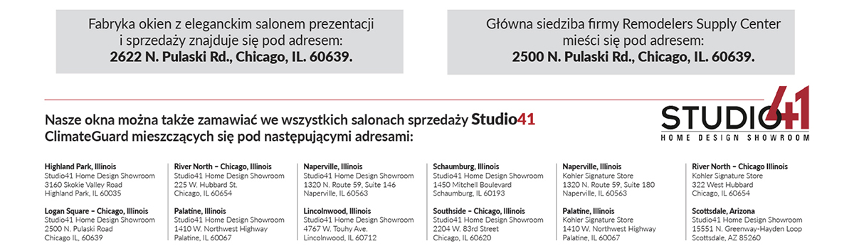 Odpowiedź na te wszystkie zagadnienia najlepiej uzyskać u licencjonowanego i doświadczonego producenta, którym na chicagowskim rynku od 1975 roku jest firma Remodelers Supply Center przy 2500 N. Pulaski, której fabryka produkująca okna ClimateGuard znajduje się pod adresem 2622 N. Pulaski w Chicago.