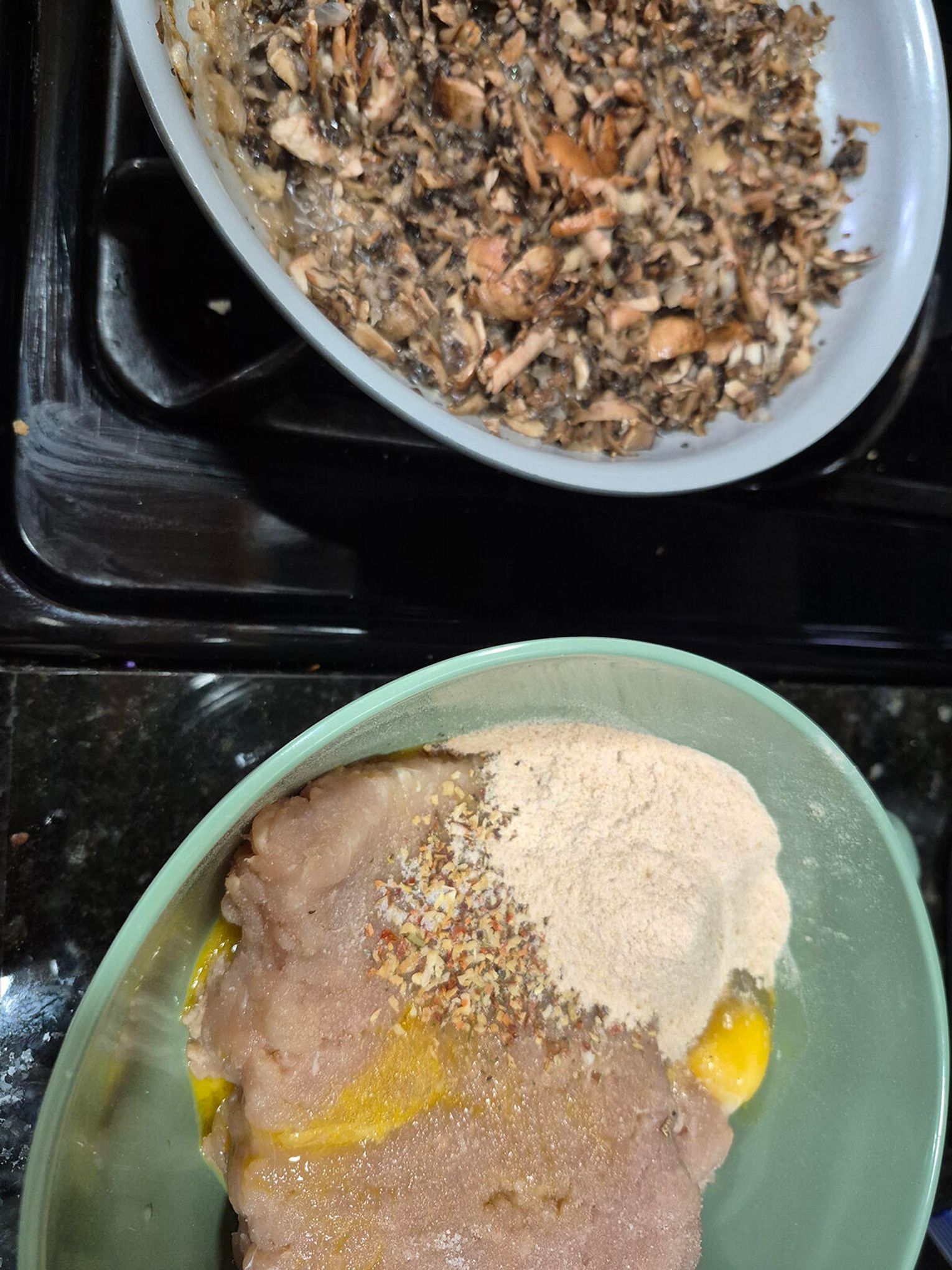 W dużej misce połącz mięso z indyka, przestudzone warzywa, bułkę tartą, jajko, tymianek, paprykę, sól, pieprz i świeże zioła (jeśli używasz).