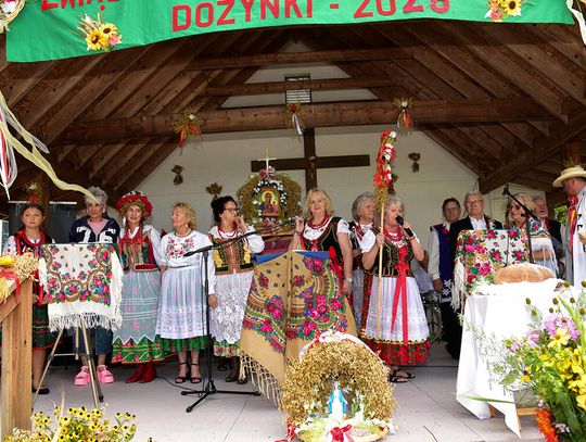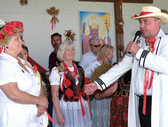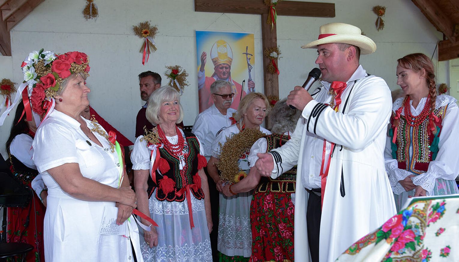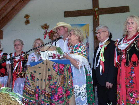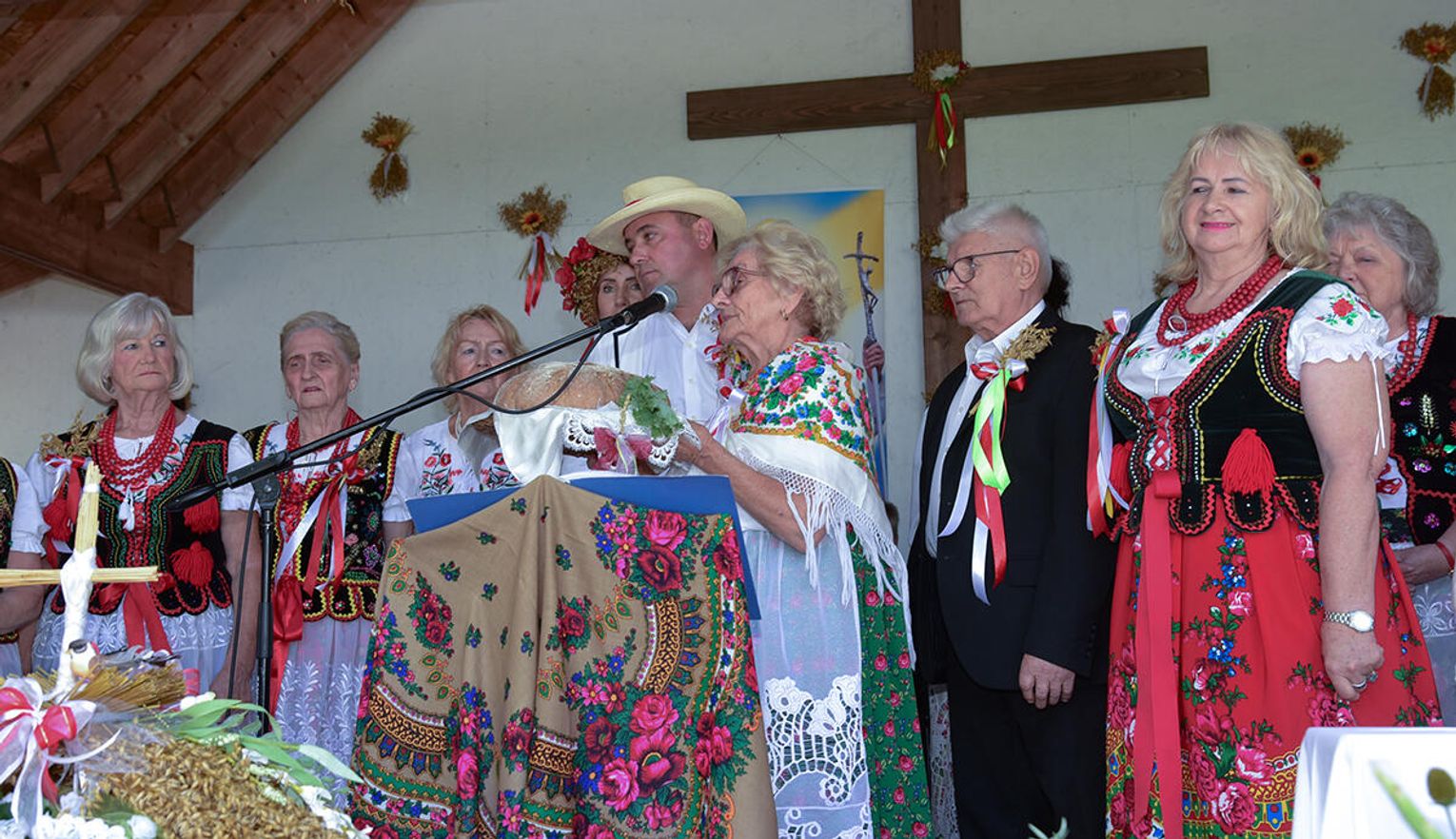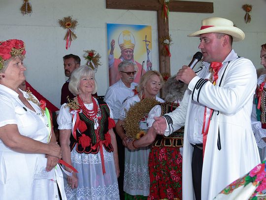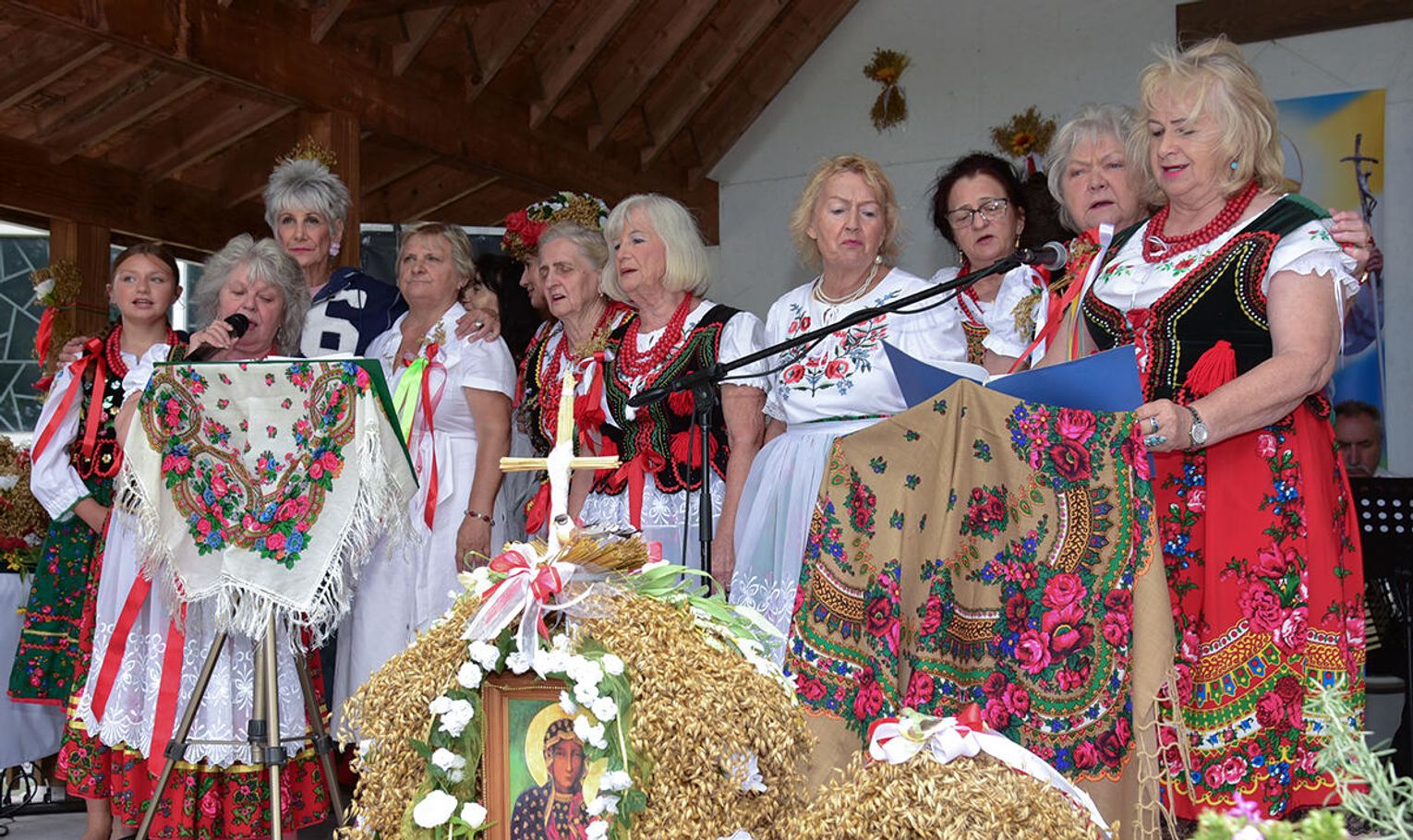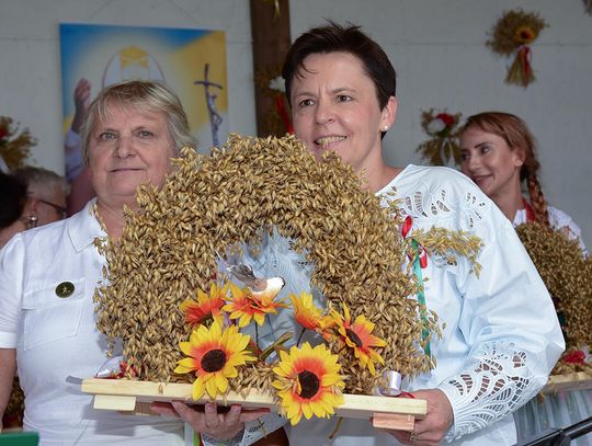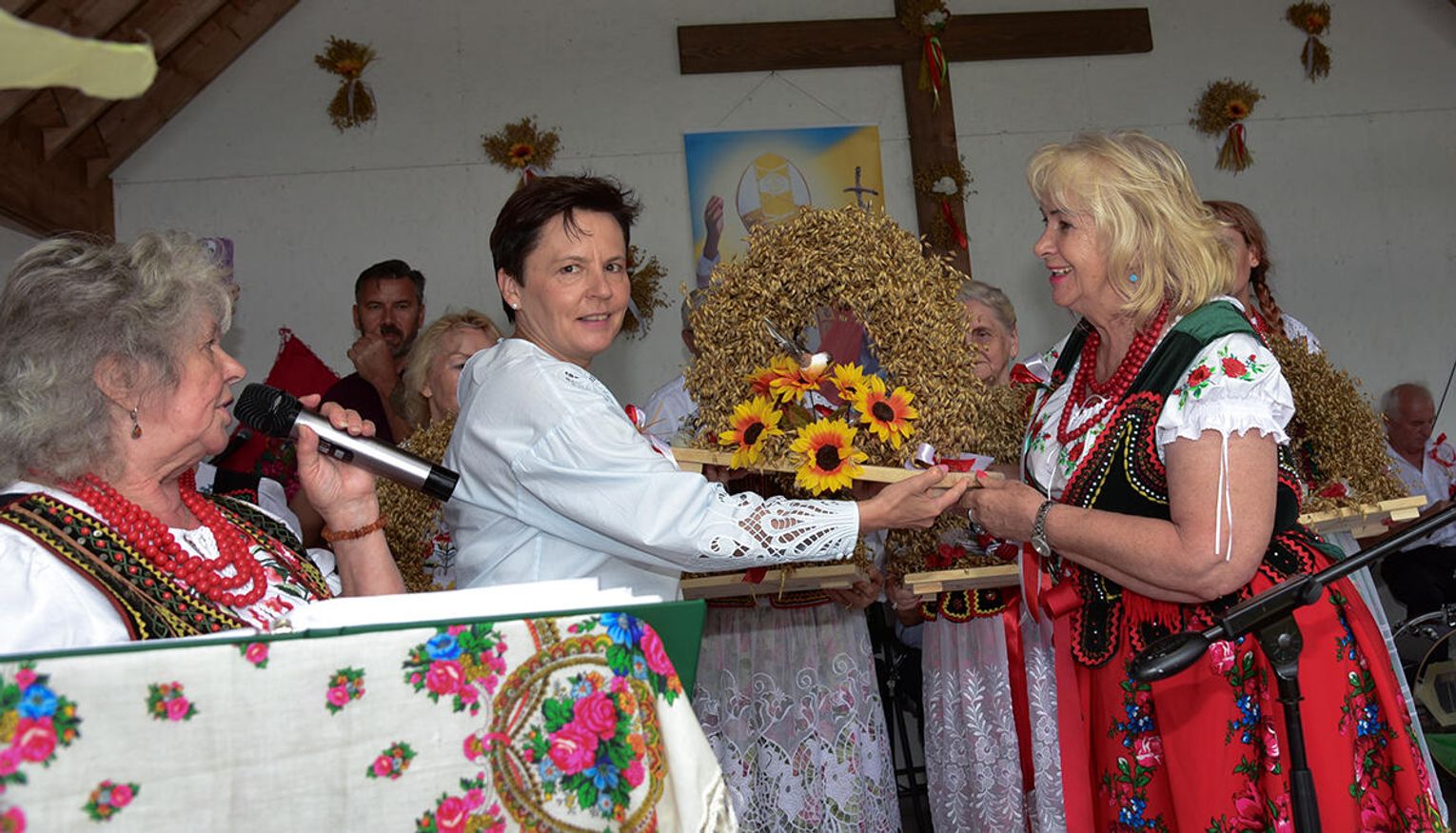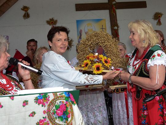 – Staram się, aby te dożynki były zgodne z tradycją naszych ojców. A więc z pieśniami, które są śpiewane przy celebracji chleba i wieńców, tekstami opiewającymi trud pracy rolnika i oczywiście oprawą mszy dożynkowej. W scenariuszu wykorzystałam sporo tekstów Zofii Solarzowej, która wraz ze mężem stworzyła wiele bardzo cennych spektakli promujących kulturę polskiej wsi. Niejako uzupełnieniem tego wątku był występ prowadzonego przez wnuczkę pani Zofii, Magdalenę Solarz Teatru Śpiewu i Tańca Wici. Oczywiście był korowód dożynkowy z wieńcami i bochnem chleba niesionym do ołtarza przez starostów. Oczywiście byli siewcy sypiący ziarno na polu, kosiarze i żniwiarki oraz gospodynie dbające o to, żeby ciężko pracującym nie zabrakło chęci i sił do pracy. W części wiankowej obdarowaliśmy zasłużonych działaczy wiankami uwitymi z tegorocznych zbóż. Nad oprawą muzyczną całości czuwała nasza kapela ludowa – powiedziała autorka scenariusza i reżyserka spektaklu Alina Szymczyk.