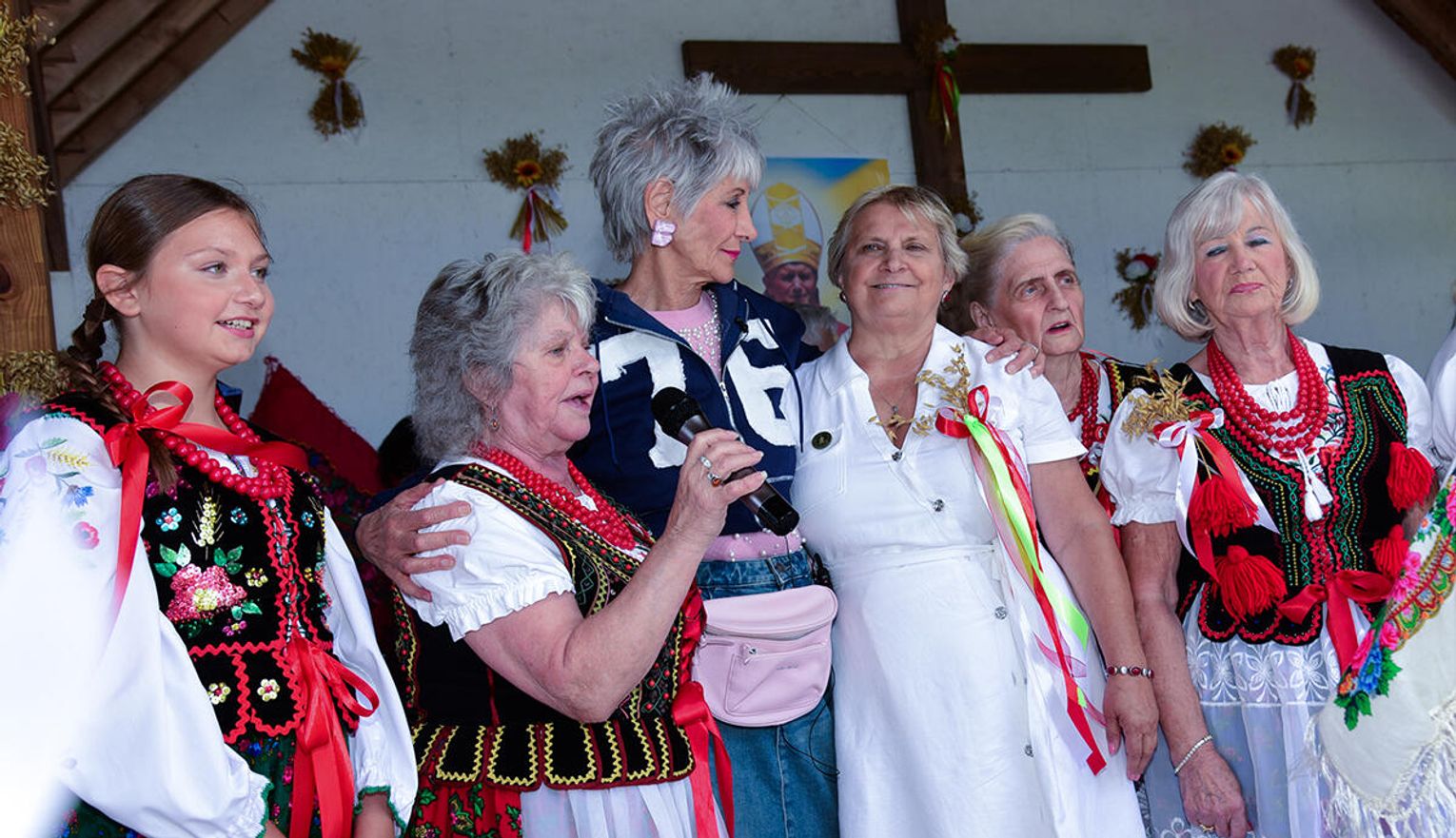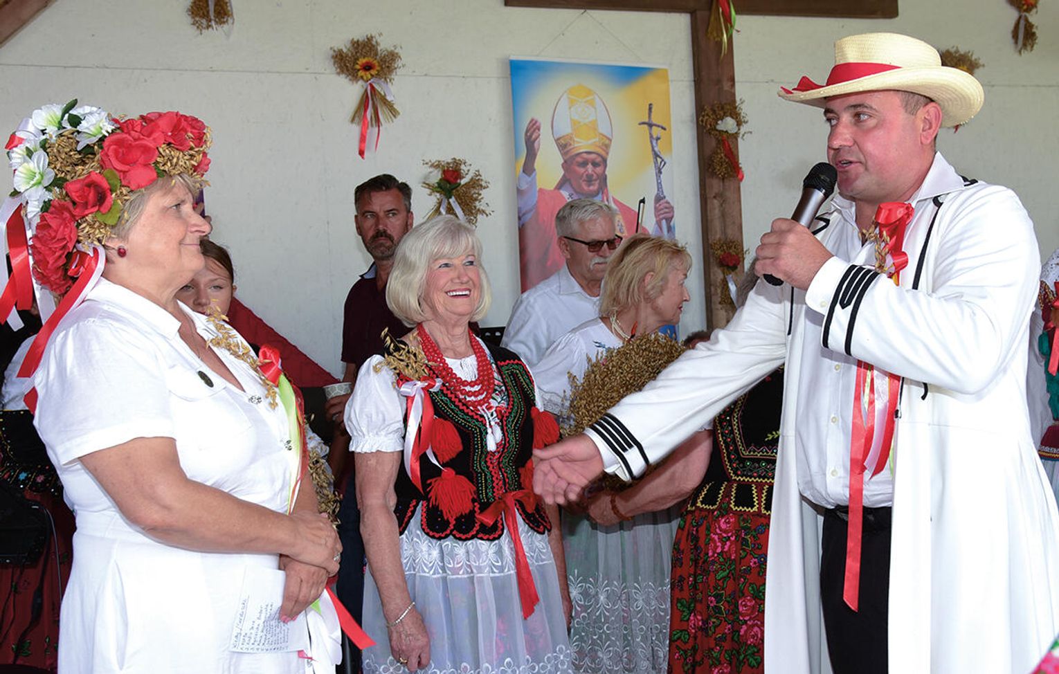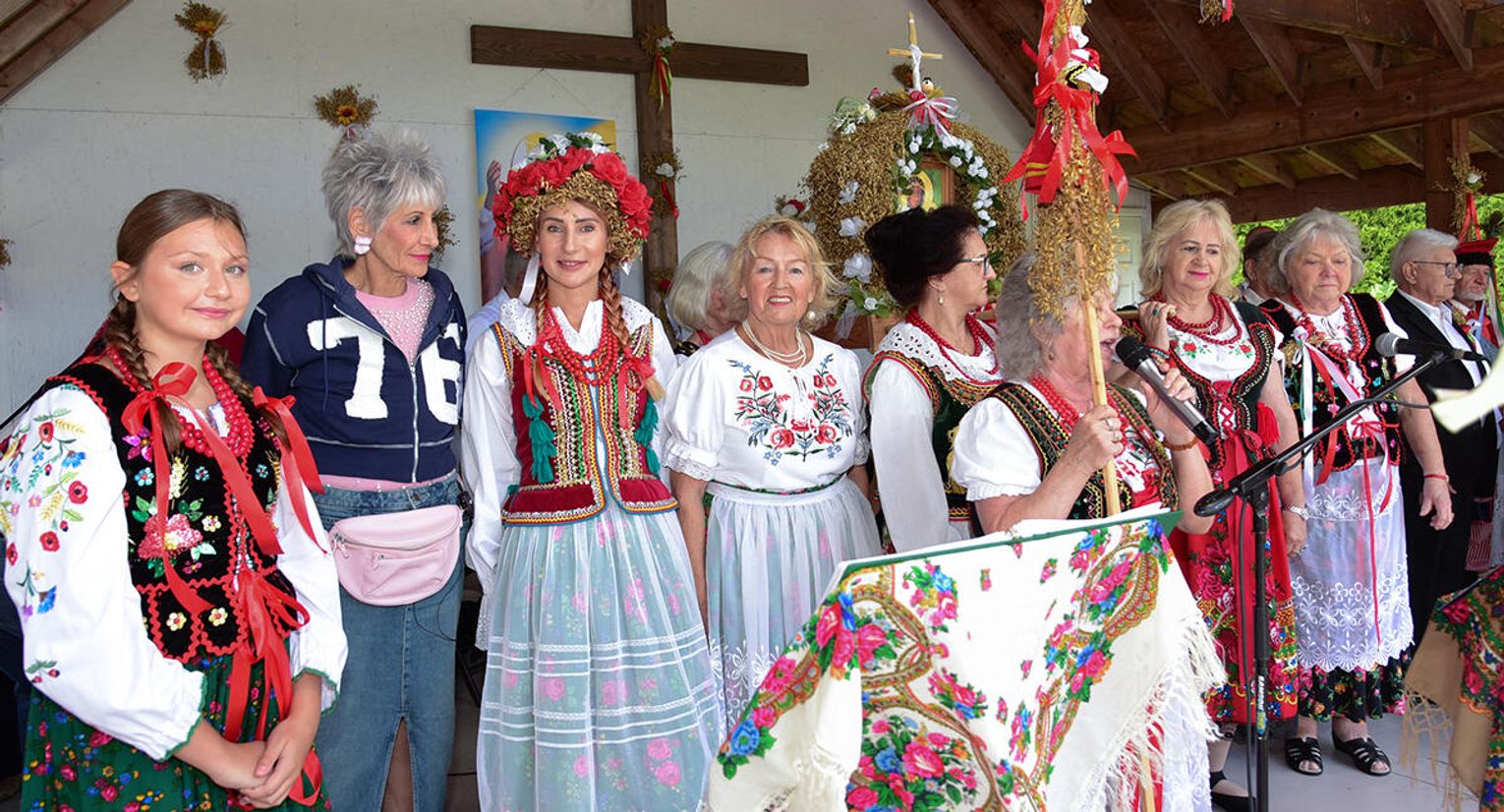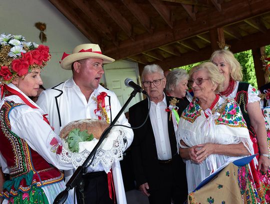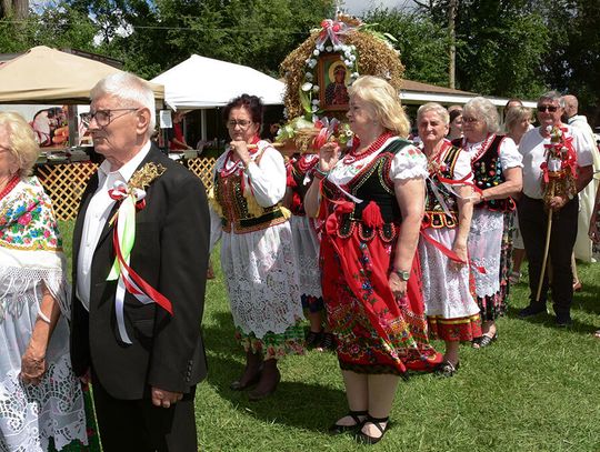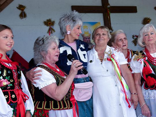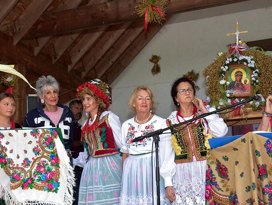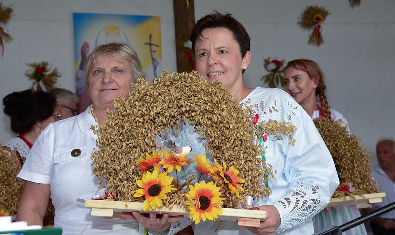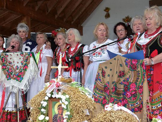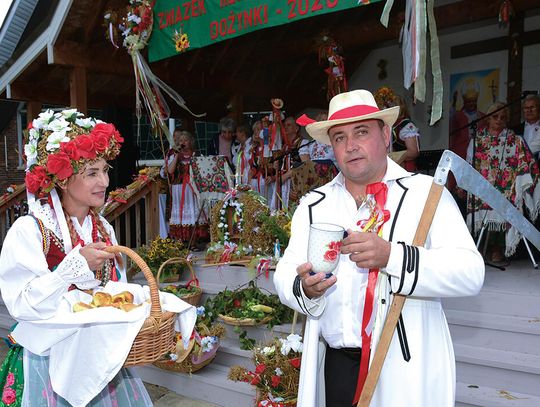 – Staram się, aby te dożynki były zgodne z tradycją naszych ojców. A więc z pieśniami, które są śpiewane przy celebracji chleba i wieńców, tekstami opiewającymi trud pracy rolnika i oczywiście oprawą mszy dożynkowej. W scenariuszu wykorzystałam sporo tekstów Zofii Solarzowej, która wraz ze mężem stworzyła wiele bardzo cennych spektakli promujących kulturę polskiej wsi. Niejako uzupełnieniem tego wątku był występ prowadzonego przez wnuczkę pani Zofii, Magdalenę Solarz Teatru Śpiewu i Tańca Wici. Oczywiście był korowód dożynkowy z wieńcami i bochnem chleba niesionym do ołtarza przez starostów. Oczywiście byli siewcy sypiący ziarno na polu, kosiarze i żniwiarki oraz gospodynie dbające o to, żeby ciężko pracującym nie zabrakło chęci i sił do pracy. W części wiankowej obdarowaliśmy zasłużonych działaczy wiankami uwitymi z tegorocznych zbóż. Nad oprawą muzyczną całości czuwała nasza kapela ludowa – powiedziała autorka scenariusza i reżyserka spektaklu Alina Szymczyk.