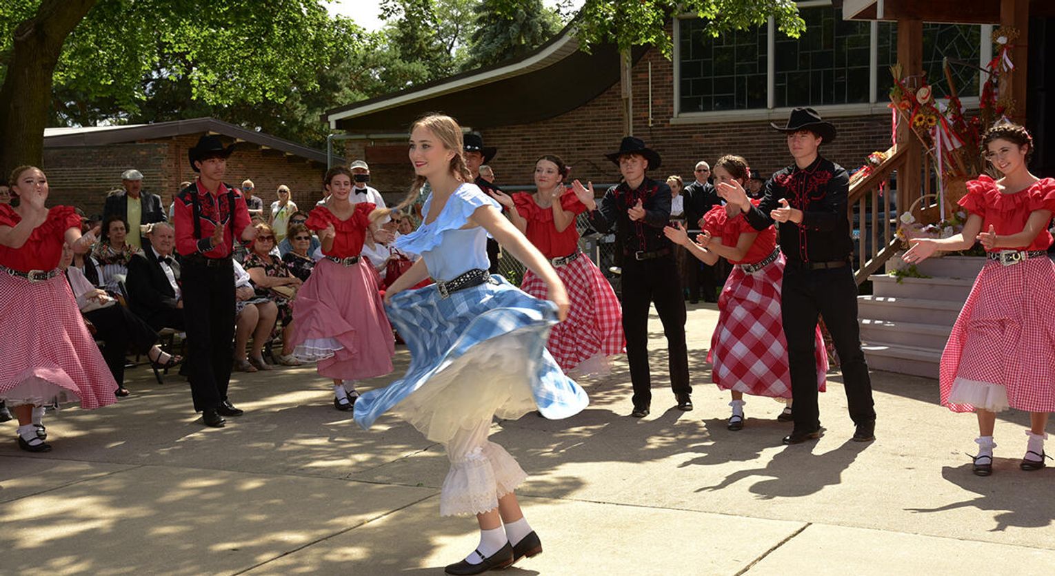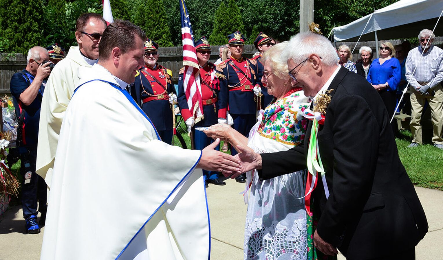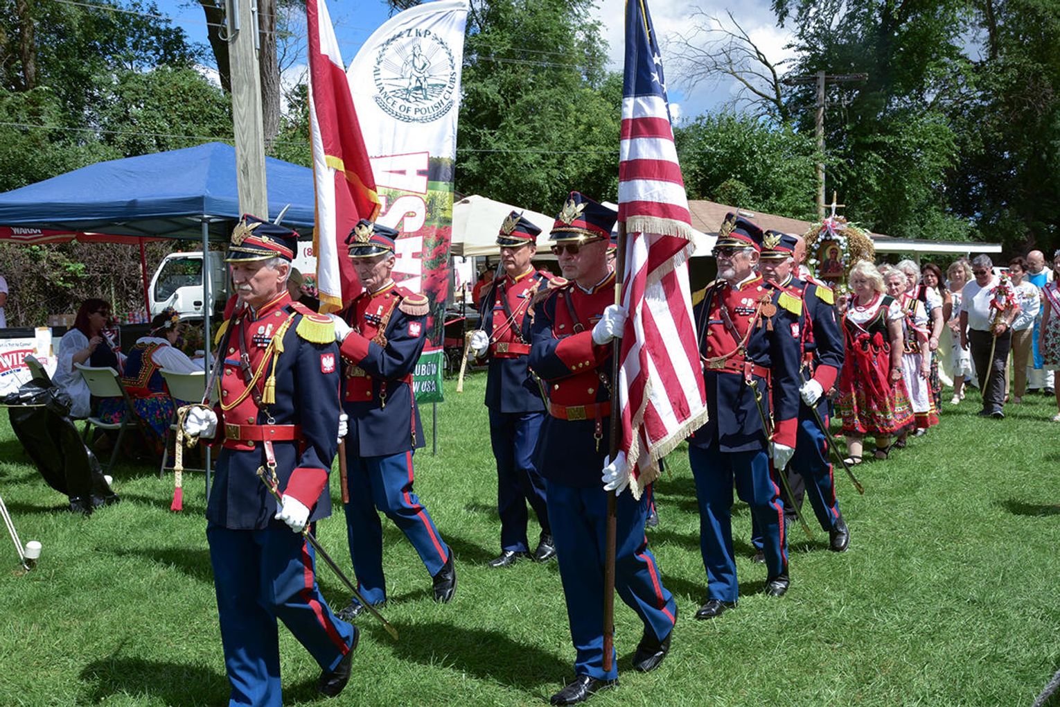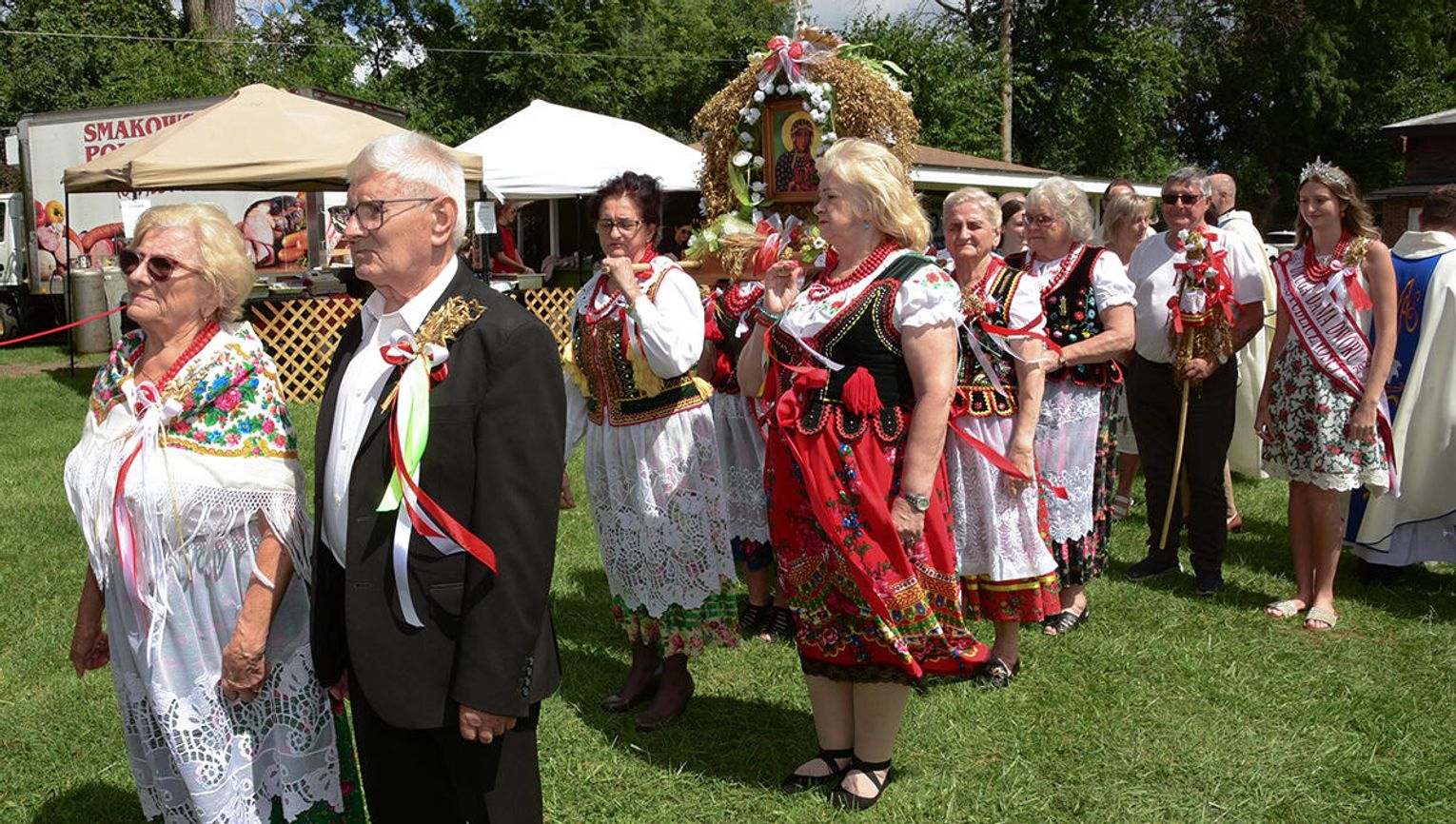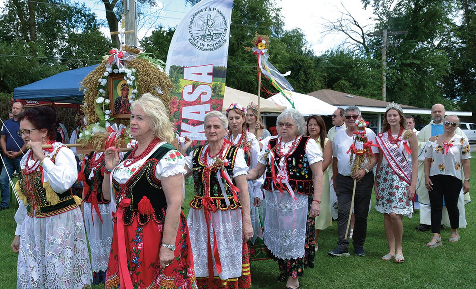 W korowodzie dożynkowym do ołtarza z wieńcami i chlebem niesionym przez starostów dożynek – Janinę Gejsler i Władysława Wytrwała, ze sztandarami szli członkowie Stowarzyszenia Przyjaciół im Tadeusza Kościuszki, goście honorowi festynu: konsul generalna RP Regina Jurkowska z córką Pauliną, chicagowska radna Ruth Cruz, skarbnik powiatu Cook Maria Pappas, prezes wydziału stanowego Kongresu Polonii Amerykańskiej Jolanta Grocholska ze współpracowniczkami i przedstawiciele władz miasteczka Harwood Heights oraz duszpasterze: kapelan ZKP ks. Marek Smółka, były kapelan Ryszard Miłek i superior o. jezuitów o. Marek Janowski. Kazanie wygłosił ks. Marek Smółka. Pieśni śpiewał Chór im. Fryderyka Chopina.