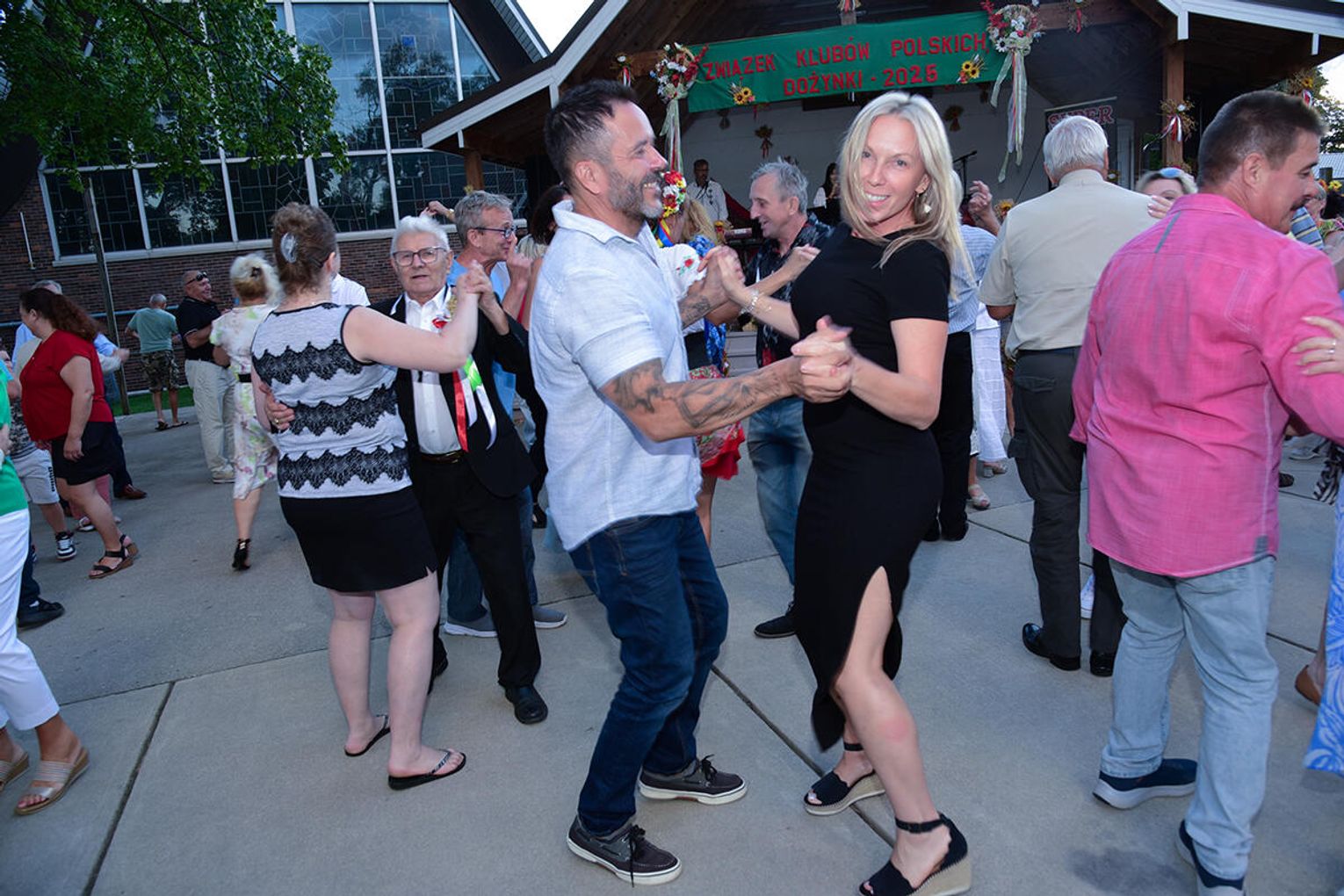 Po części artystycznej przyszła pora na zabawę taneczną przy muzyce kapeli Super Band. Oczekiwanym momentem dożynkowego festynu było losowanie loterii fantowej, w której do wygrania było wiele cennych nagród. Nagroda główna w postaci 500 dolarów ufundowanych przez właścicieli sieci sklepów Montrose Halinę i Stanisława Urbaniaków trafiła w ręce Magdaleny Pikul, wieloletniej pracownicy tych sklepów, do czego pośrednio miałem okazję się osobiście przyczynić, gdyż prowadząca loterię Ewa Rumiński poprosiła mnie o wyciągnięcie szczęśliwego losu.