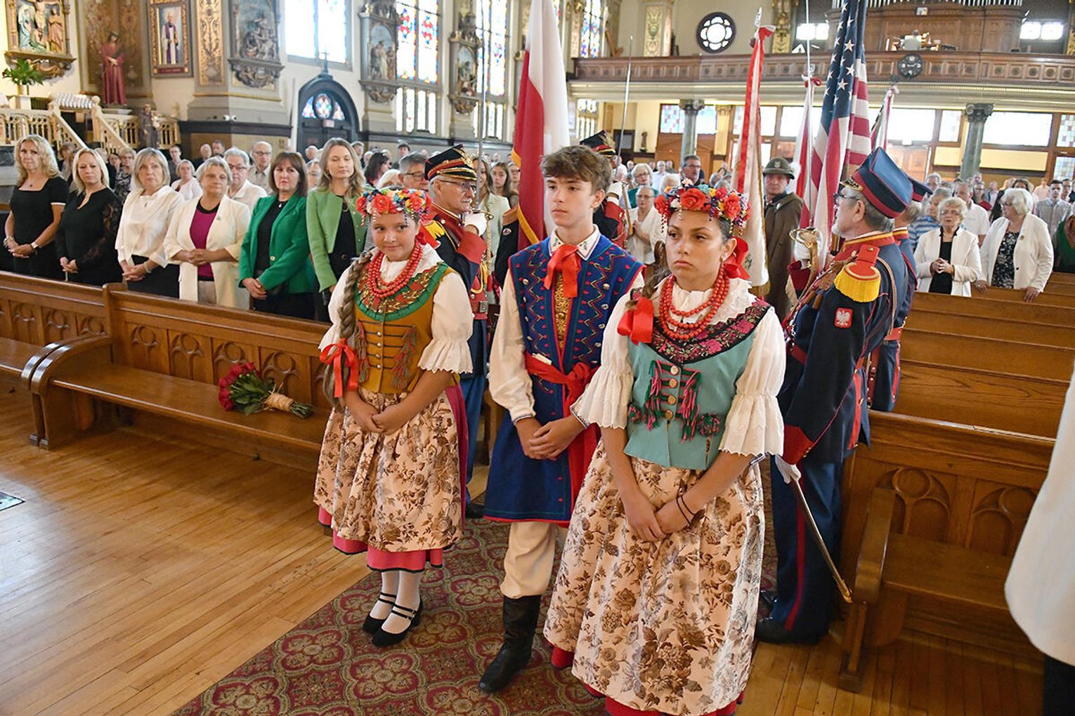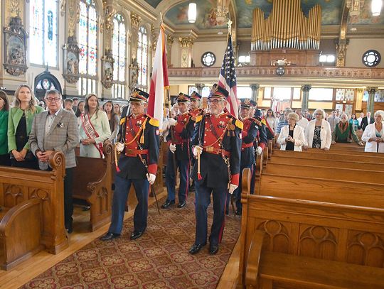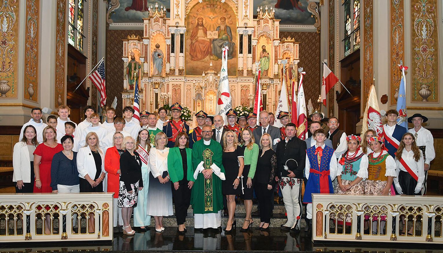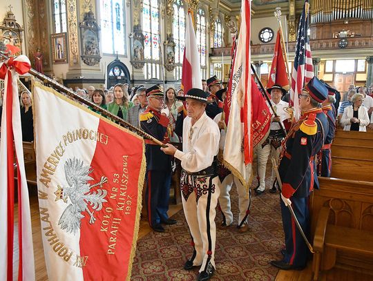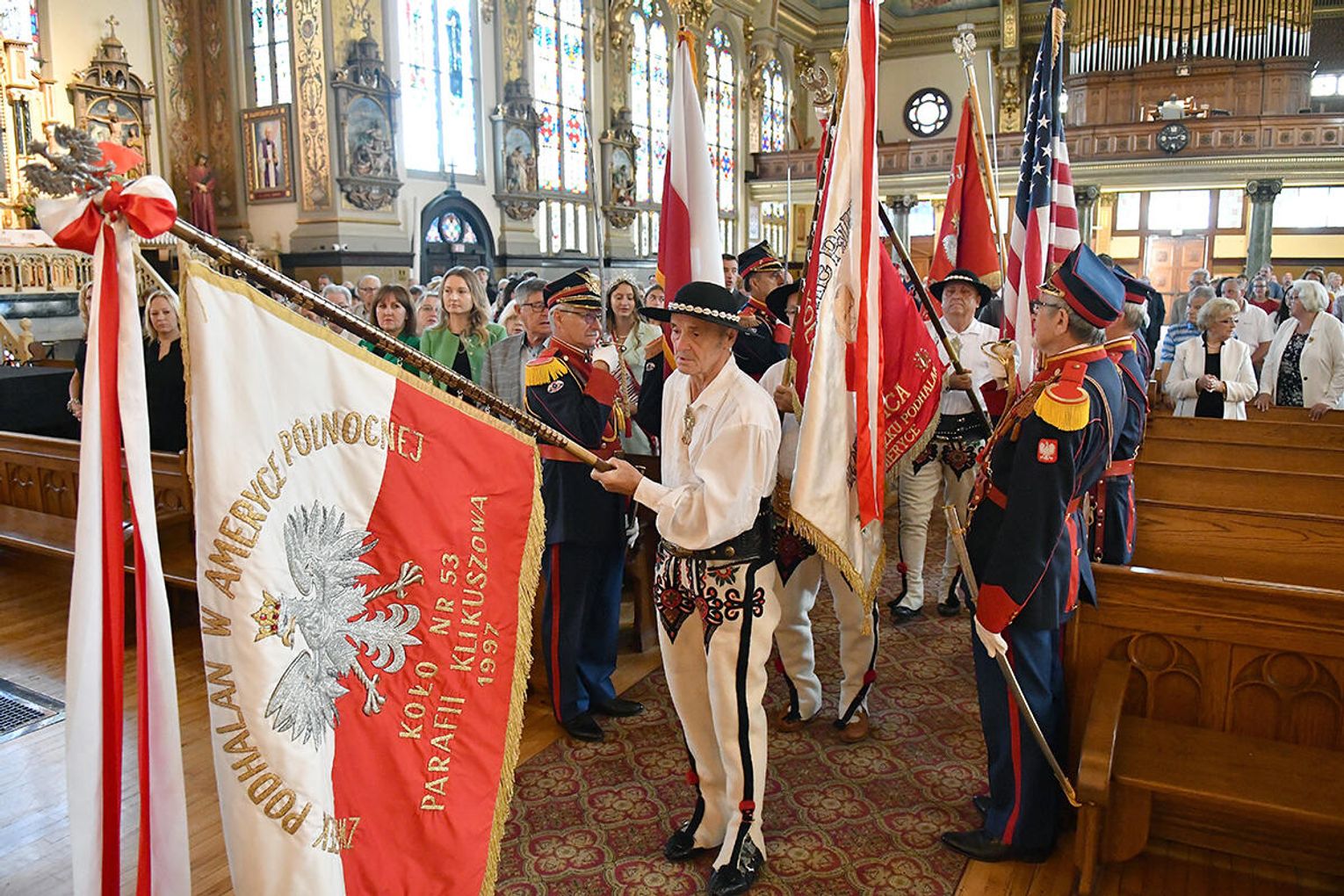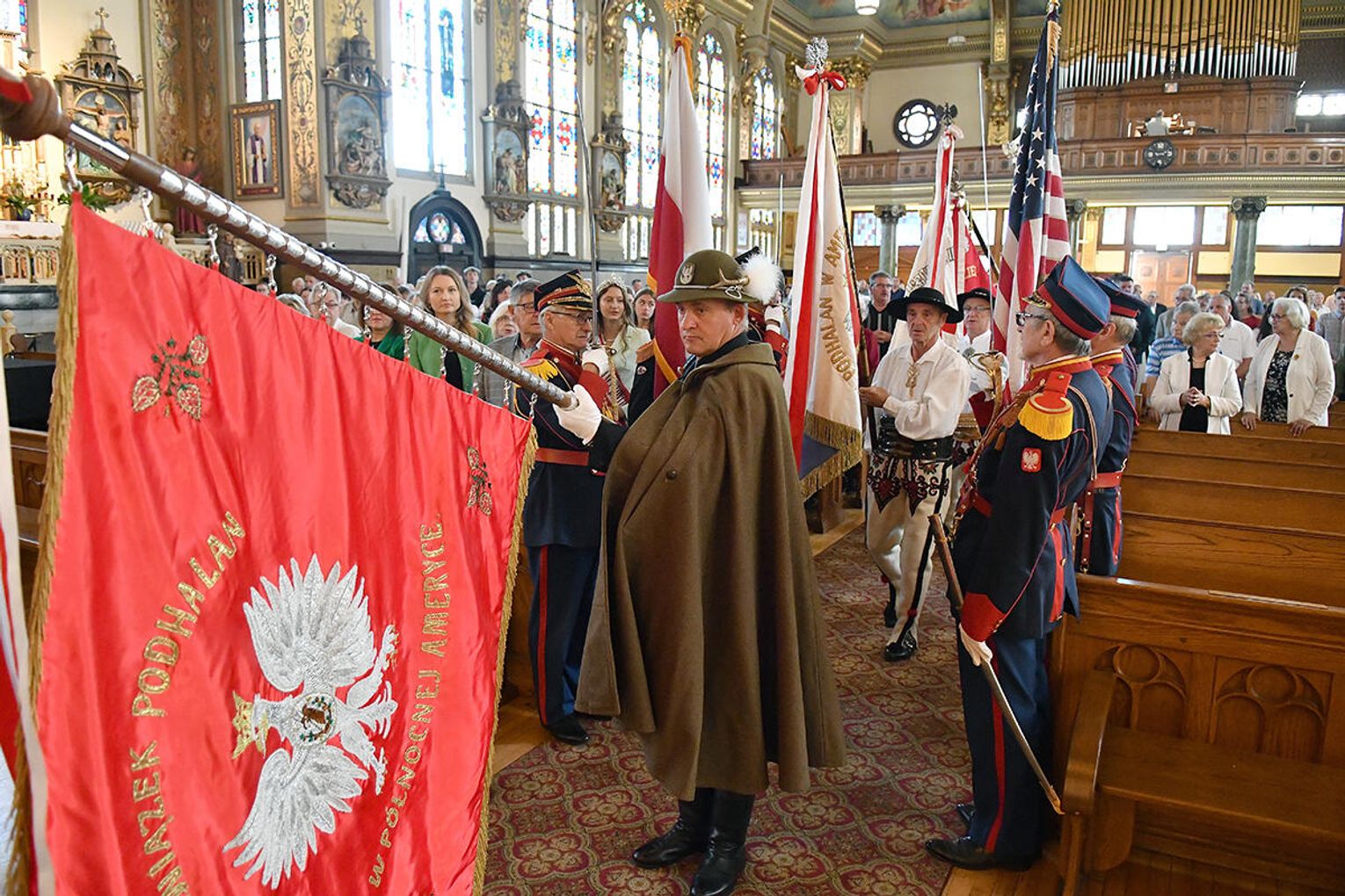 Na rozpoczęcie mszy ruszyła procesja do ołtarza. Szli w niej goście honorowi, księża, tancerze z zespołu Lajkonik, ułani ze Stowarzyszenia Przyjaciół Ułanów Polskich im. generała Tadeusza Kościuszki z flagami Polski i Stanów Zjednoczonych, poczty sztandarowe: Stowarzyszenia Historycznego Koła Solidarności w Chicago, Polskiej Szkoły im. Świętej Trójcy, Koła Ochotnica, Koła Klikuszowa, Koła Biały Dunajec. Eucharystię odprawił ksiądz Wiesław Wójcik SChr w koncelebrze z księdzem dyrektorem Robertem Będzińskim SChr.