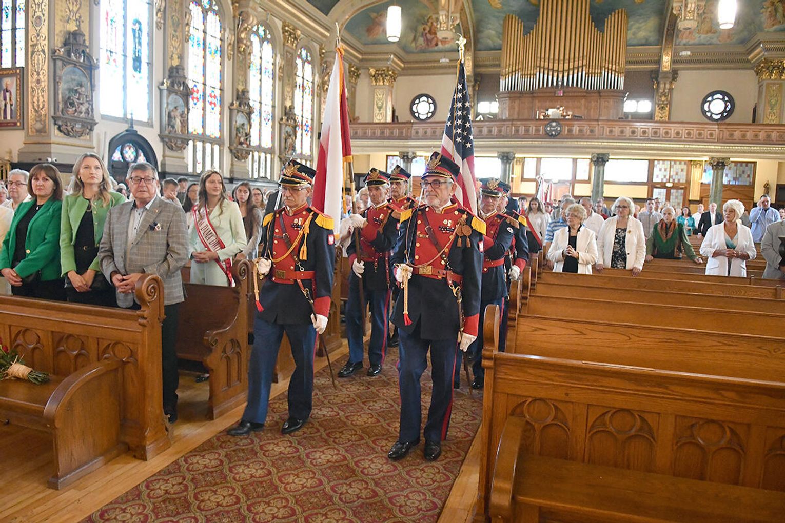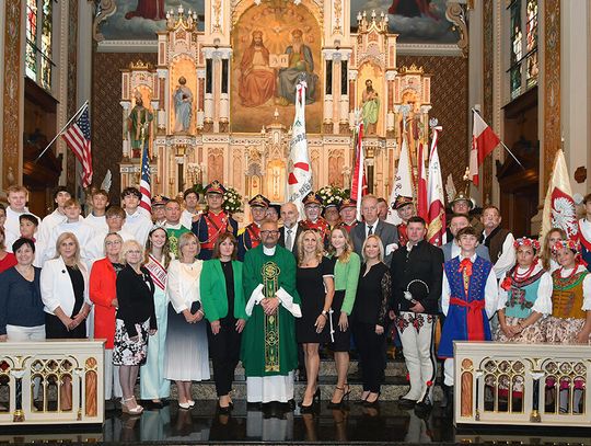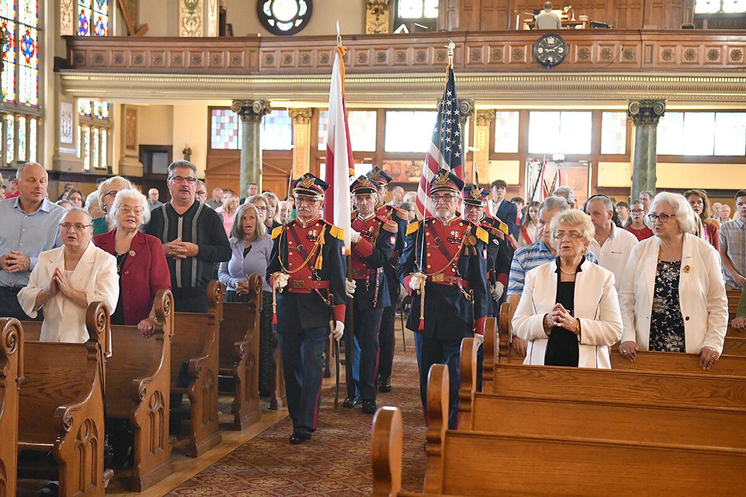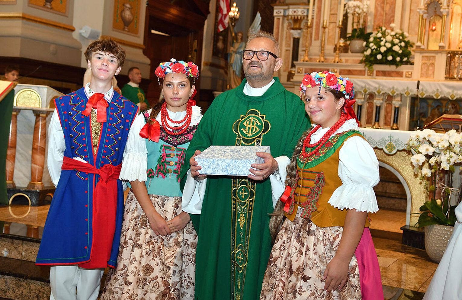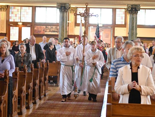 Na rozpoczęcie mszy ruszyła procesja do ołtarza. Szli w niej goście honorowi, księża, tancerze z zespołu Lajkonik, ułani ze Stowarzyszenia Przyjaciół Ułanów Polskich im. generała Tadeusza Kościuszki z flagami Polski i Stanów Zjednoczonych, poczty sztandarowe: Stowarzyszenia Historycznego Koła Solidarności w Chicago, Polskiej Szkoły im. Świętej Trójcy, Koła Ochotnica, Koła Klikuszowa, Koła Biały Dunajec. Eucharystię odprawił ksiądz Wiesław Wójcik SChr w koncelebrze z księdzem dyrektorem Robertem Będzińskim SChr.