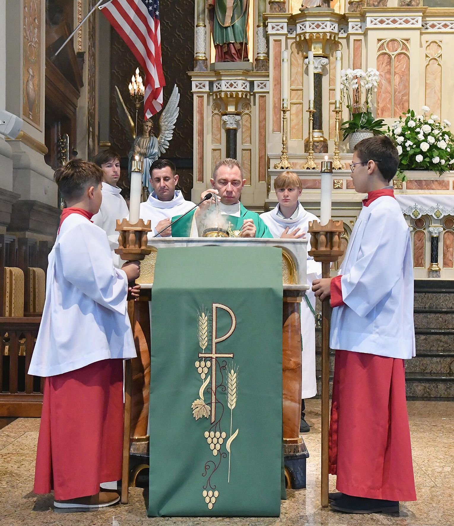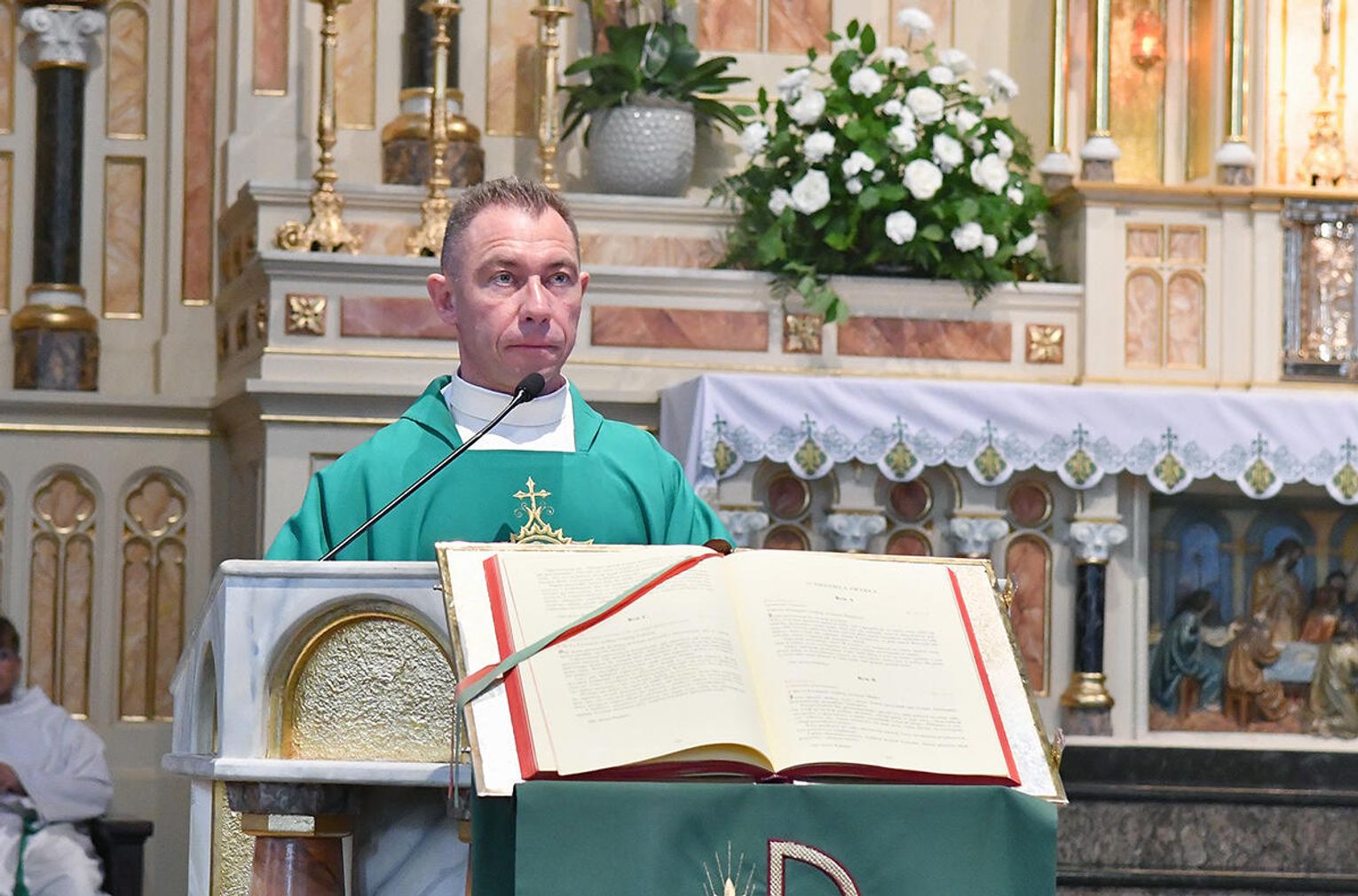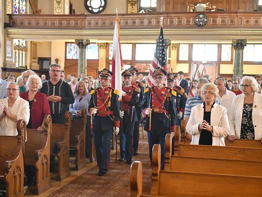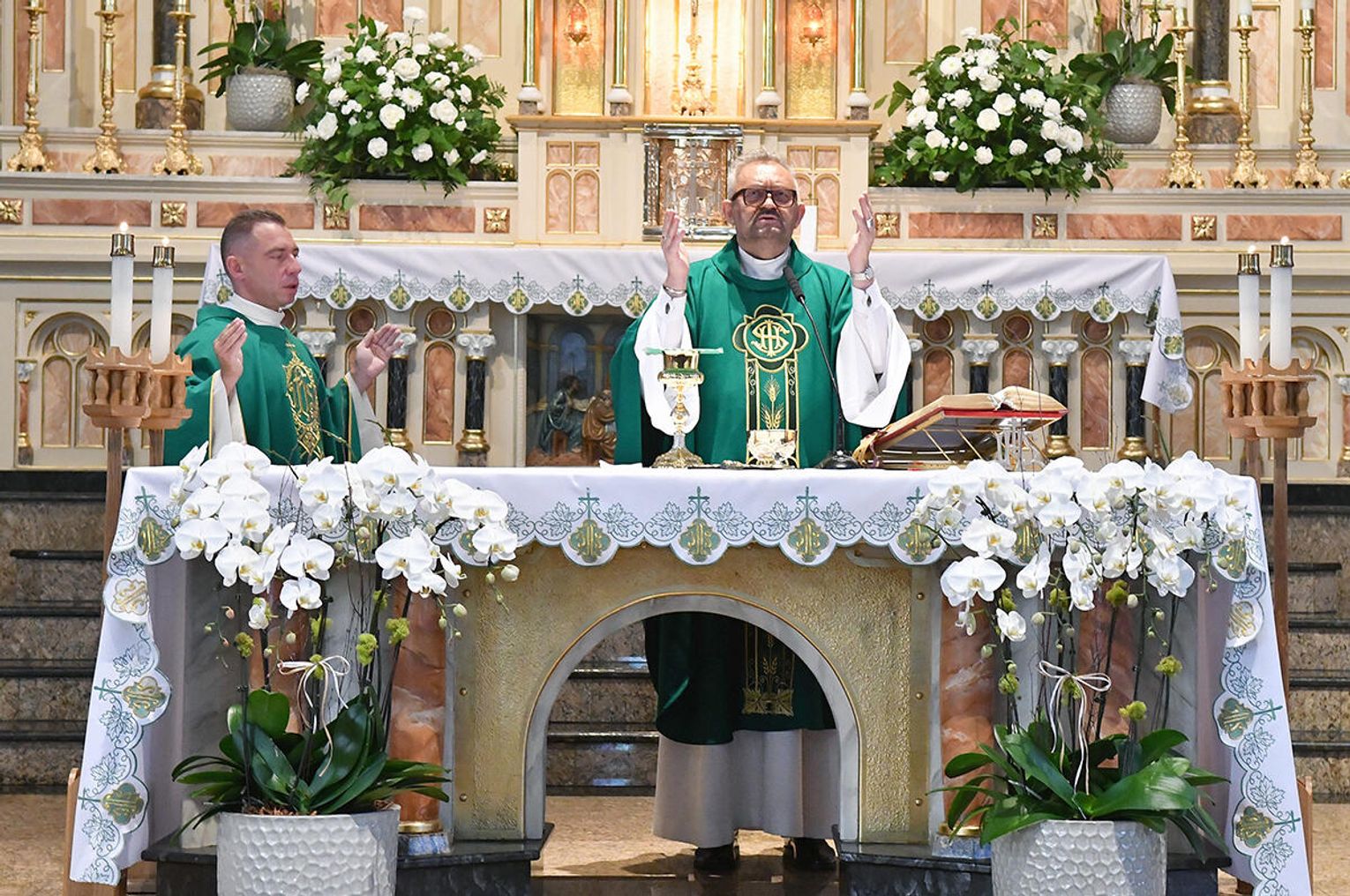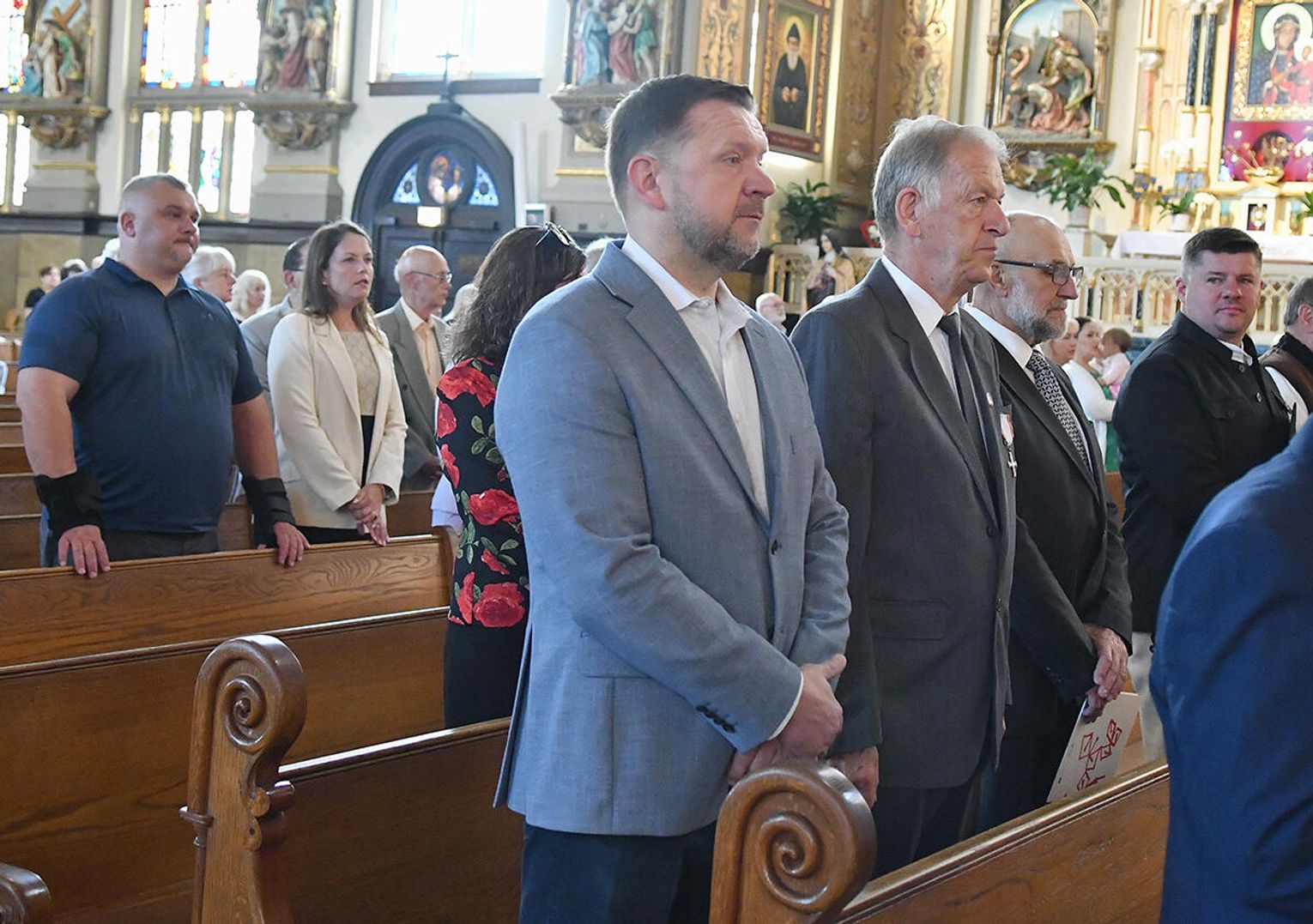Na rozpoczęcie mszy ruszyła procesja do ołtarza. Szli w niej goście honorowi, księża, tancerze z zespołu Lajkonik, ułani ze Stowarzyszenia Przyjaciół Ułanów Polskich im. generała Tadeusza Kościuszki z flagami Polski i Stanów Zjednoczonych, poczty sztandarowe: Stowarzyszenia Historycznego Koła Solidarności w Chicago, Polskiej Szkoły im. Świętej Trójcy, Koła Ochotnica, Koła Klikuszowa, Koła Biały Dunajec. Eucharystię odprawił ksiądz Wiesław Wójcik SChr w koncelebrze z księdzem dyrektorem Robertem Będzińskim SChr.
