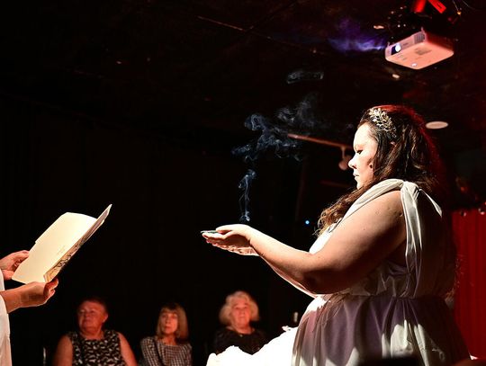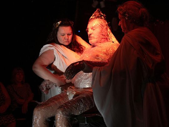 Spektakl „Proces Pana Cogito” odbył się 23 września w Art Gallery Kafe,w podchicagowskim Wood Dale, której kameralność sprawiła, że każdy z obecnych widzów mógł poczuć się, jakby uczestniczył w osobistym spotkaniu. Gości witały muzy w białych greckich tunikach, trzymające dzban i miednicę — symbole aktu oczyszczenia. Z charakterystycznym dla Herberta dwuznacznym przesłaniem „Idź tam, gdzie poszli tamci”, zapraszały do zajęcia miejsc na widowni.