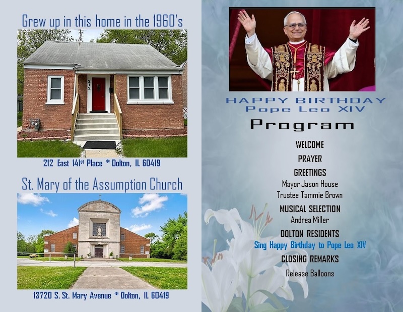 W niedzielę, 14 września papież Leon XIV, czyli urodzony w Chicago i wychowany w Dolton na południowych przedmieściach Robert Prevost, świętował swoje 70. urodziny. Oprócz uroczystości w Watykanie, jubileusz świętowano również przed jego rodzinnym domem przy 141st Street w Dolton.