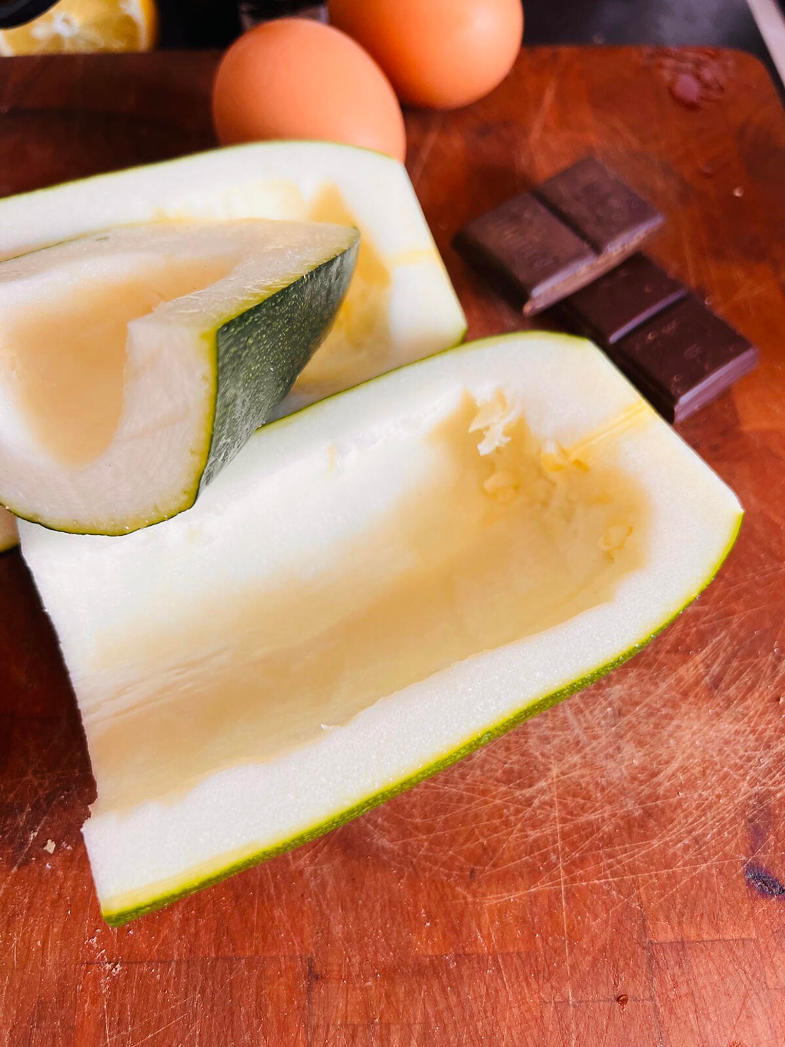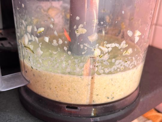 Przyda się malakser. Wytnij z cukinii gniazda nasienne, nie musisz jej obierać. Pokrój na mniejsze kawałki, aby łącznie wyszła 1 szklanka.