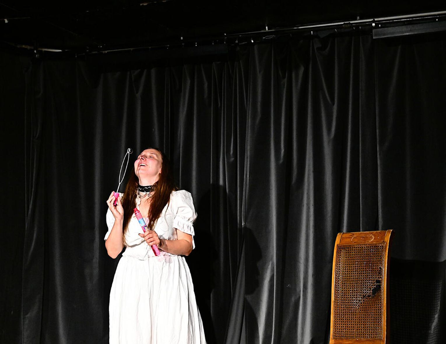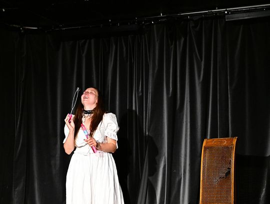 Spektakl „Furia” Katarzyny Janiszewskiej wprowadza widza w świat kobiecych doświadczeń, emocji i codziennych zmagań. Autorka podejmuje interpretację mitu Minotaura, zręcznie wplatając w swoją analizę idee jungowskiego anima i animus, postacie literackie Sinobrodego oraz Fausta, a także wątki literatury feministycznej. Aktorzy, Kobieta – Katarzyna Janiszewska – oraz Mężczyzna – Jan Nykiel – skrywający twarz pod maską Minotaura, tworzą na scenie portret wielowarstwowy: raz są spokojni, wyciszeni, innym razem – dynamiczni, agresywni i gniewni, balansując między introspekcją a sceniczną ofensywą, nie popadając w banał ani przesadę. Oszczędna i minimalistyczna scenografia, pozwala skupić uwagę widza na bohaterach jednocześnie podkreślając tajemniczość oraz surowość przedstawienia. Dynamiczny taniec, intrygująca muzyka i przekaz multimedialny potęgują emocje, współgrają z ruchem scenicznym, czyniąc widowisko pełnym ekspresji i symboliki.