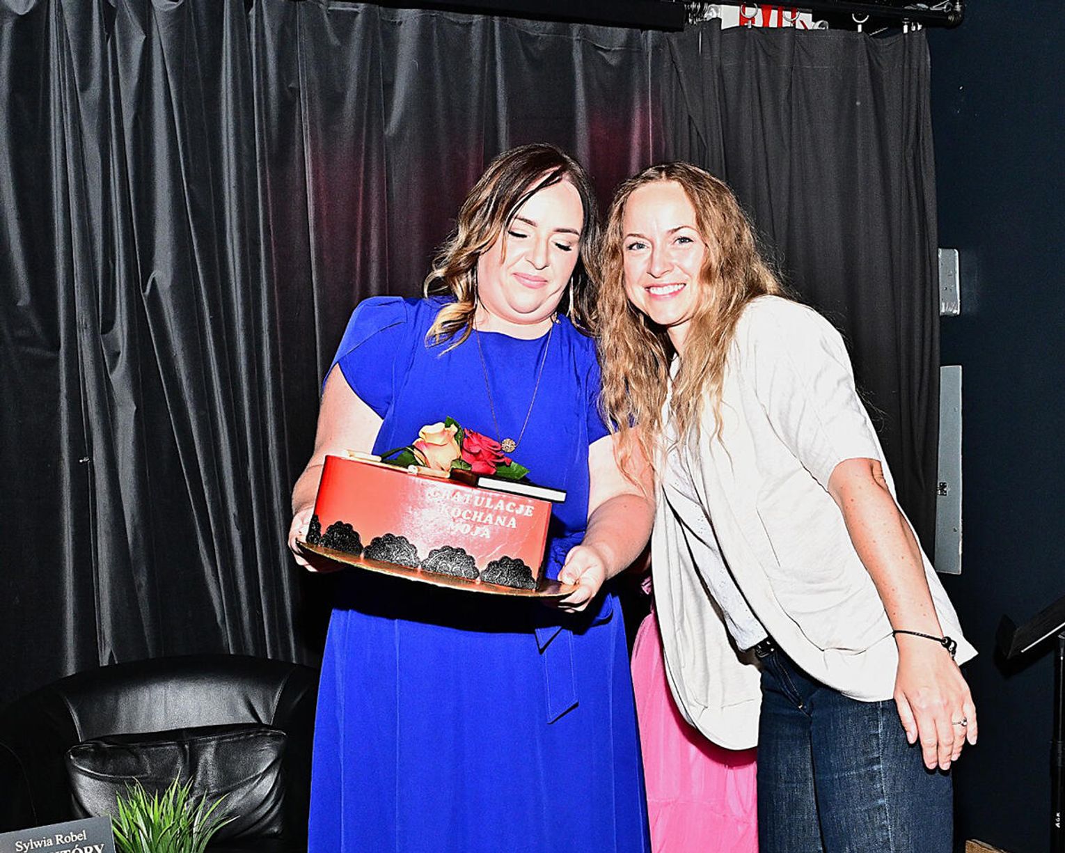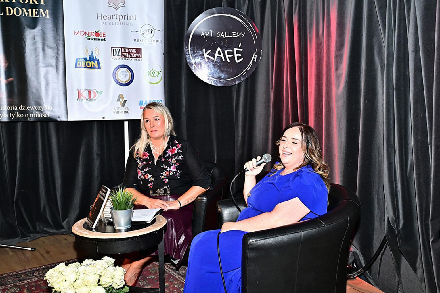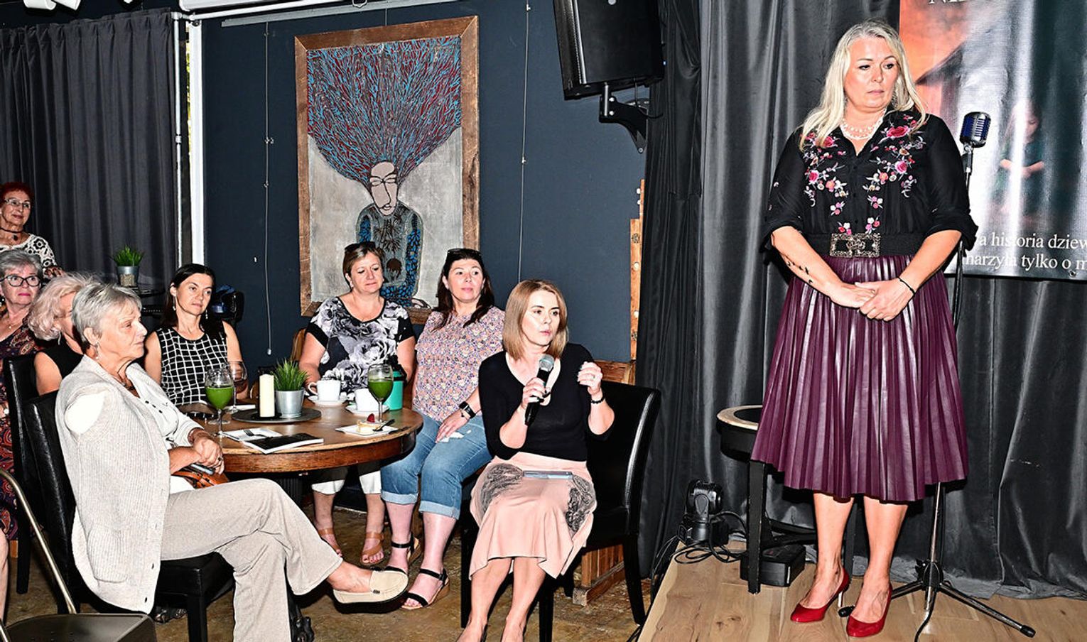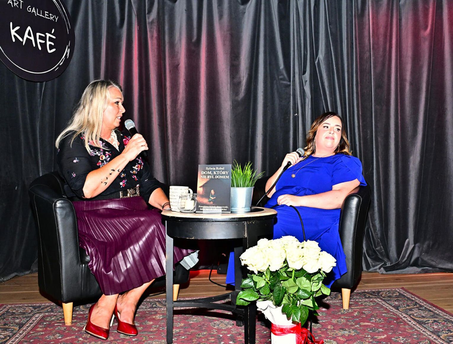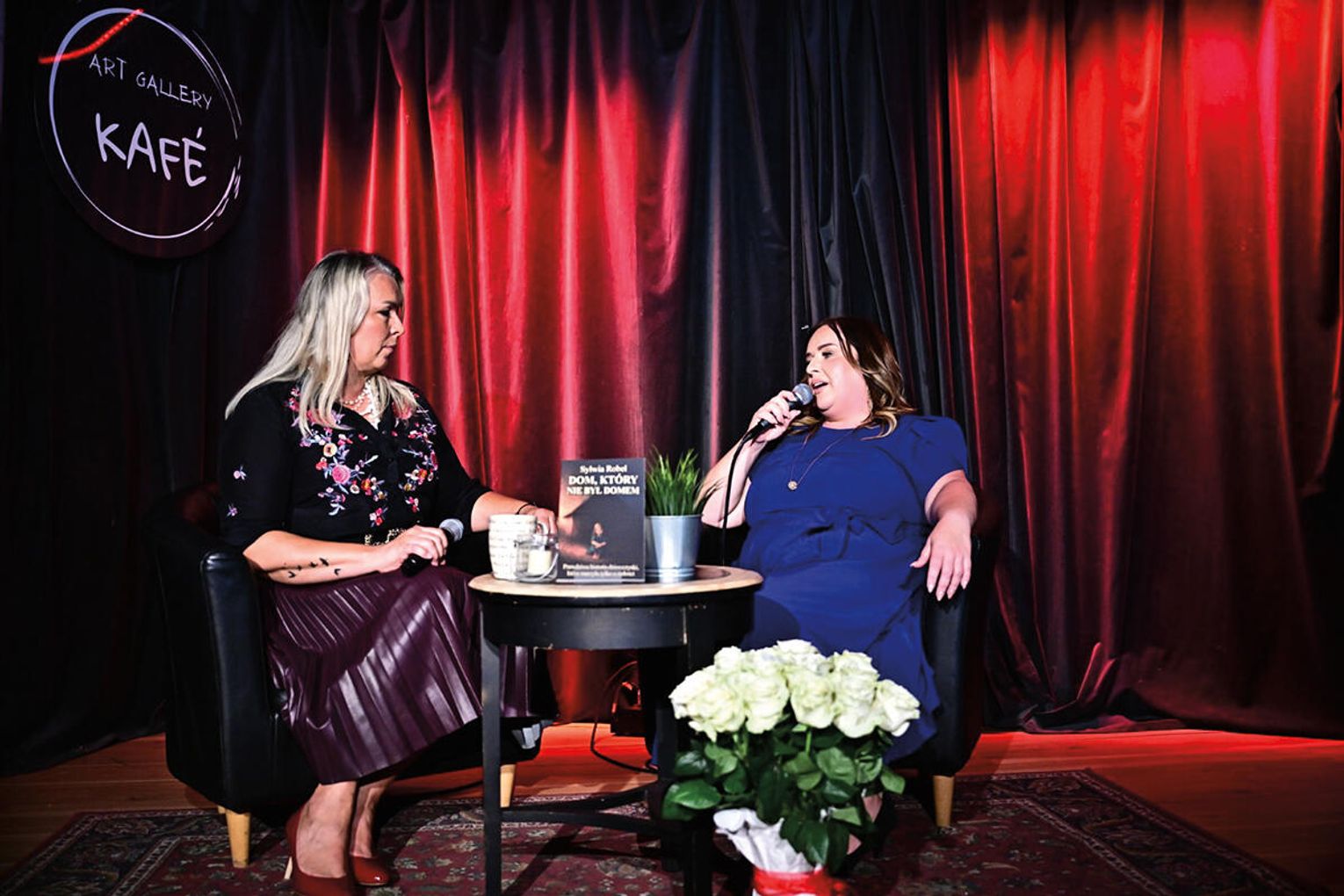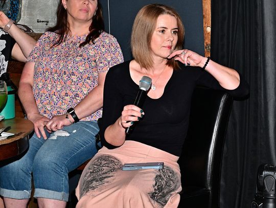 Dużo ciepłych oklasków zebrała za swój solowy występ córka autorki – Julia. Później na podium zebrani powitali bohaterkę wieczoru, Sylwię Robel, której towarzyszyła dziennikarka, właścicielka studia PatriciaArt, Patrycja Stępniak. Panie rozmawiały m.in. o procesie powstawania książki, ulubionych fragmentach oraz motywach, które zainspirowały autorkę do napisania tej opowieści.