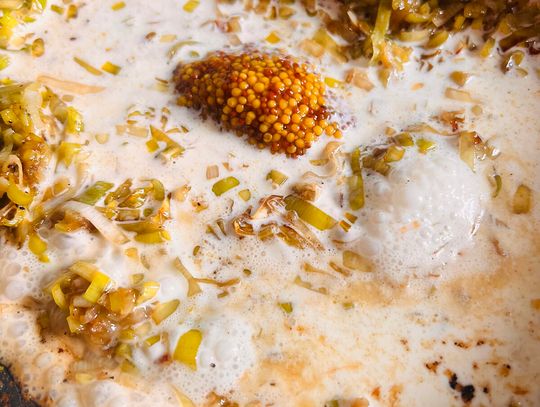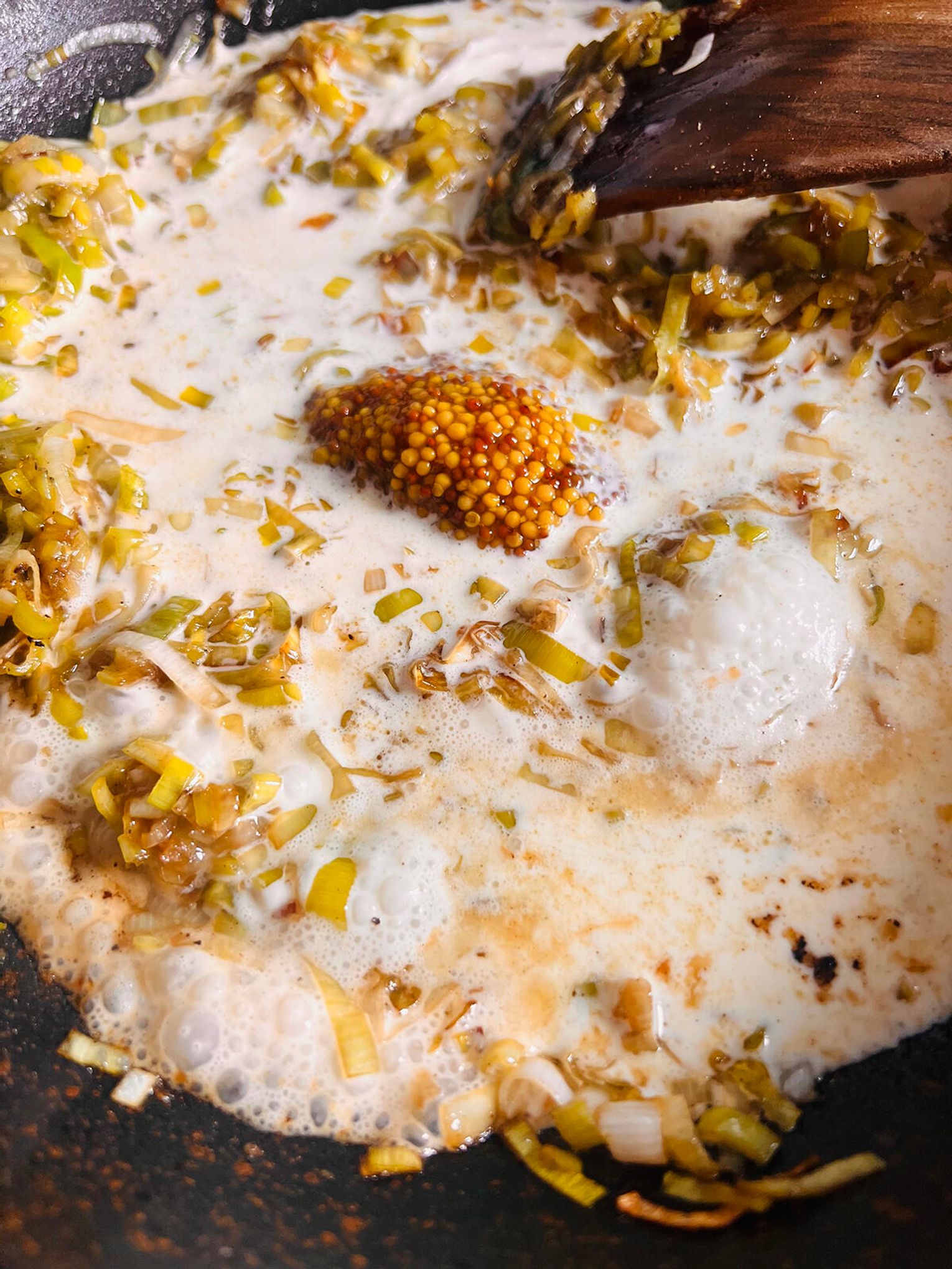 Najlepiej smauje z bagietką albo ziemniakami, które wchłoną ten kremowy, lekko miodowo-musztardowy sos.