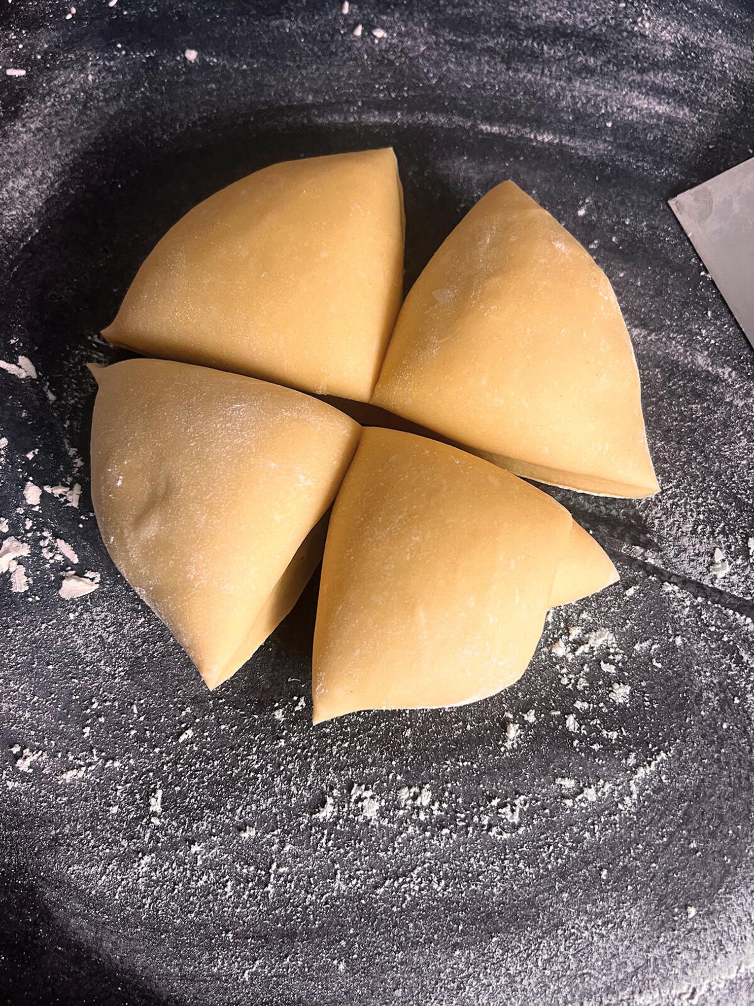 Wymieszaj mąkę, sól (i cukier, jeśli dajesz). Dodaj olej i ciepłą wodę, wyrób ciasto, aż będzie gładkie i elastyczne. Odstaw na 15 minut, żeby odpoczęło.