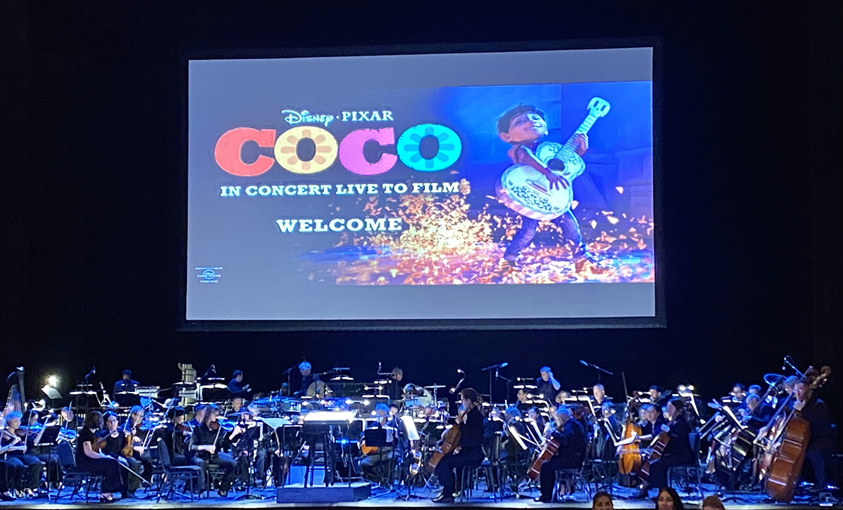Animowany film „Coco” został zaprezentowany z dużego ekranu nad sceną w języku angielskim z wyświetlanymi hiszpańskimi napisami. „Coco in Concert” mogliśmy zobaczyć podczas dwóch przedstawień w Lyric Opera House: w czwartek, 16 października i w sobotę, 18 października.